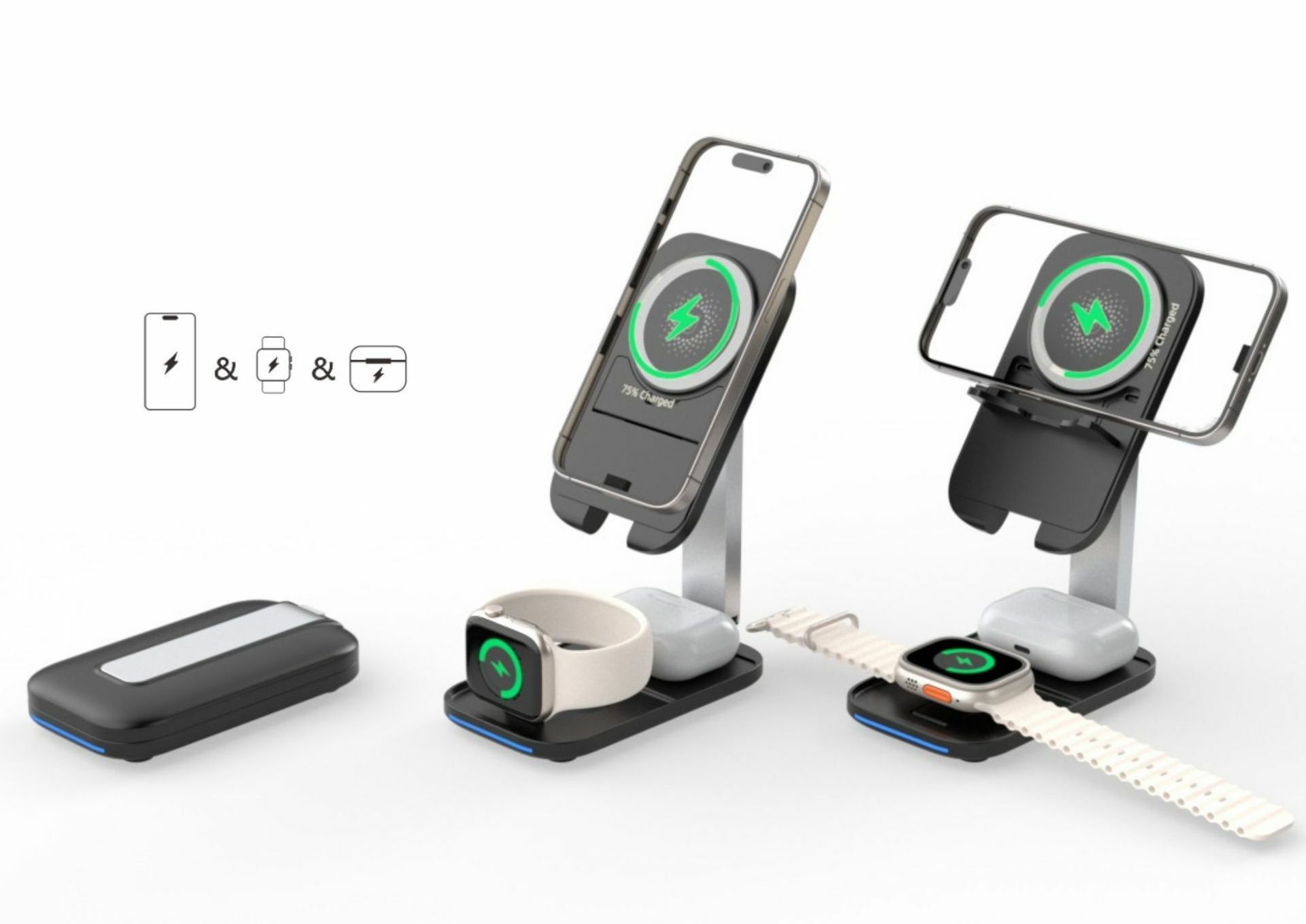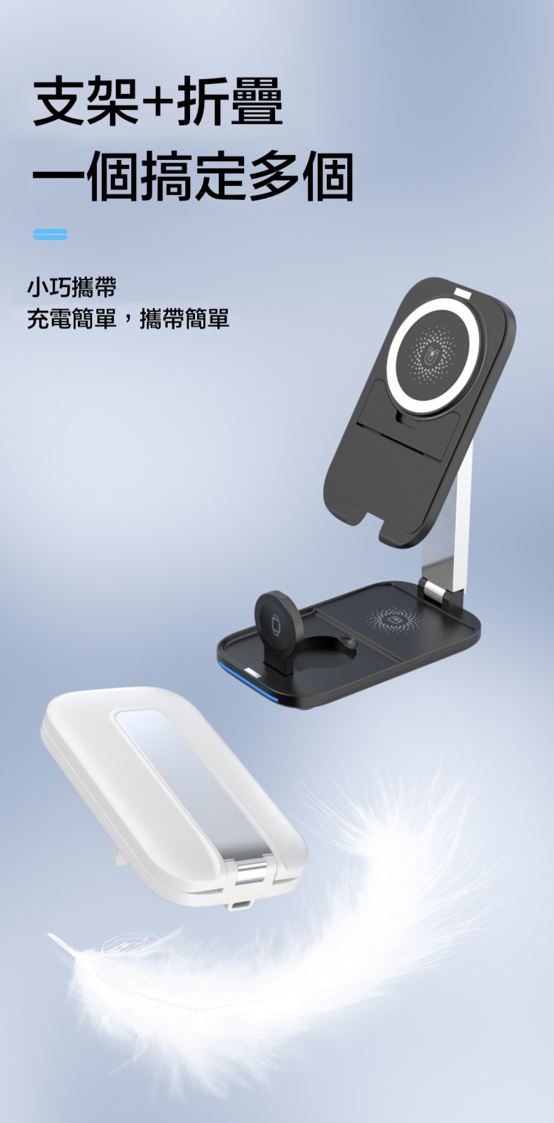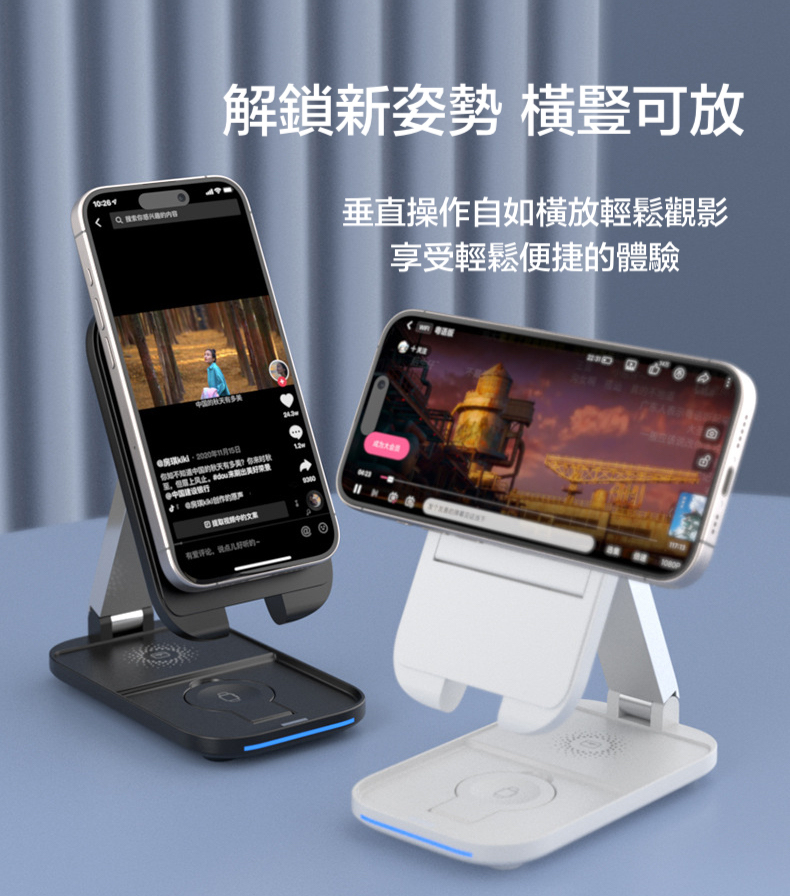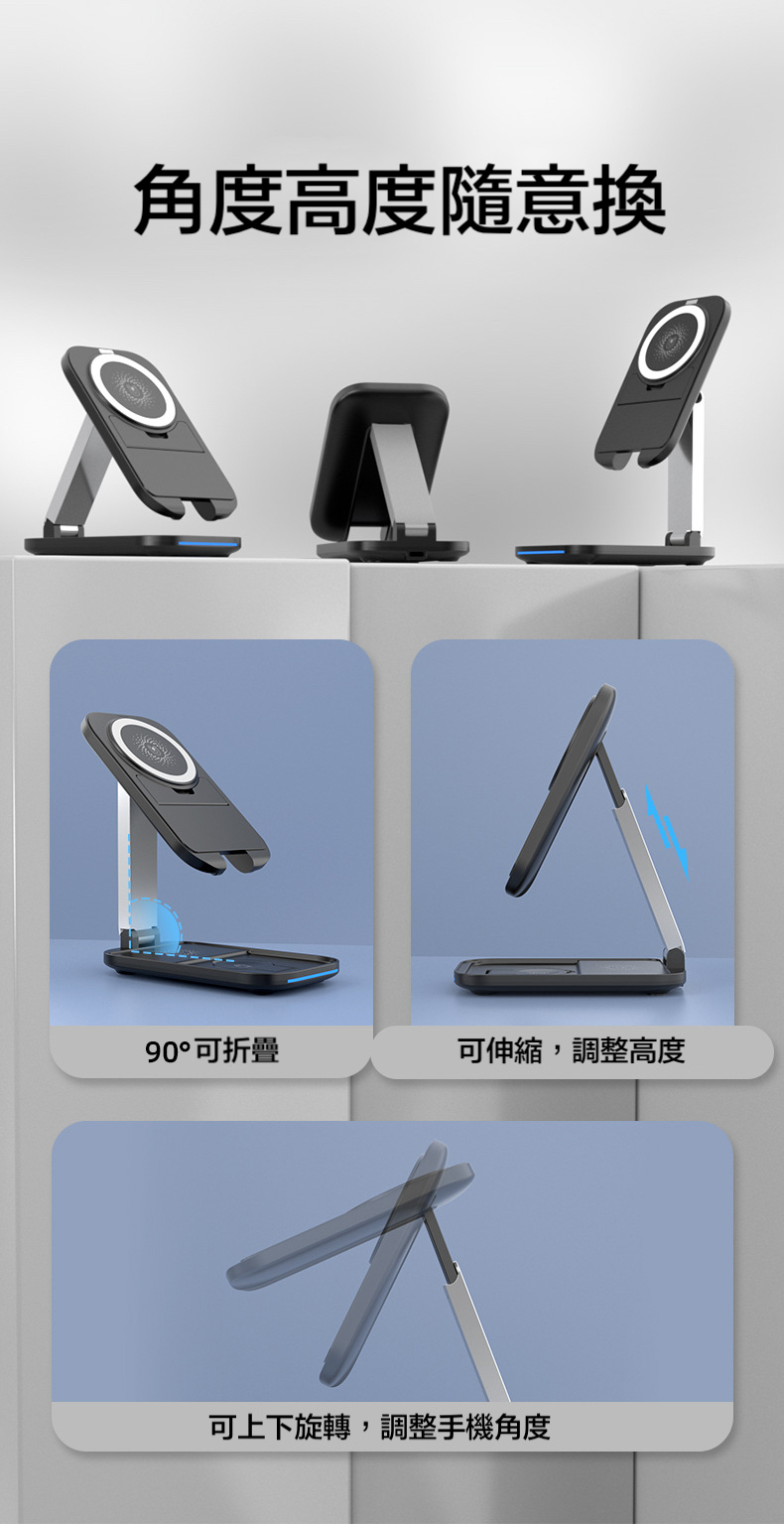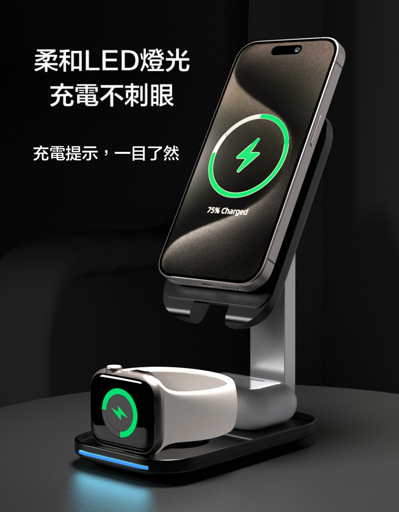 【15W三合一折疊magsafe支架充電器】 可伸縮可折疊,15W快速充電,同時支援apple watch及earphone無線充電