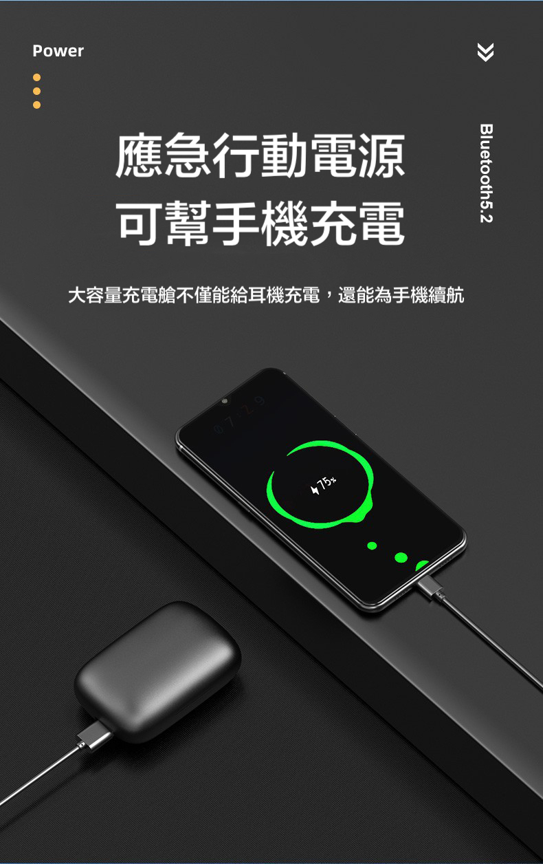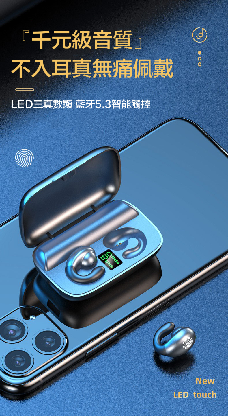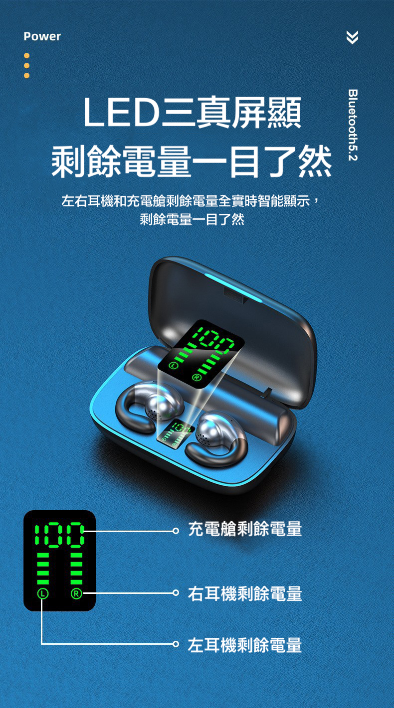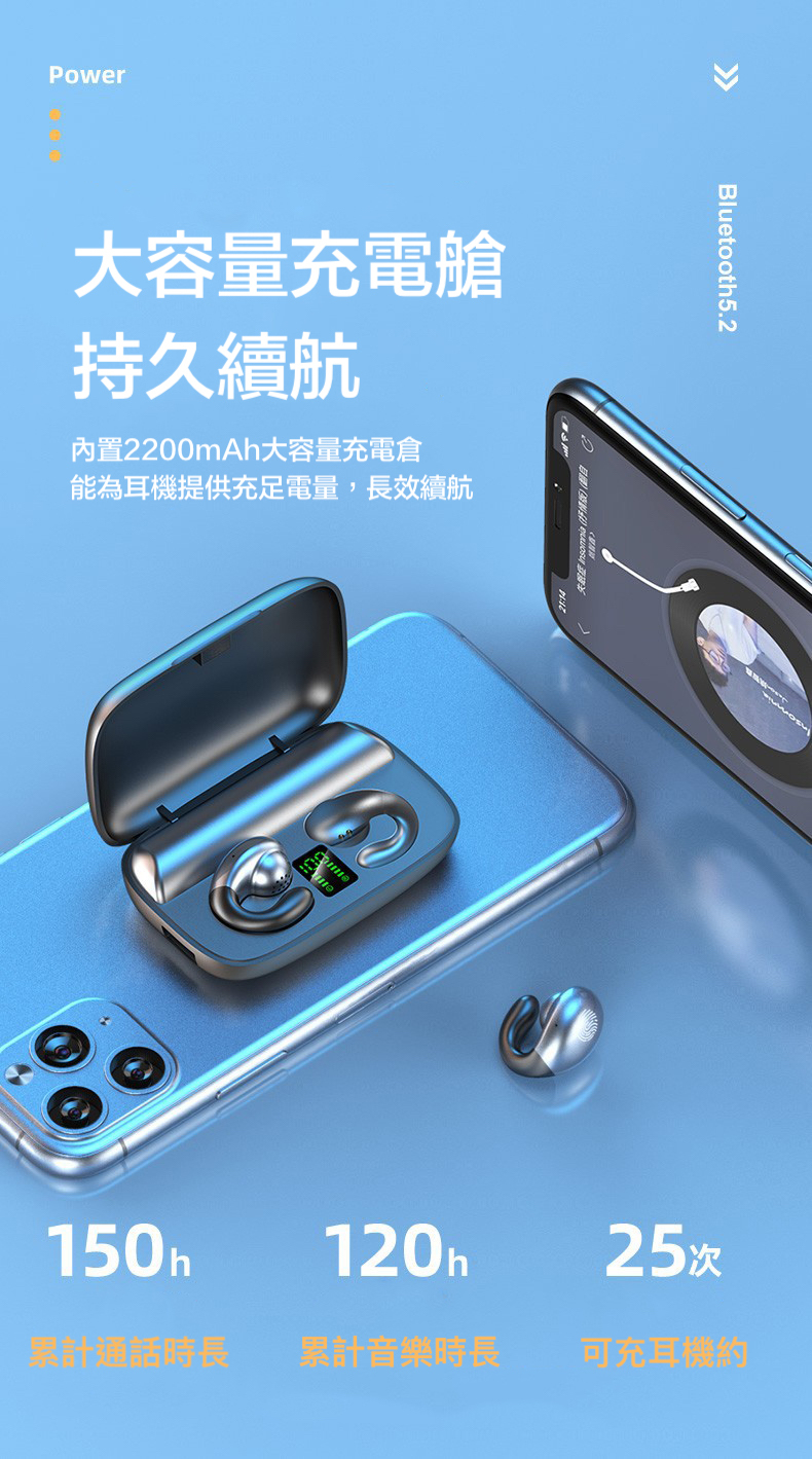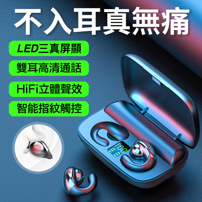 不入耳 雙耳立體聲2200mah超大電量充電盒 9D環繞立體音效/耳機連續聽歌120小時,充電盒充滿電能讓耳機充電25次