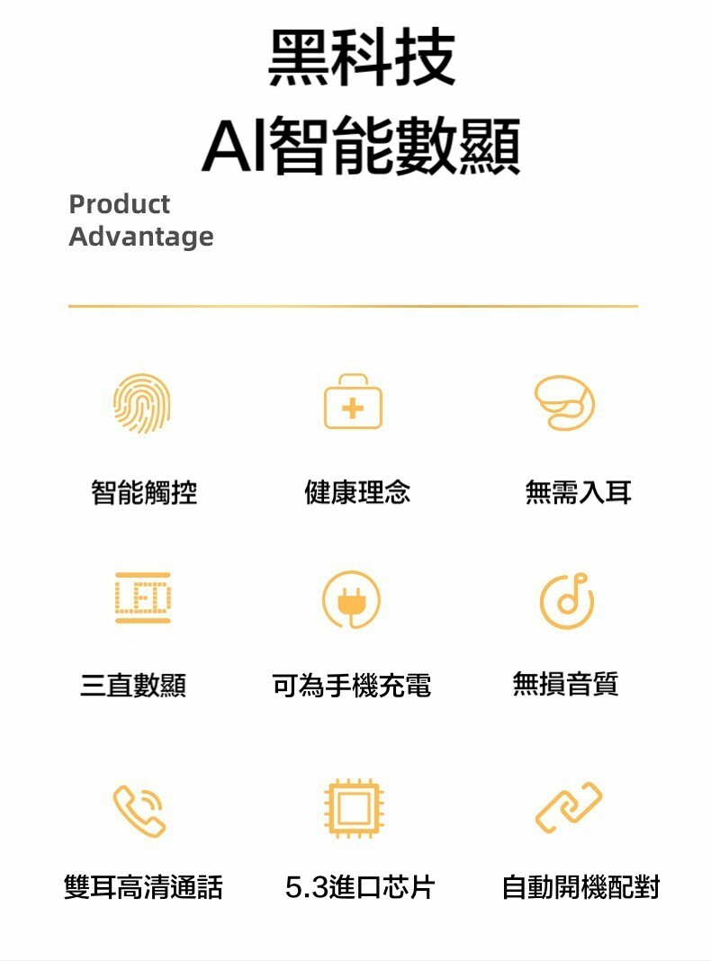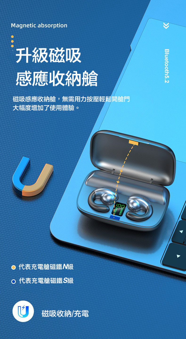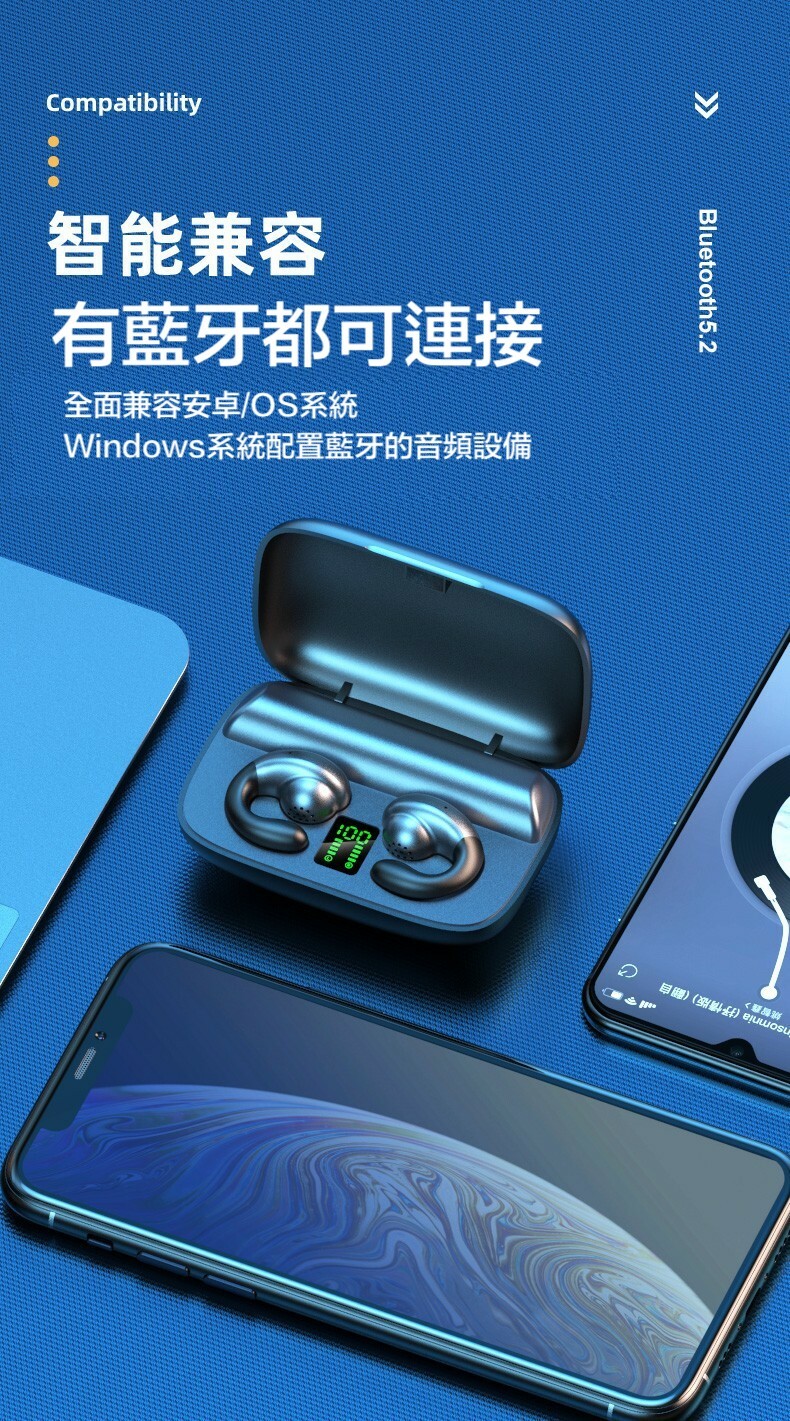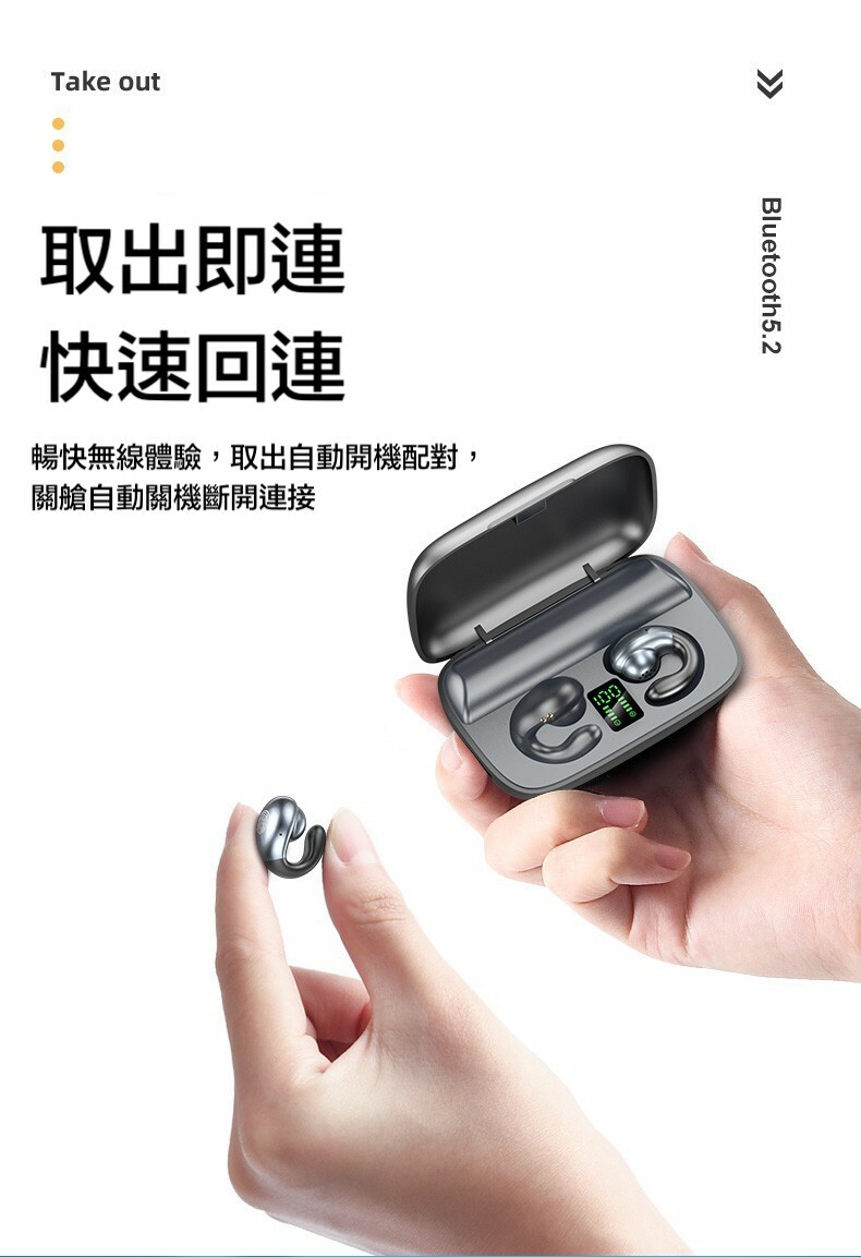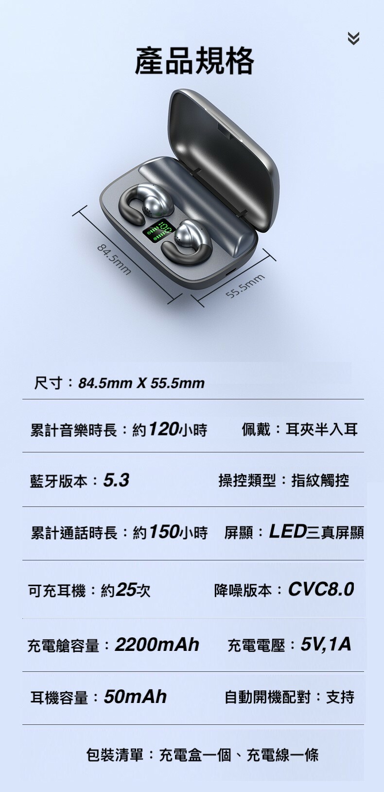 不入耳 雙耳立體聲2200mah超大電量充電盒 9D環繞立體音效/耳機連續聽歌120小時,充電盒充滿電能讓耳機充電25次