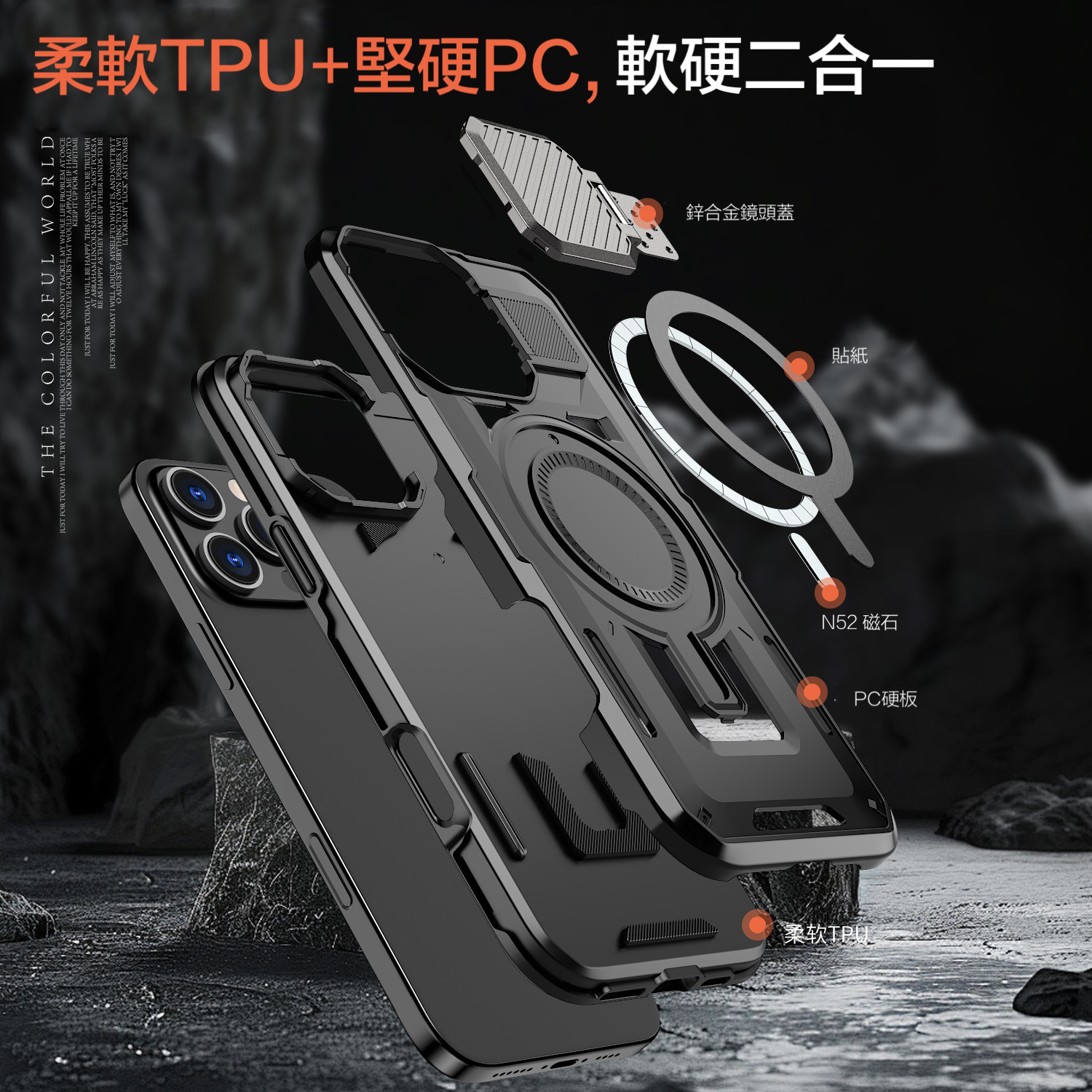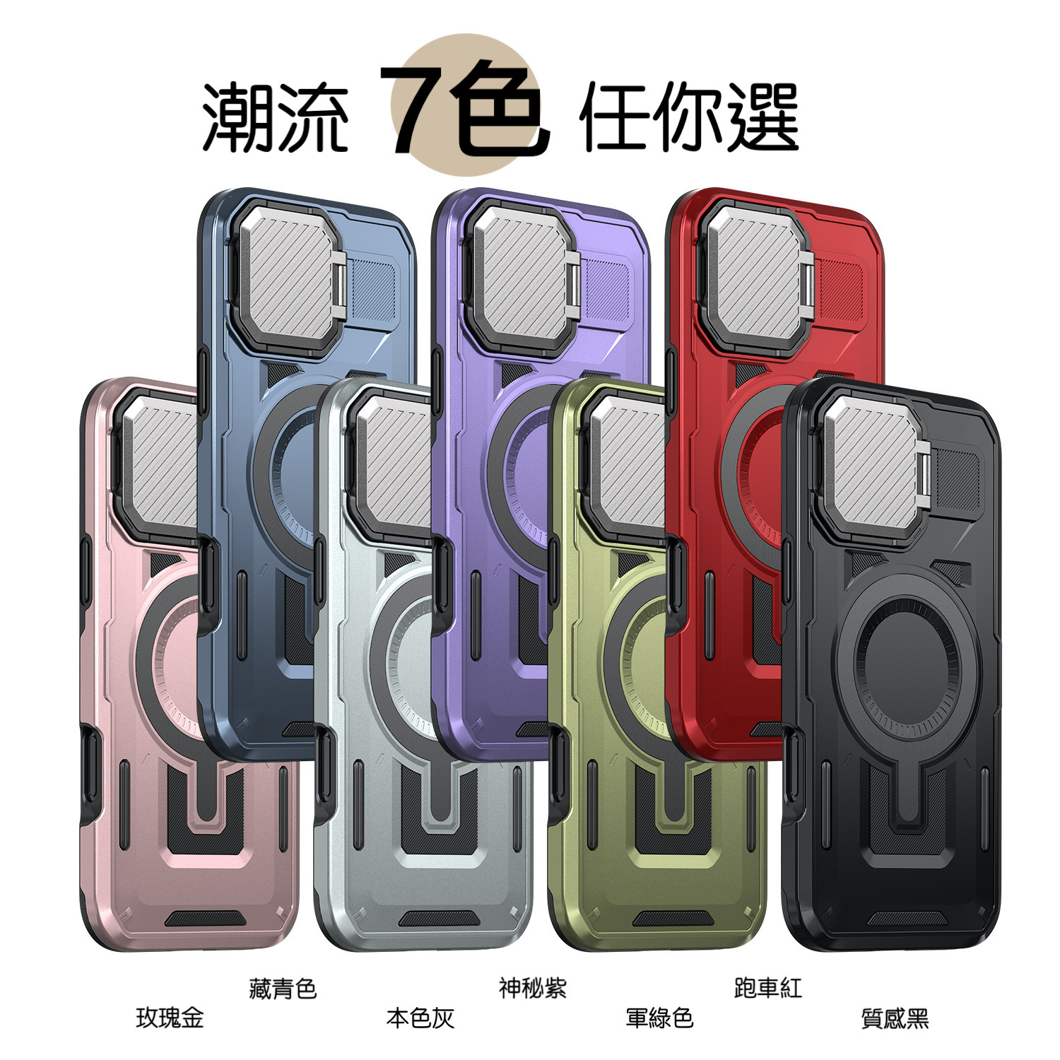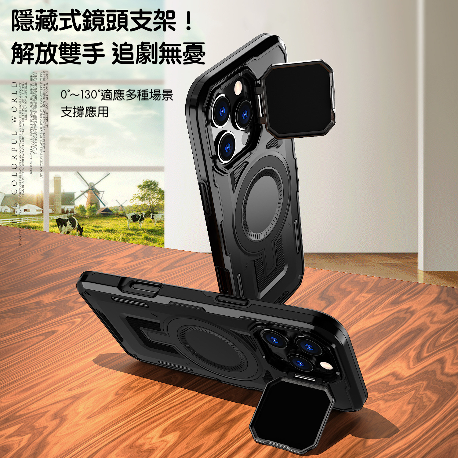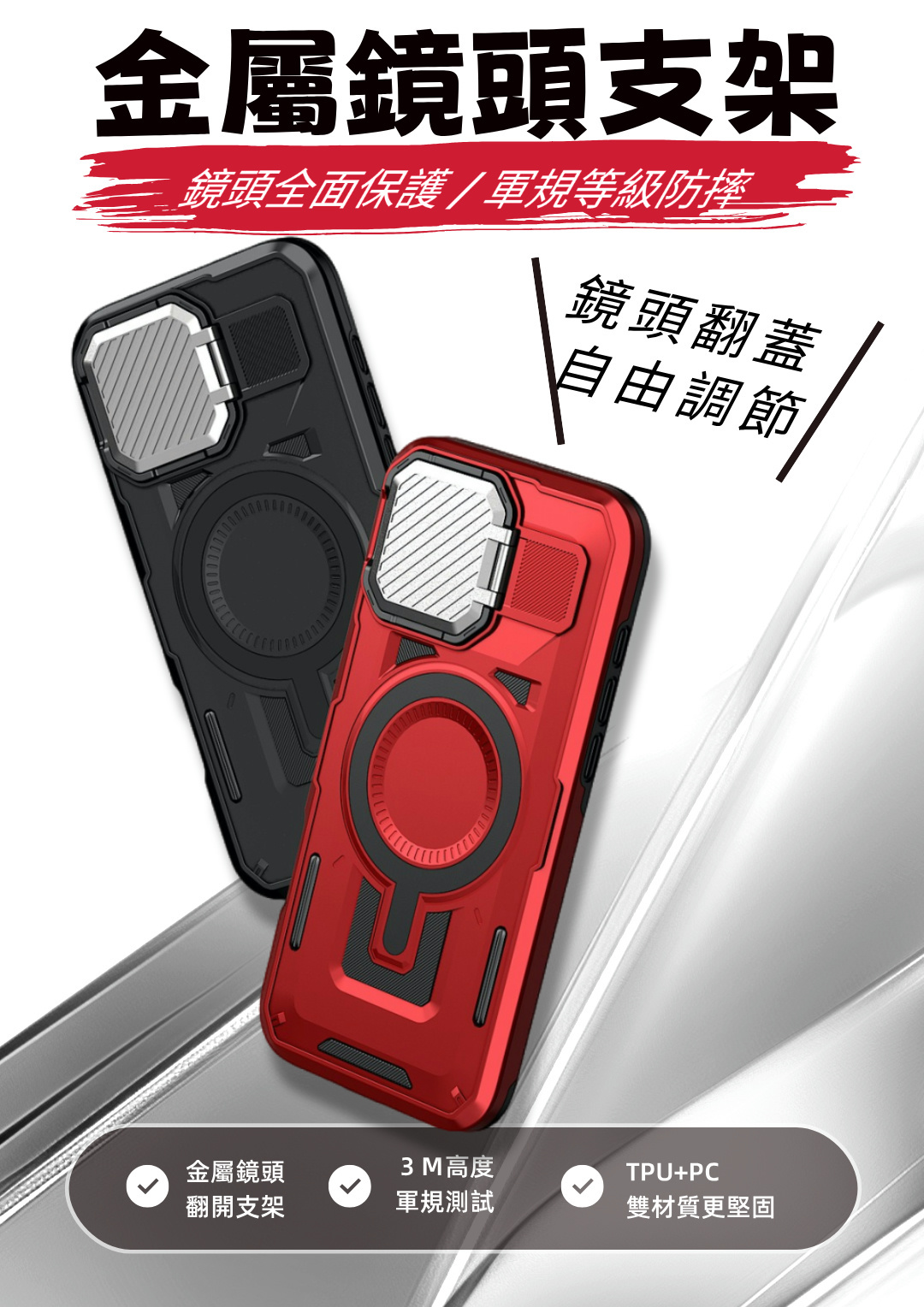 【金屬鏡頭翻蓋支架 軍規防摔殼】 金屬鏡頭 全面保護 適用於 iPhone 17系列16系列15系列14系列13系列12系列