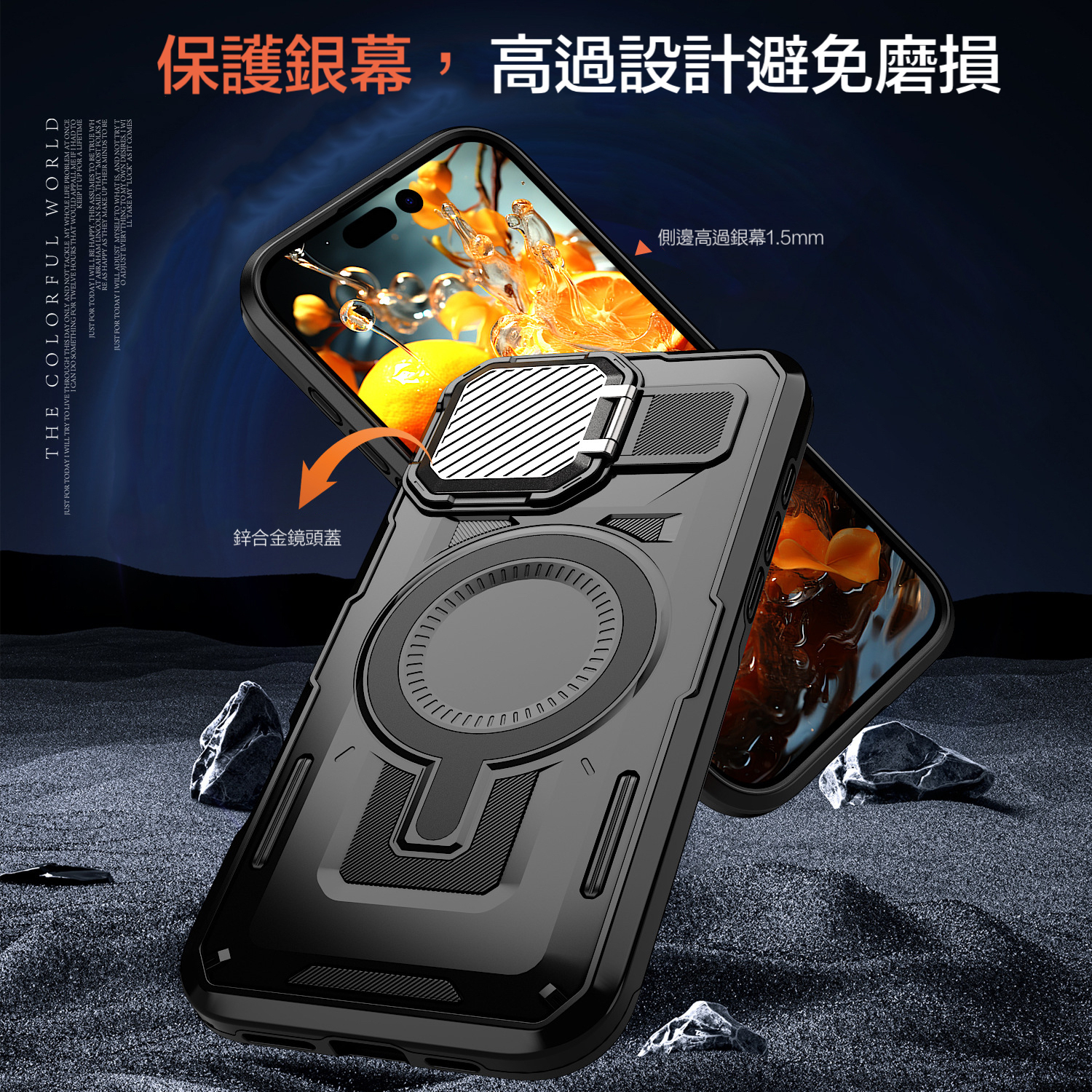【金屬鏡頭翻蓋支架 軍規防摔殼】 金屬鏡頭 全面保護 適用於 iPhone 16系列15系列14系列13系列12系列