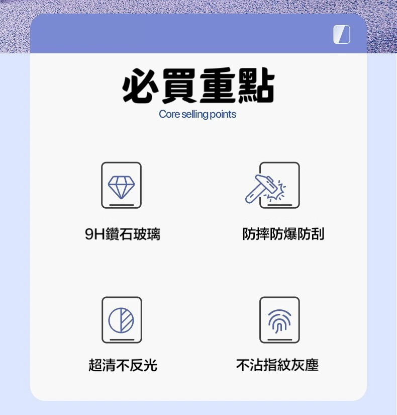 注意事項:玻璃貼/保護貼等消耗品性商品,如已將玻璃貼背面膠膜撕下將無法進行退換貨服務,請收到商品時先進行檢查在做貼合動作。