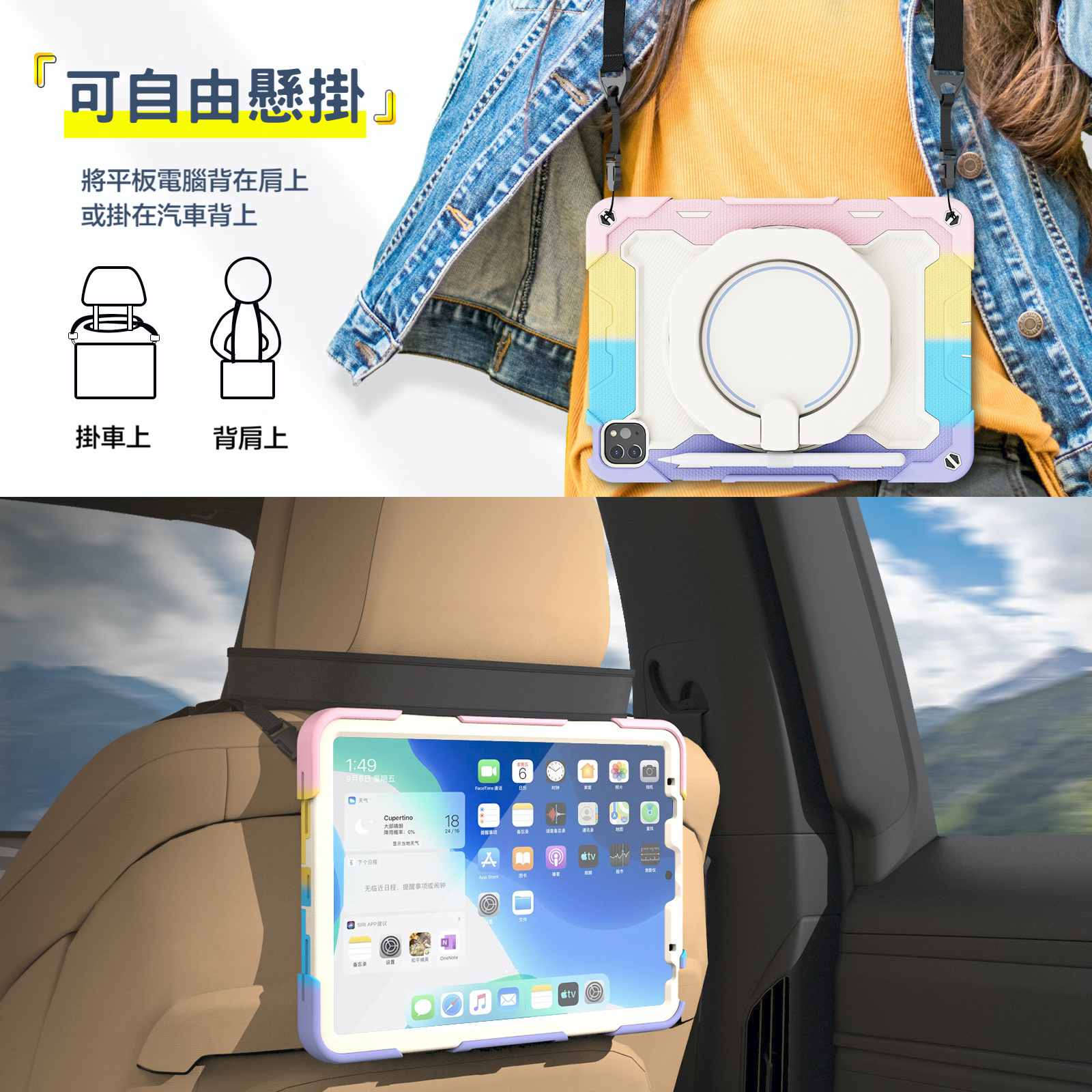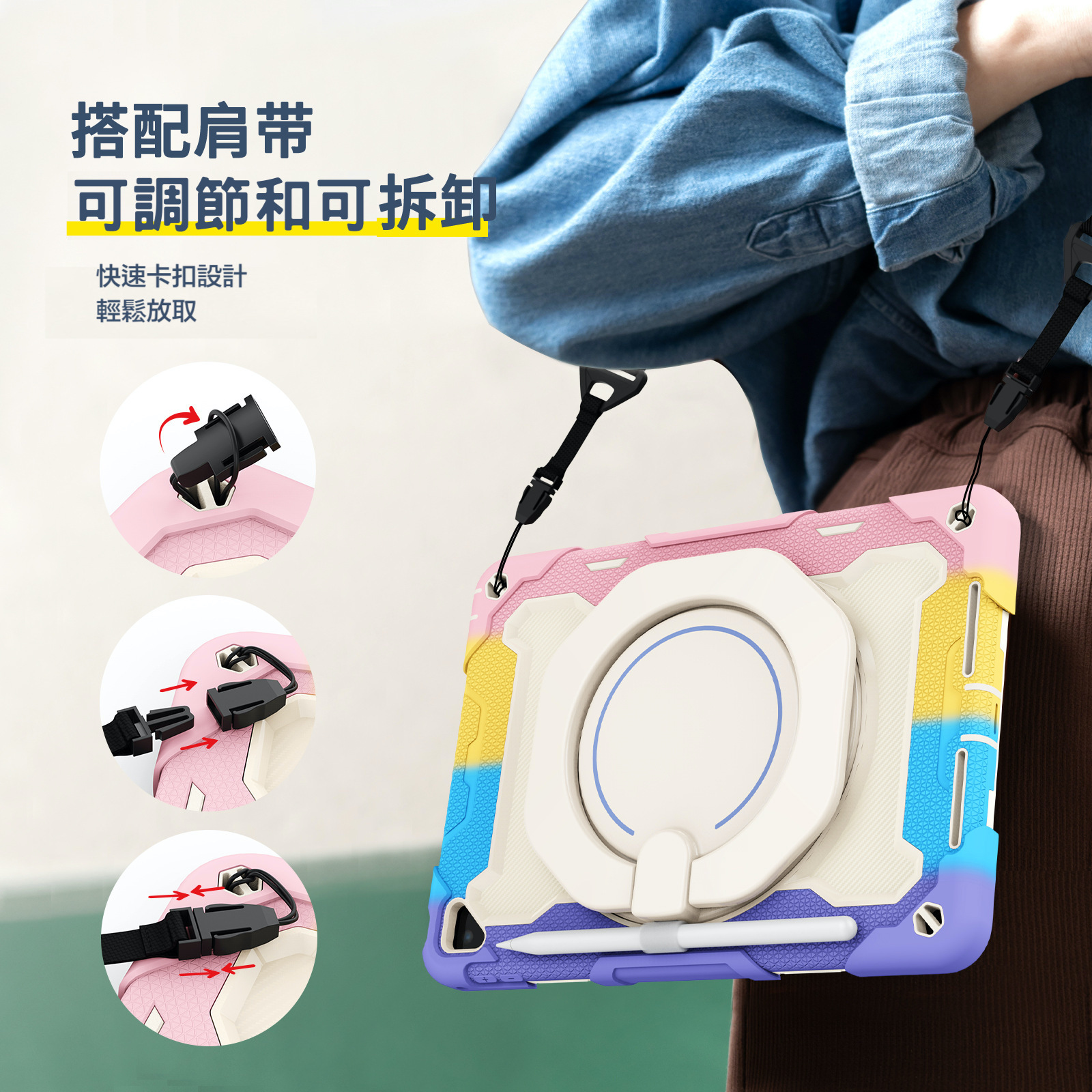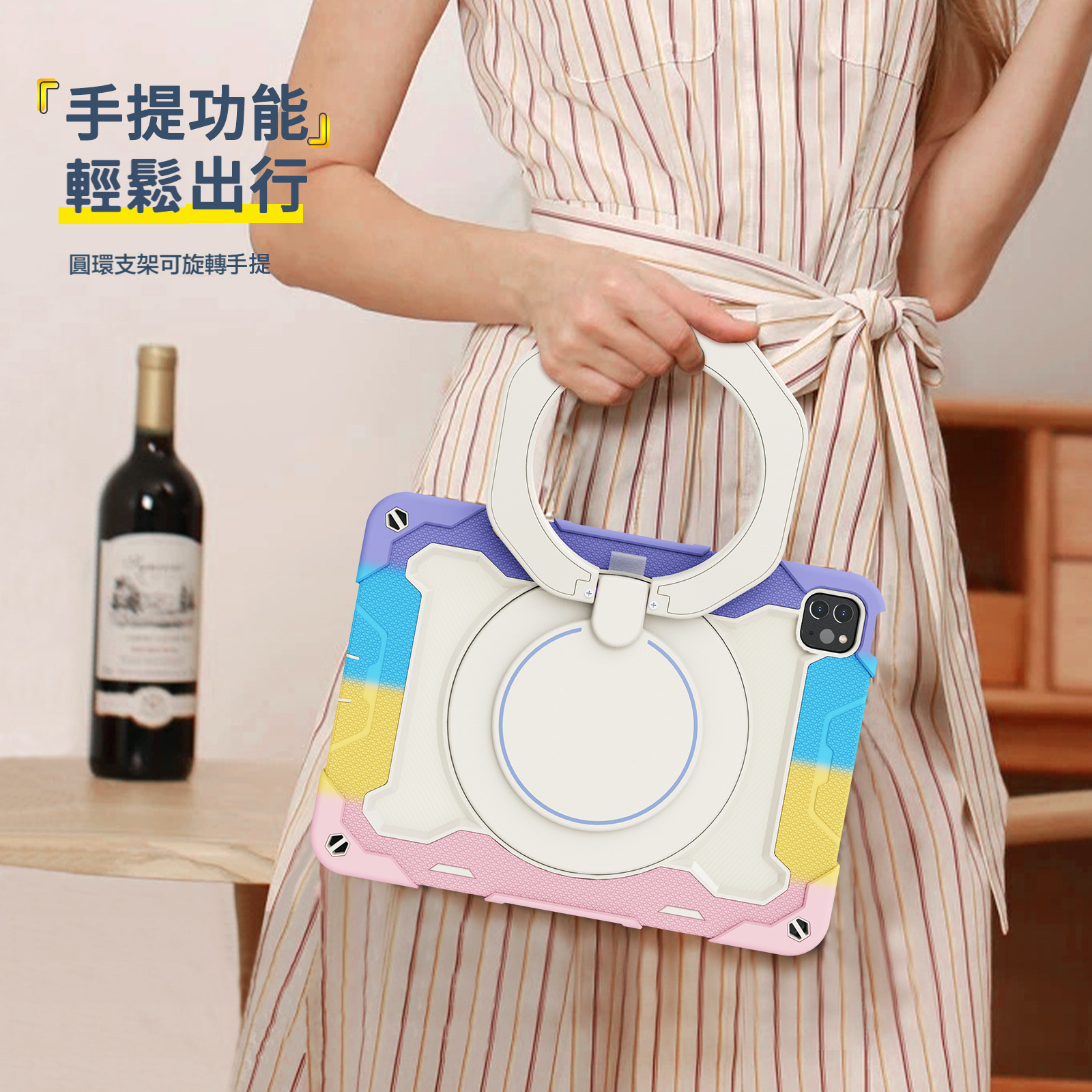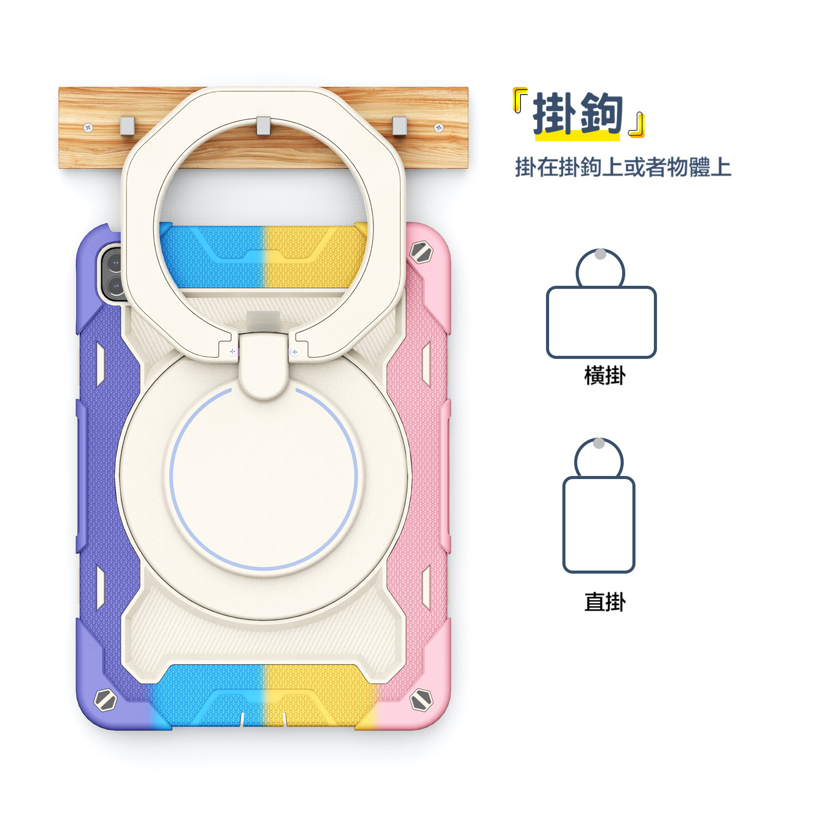 防摔、防塵、旋轉支架、抗污防髒、孔位精準