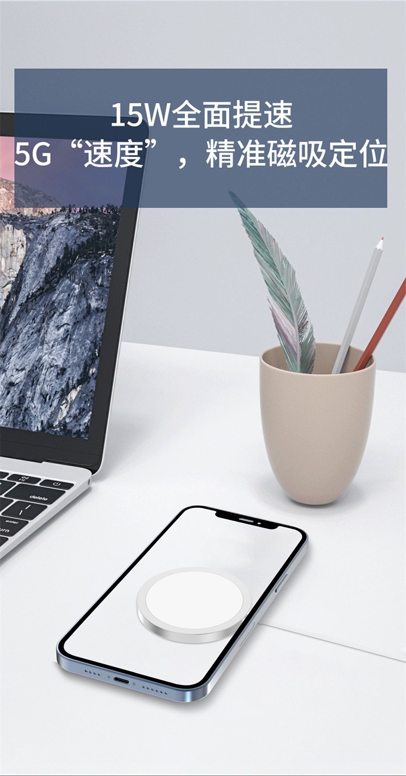 2.產品為桌面無線充,磁性僅用於吸附對位,為防止金屬異物吸附,磁性 力度相對弱。 且為保證充電效率及安全,發射盤表面請保持清潔。