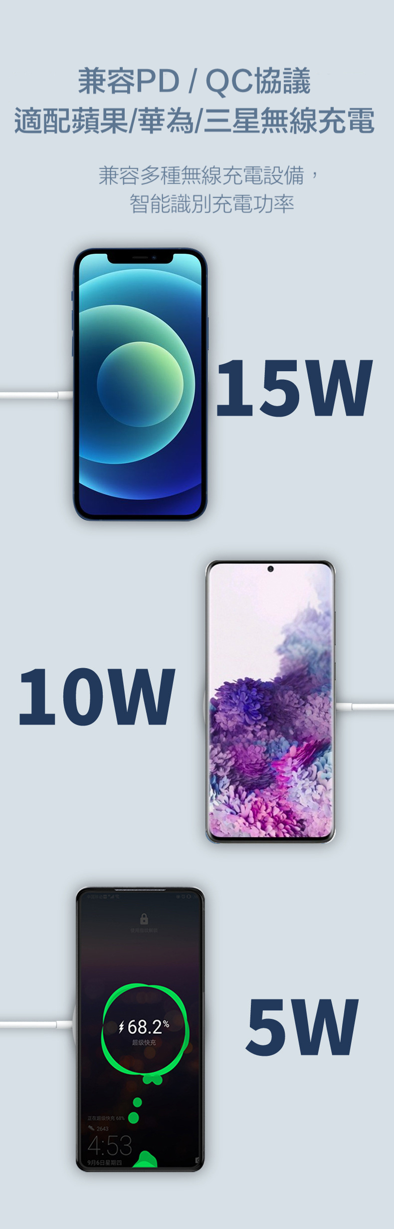 5.請保持植入性醫療設備(心跳脈搏器等等)與無線充電器之間的距離至少為20cm,以避免對醫療設備造成潛在干擾。