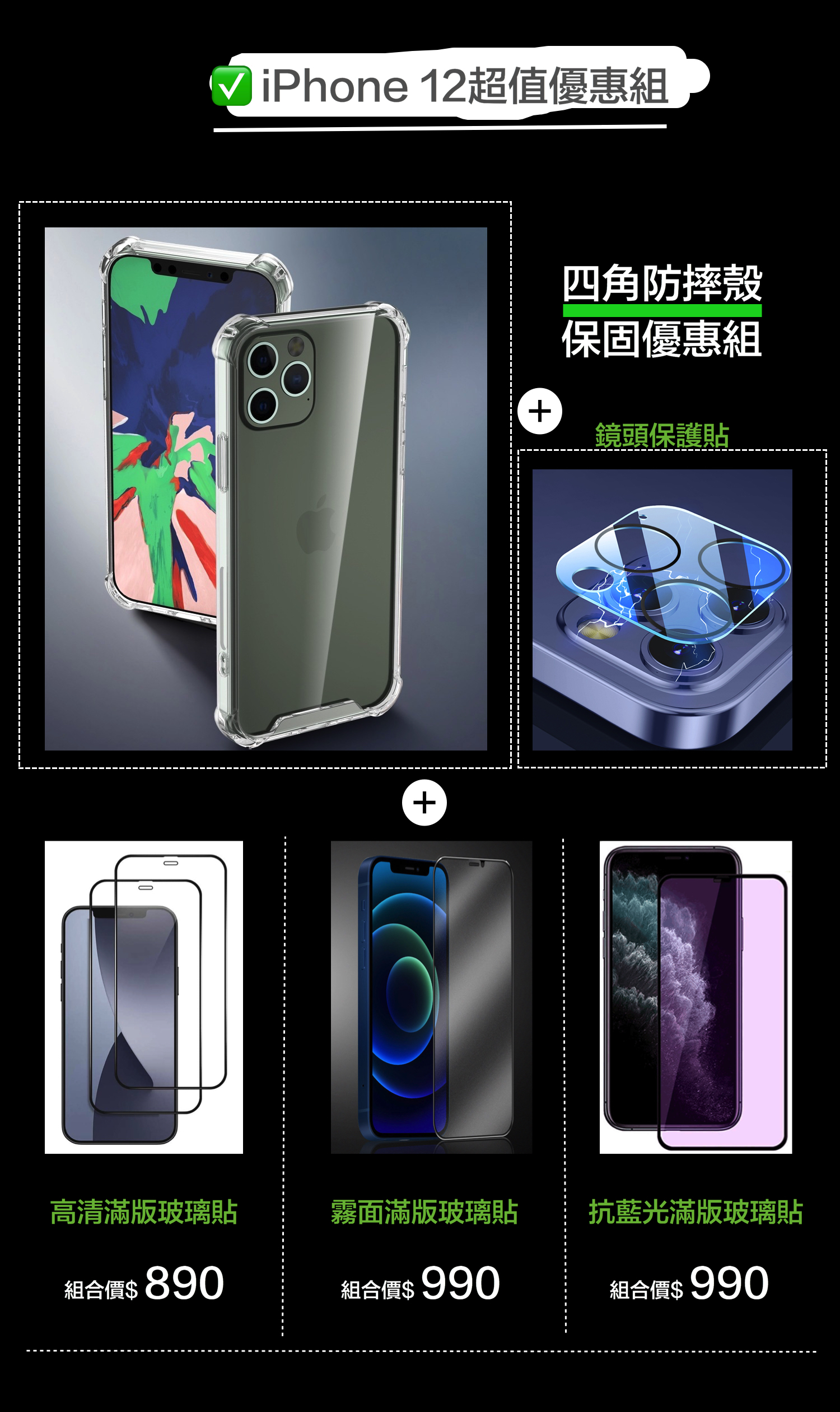 iPhone 12系列【四角防摔殼超值組合】(玻璃貼含保固)