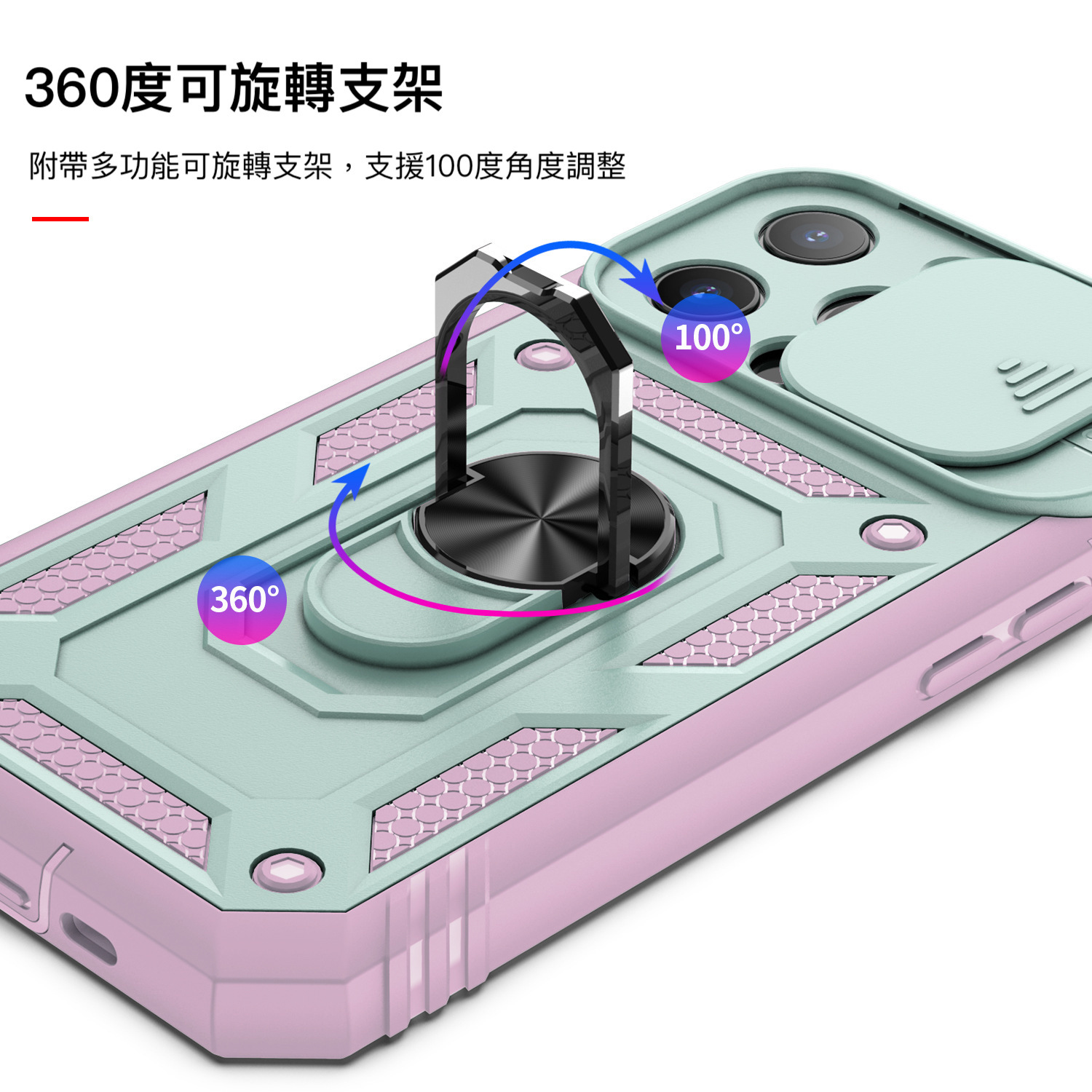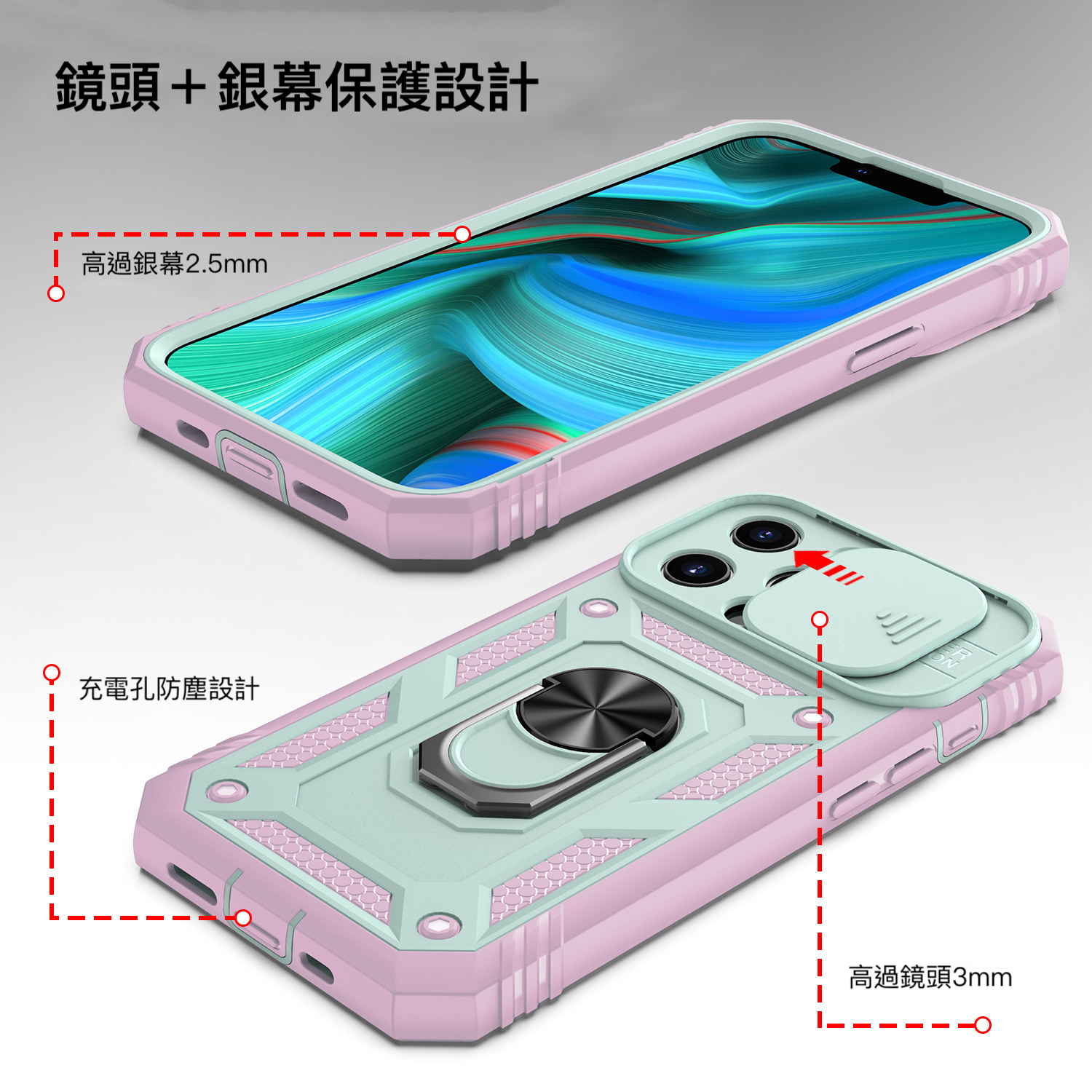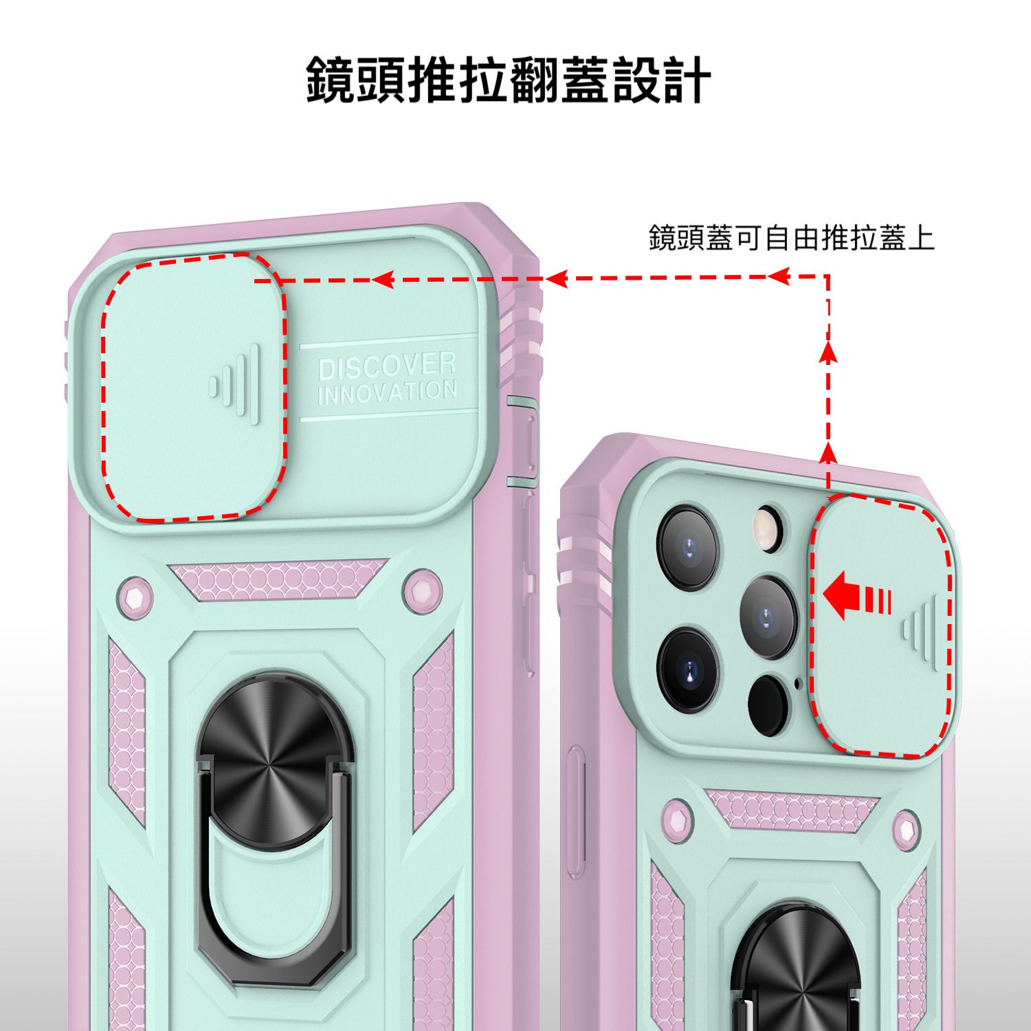 iPhone 【三合一鏡頭翻蓋手機殼】多色可選,銀幕邊框保護設計,具有指環支架