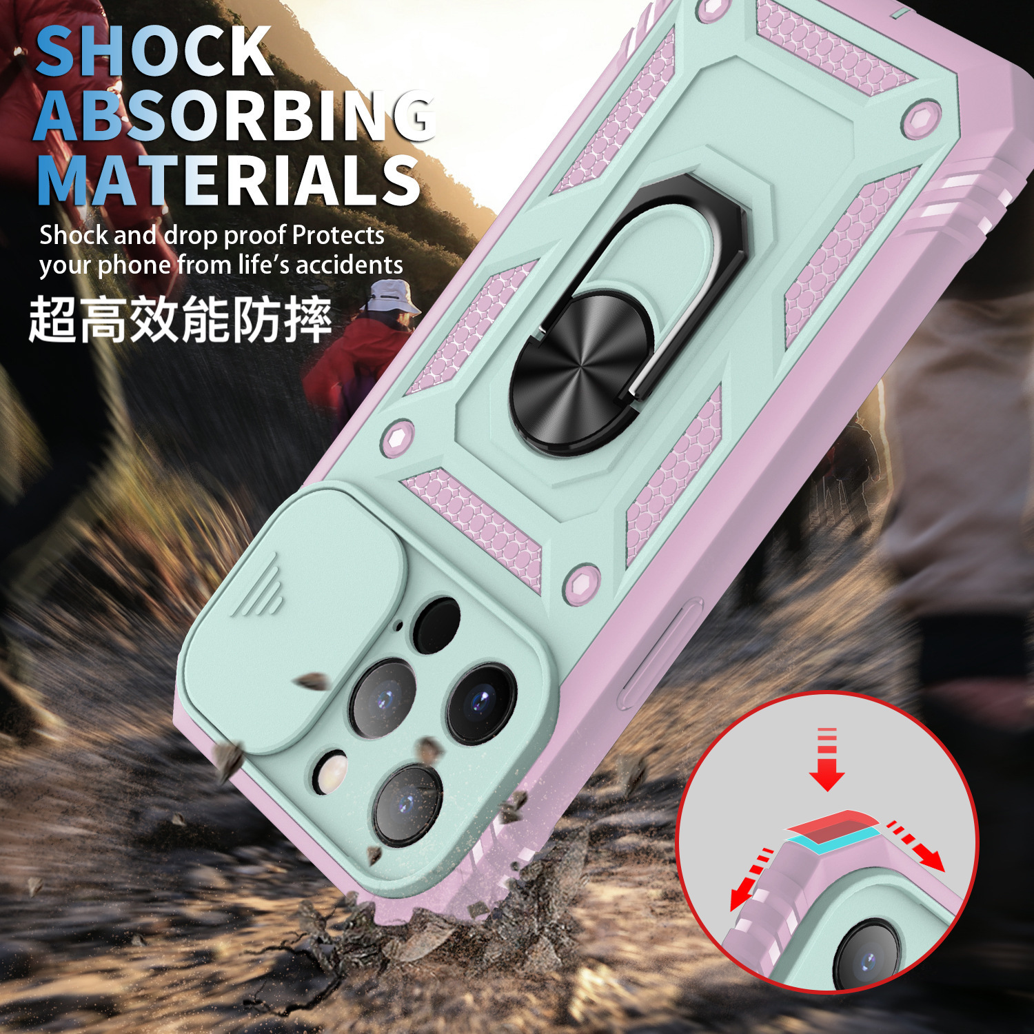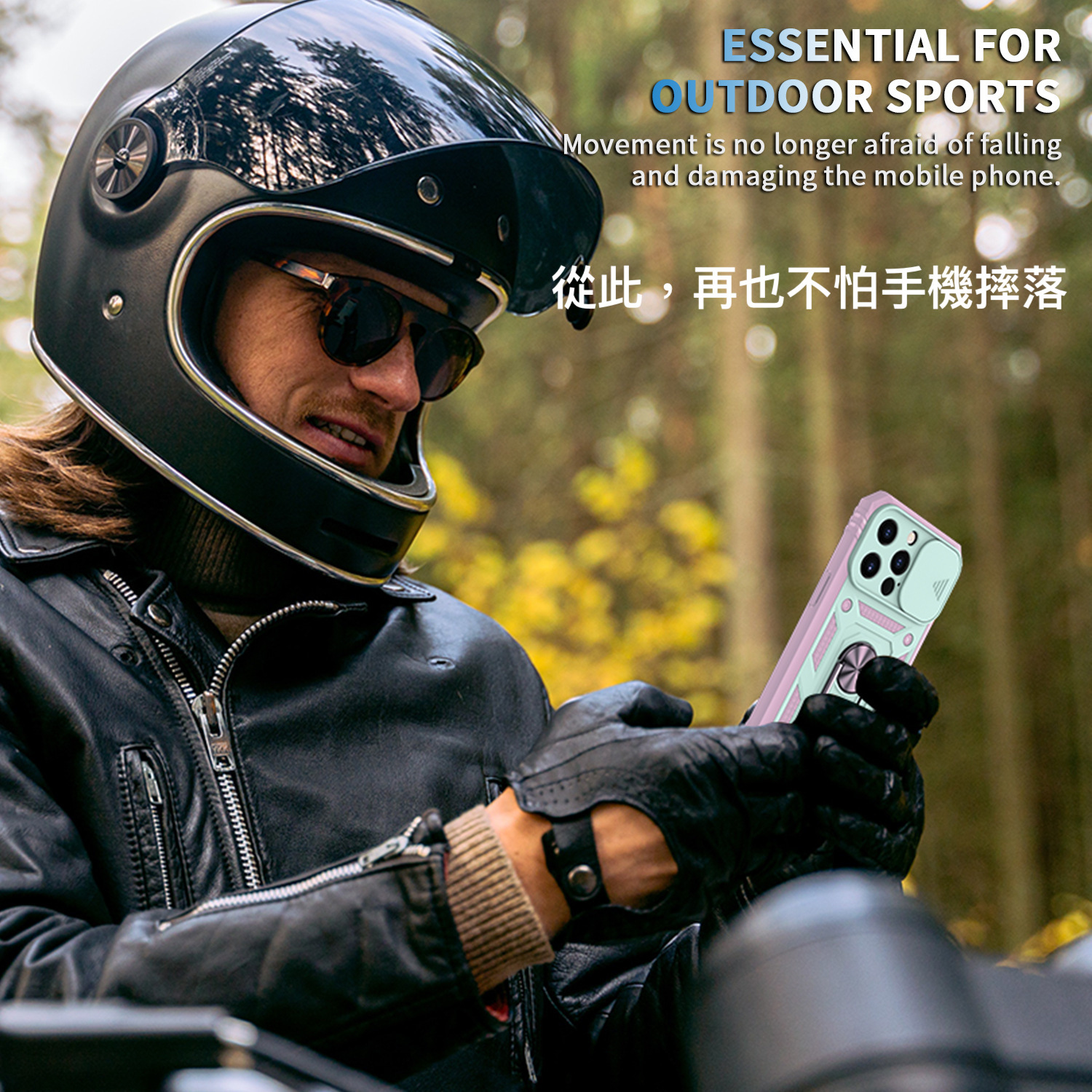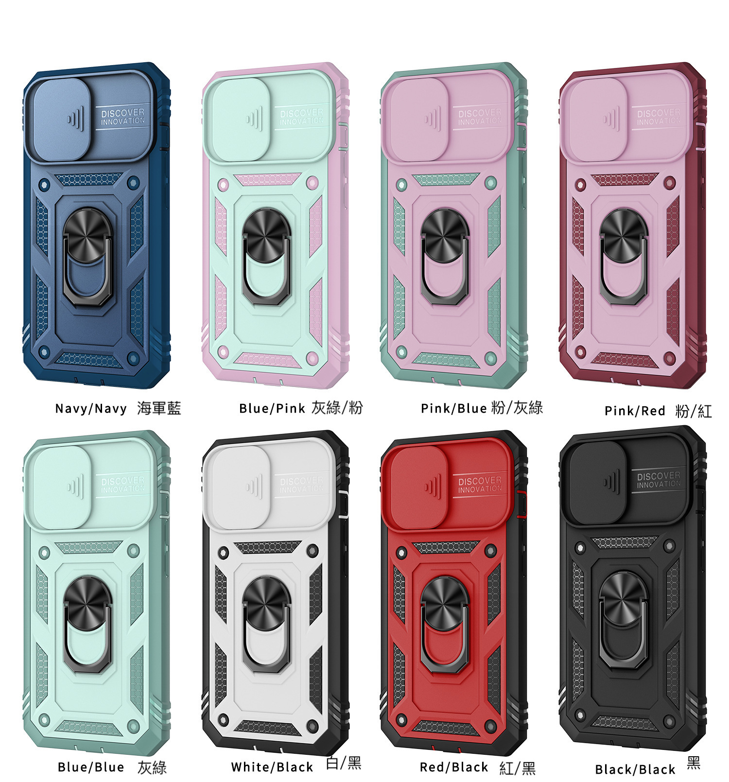 iPhone 【三合一鏡頭翻蓋手機殼】多色可選,銀幕邊框保護設計,具有指環支架