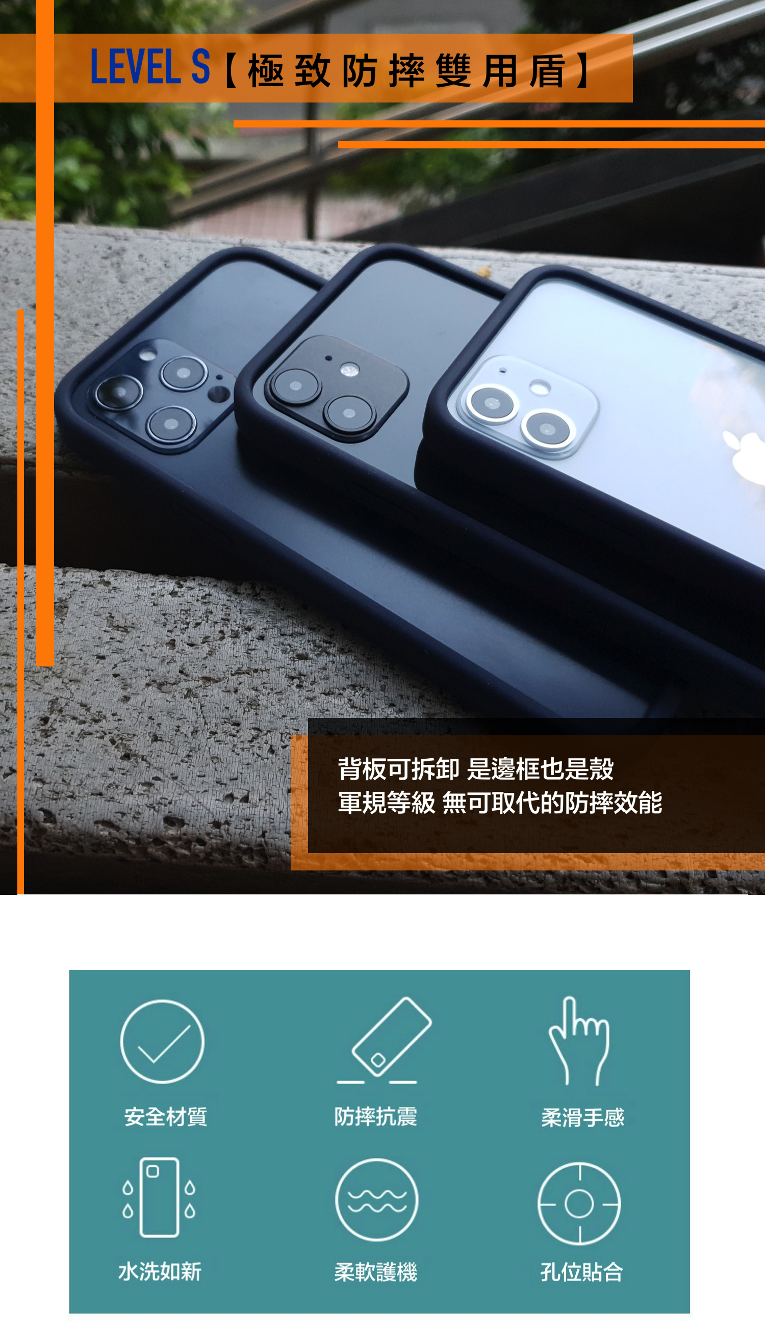 iPhone12系列 LEVEL S【極致防摔雙用盾】液態矽膠防摔雙用殼~防摔邊框+透明背版