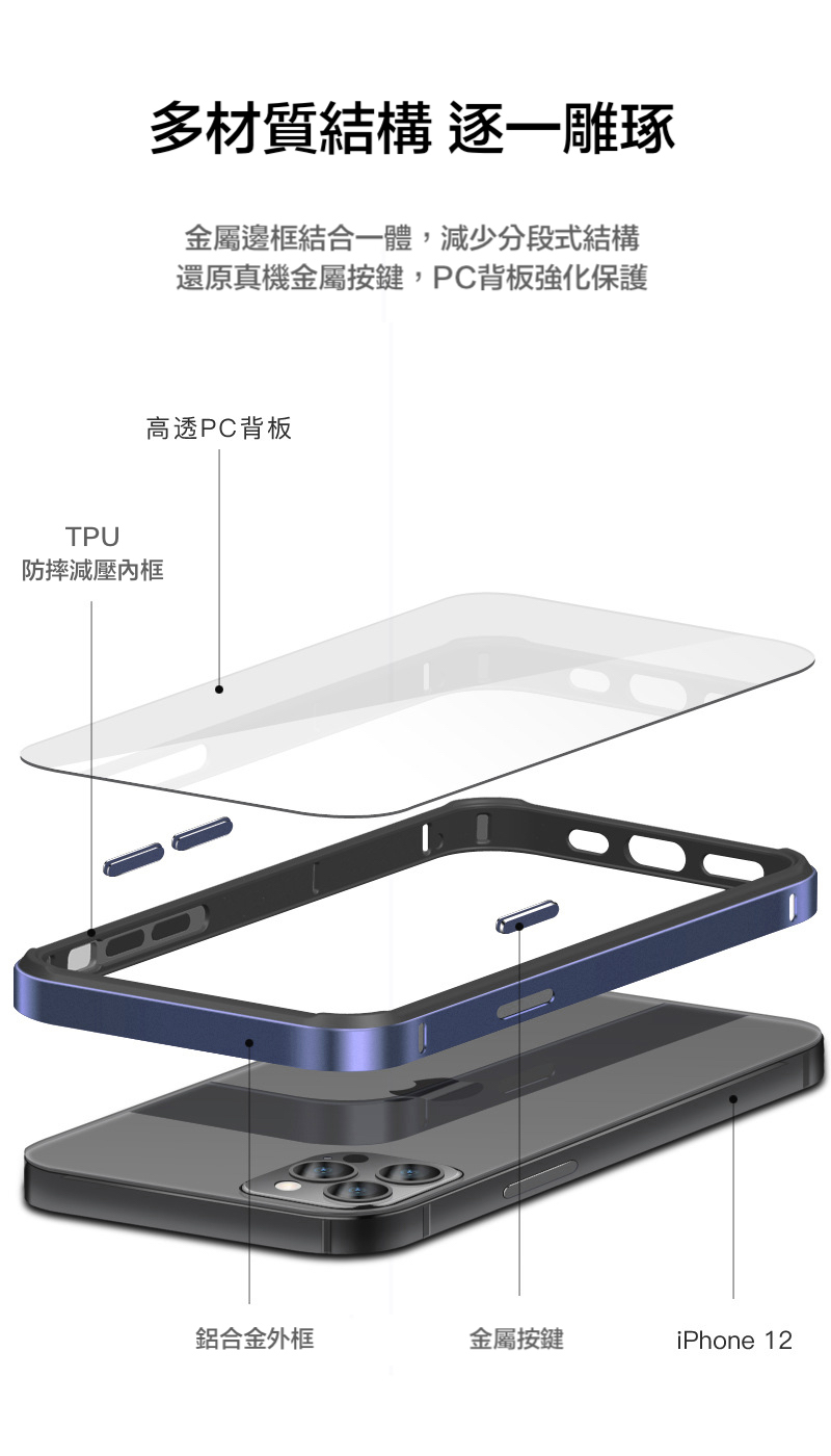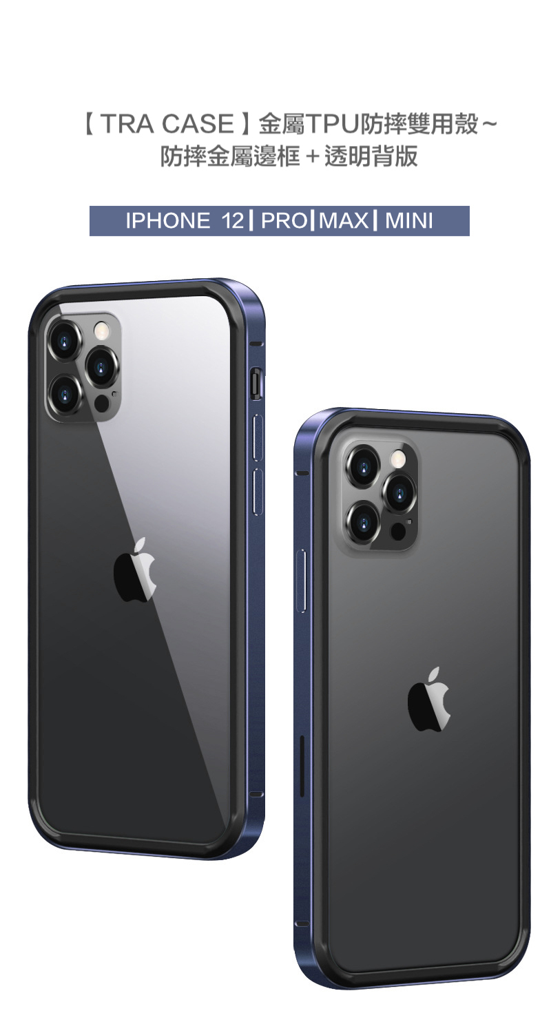iPhone12系列 【TRA CASE】金屬TPU防摔雙用殼~防摔金屬邊框+透明背版