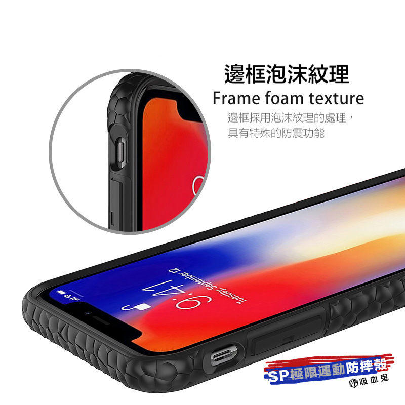 【SP極限運動防摔殼】 ,以球鞋為發想基礎,四周利用發泡綿紋理結構 建構出防摔效果超凡的手機殼。框架泡沫質感採用框架泡沫質感的牛頓流動力學技術,具有特殊的防震功能