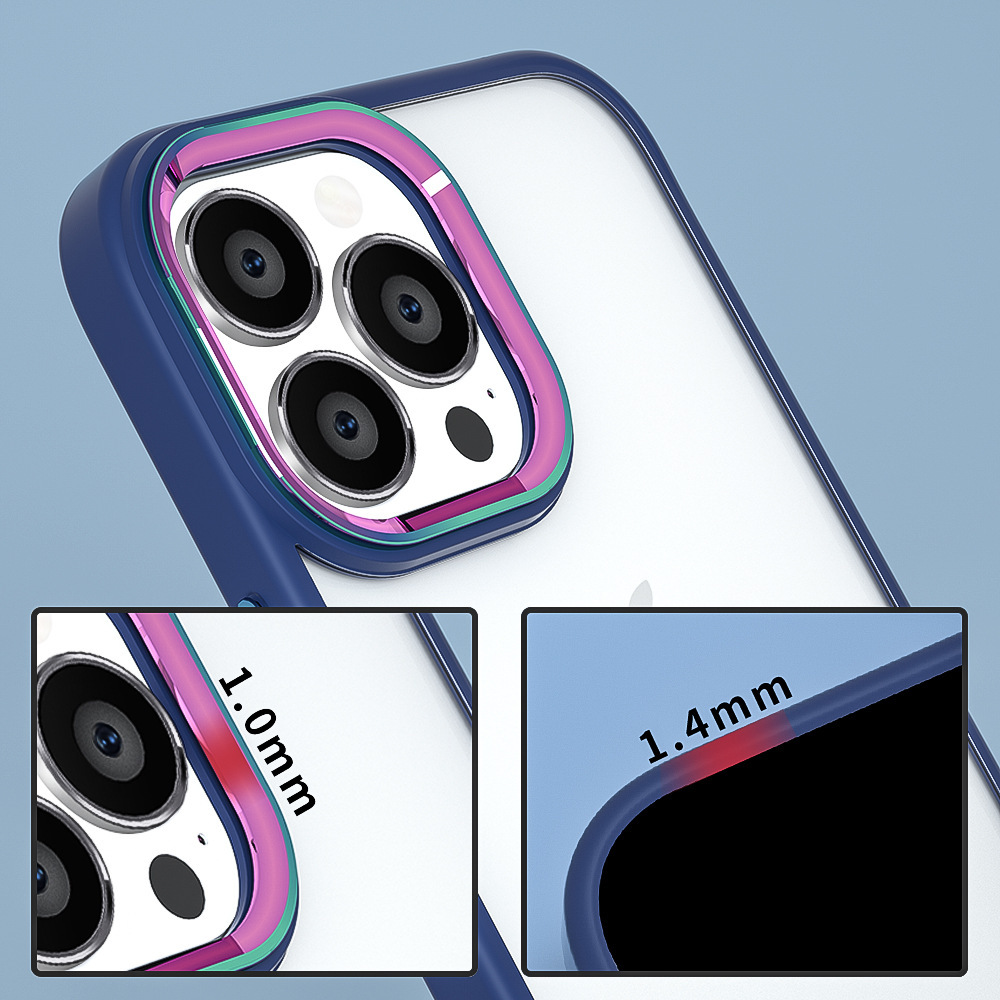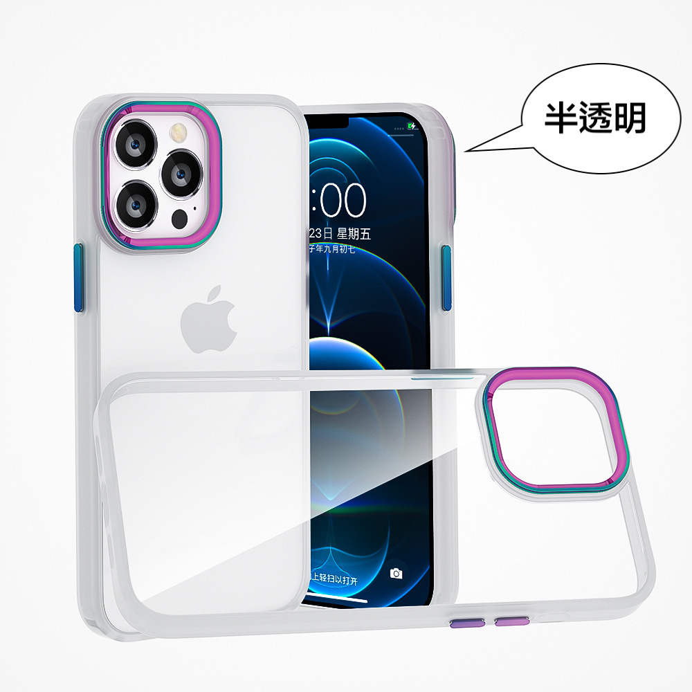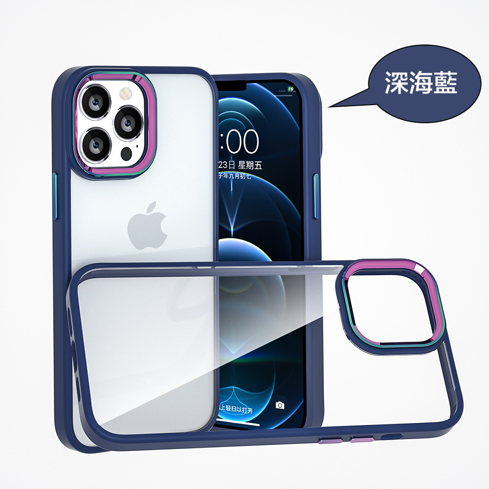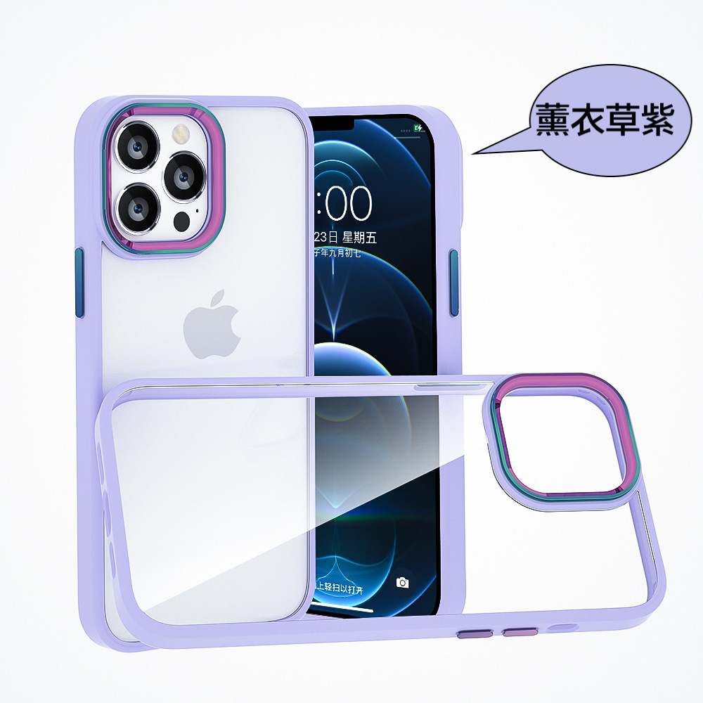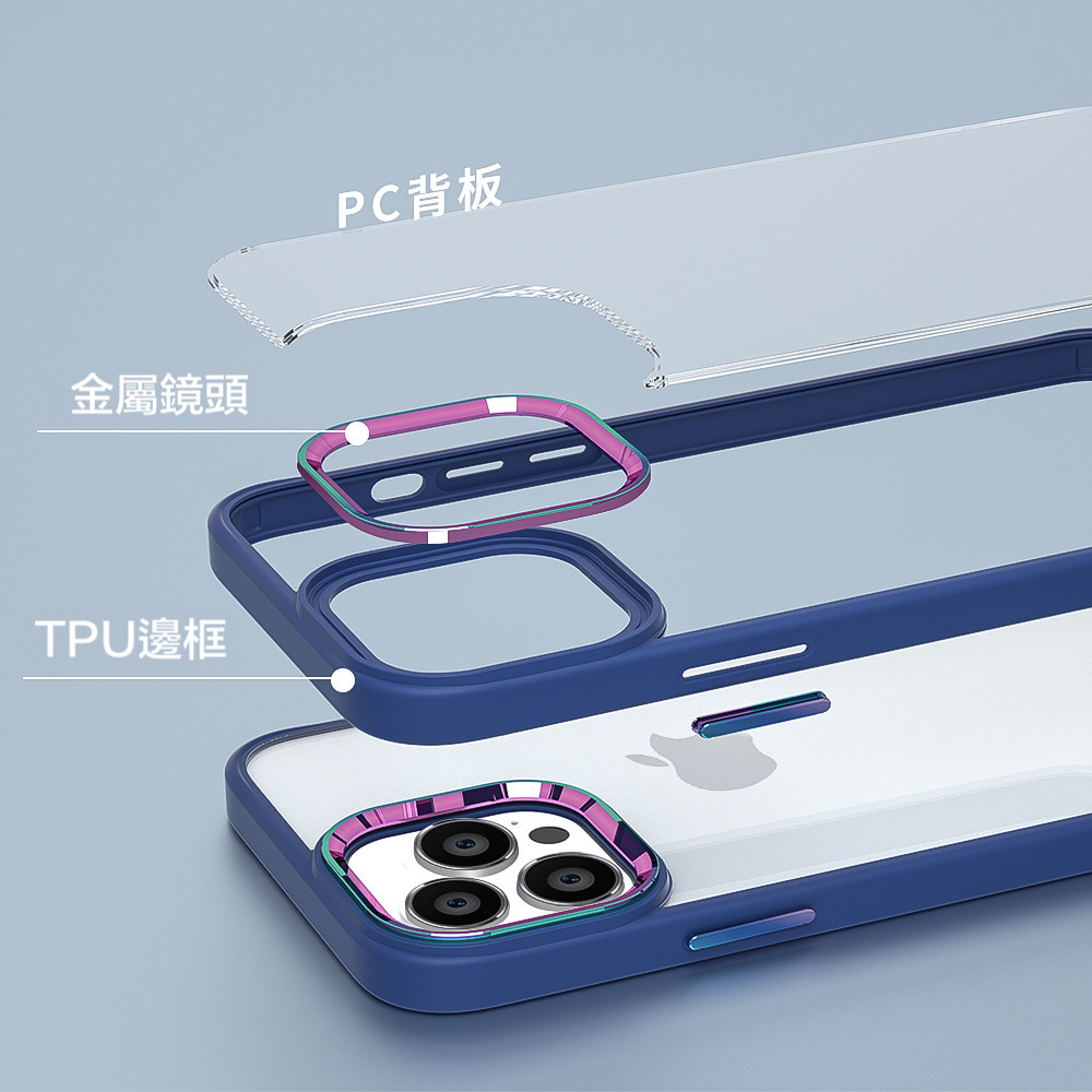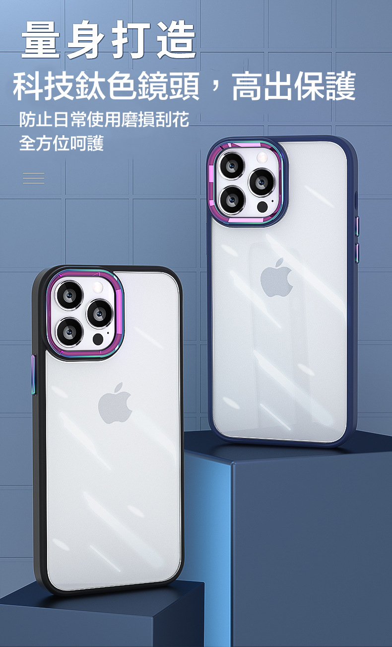 iPhone【鈦金金屬鏡頭防摔殼 】磨砂軟邊TPU+高透亮PC背板一體