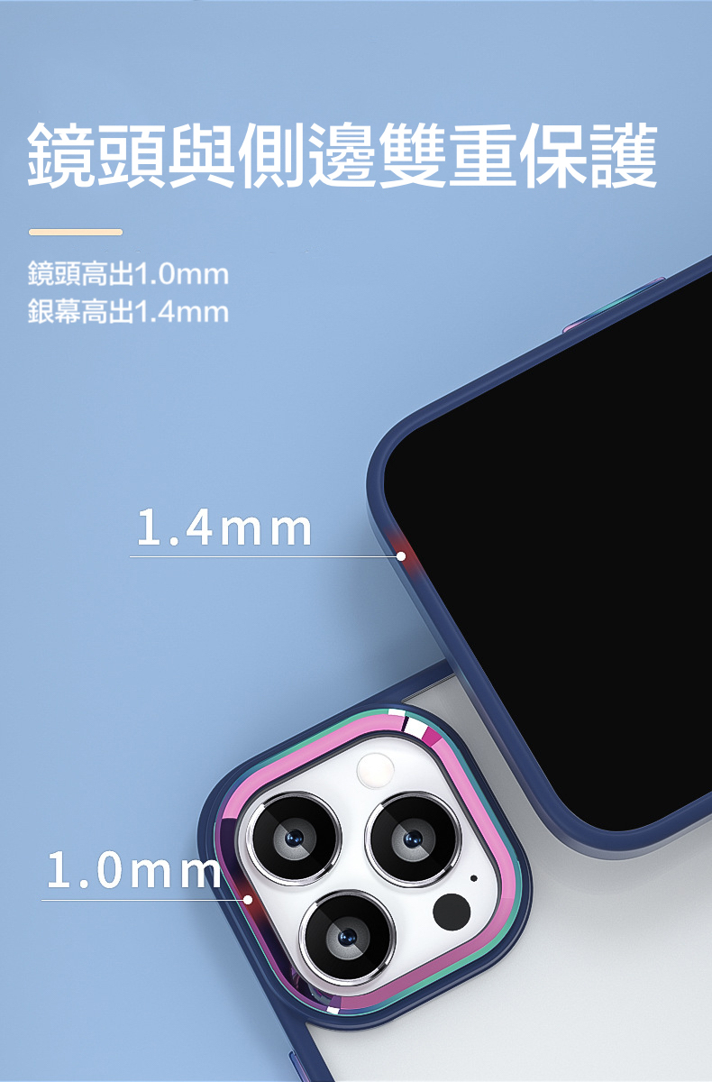 雙材質抗摔結構,正反側邊邊緣增高設計。