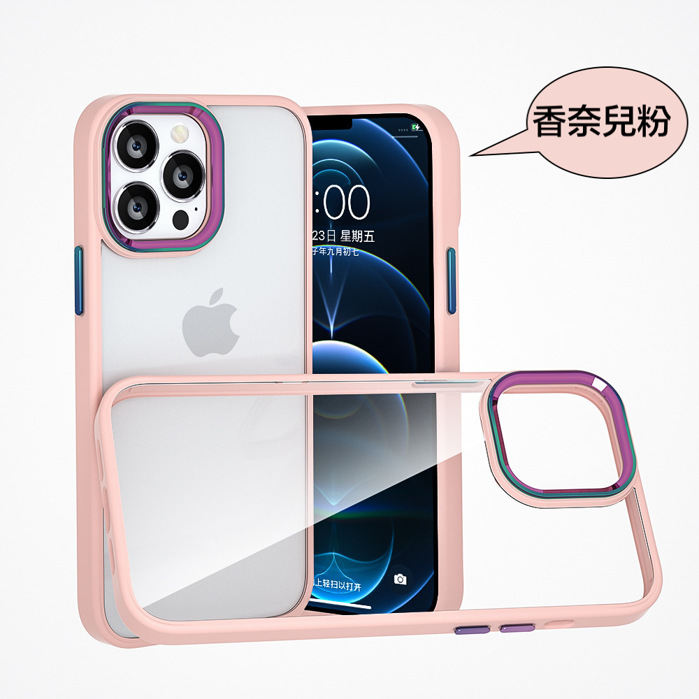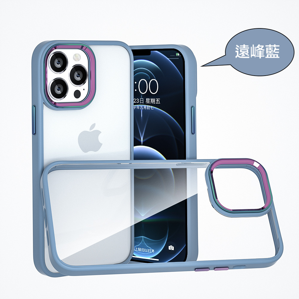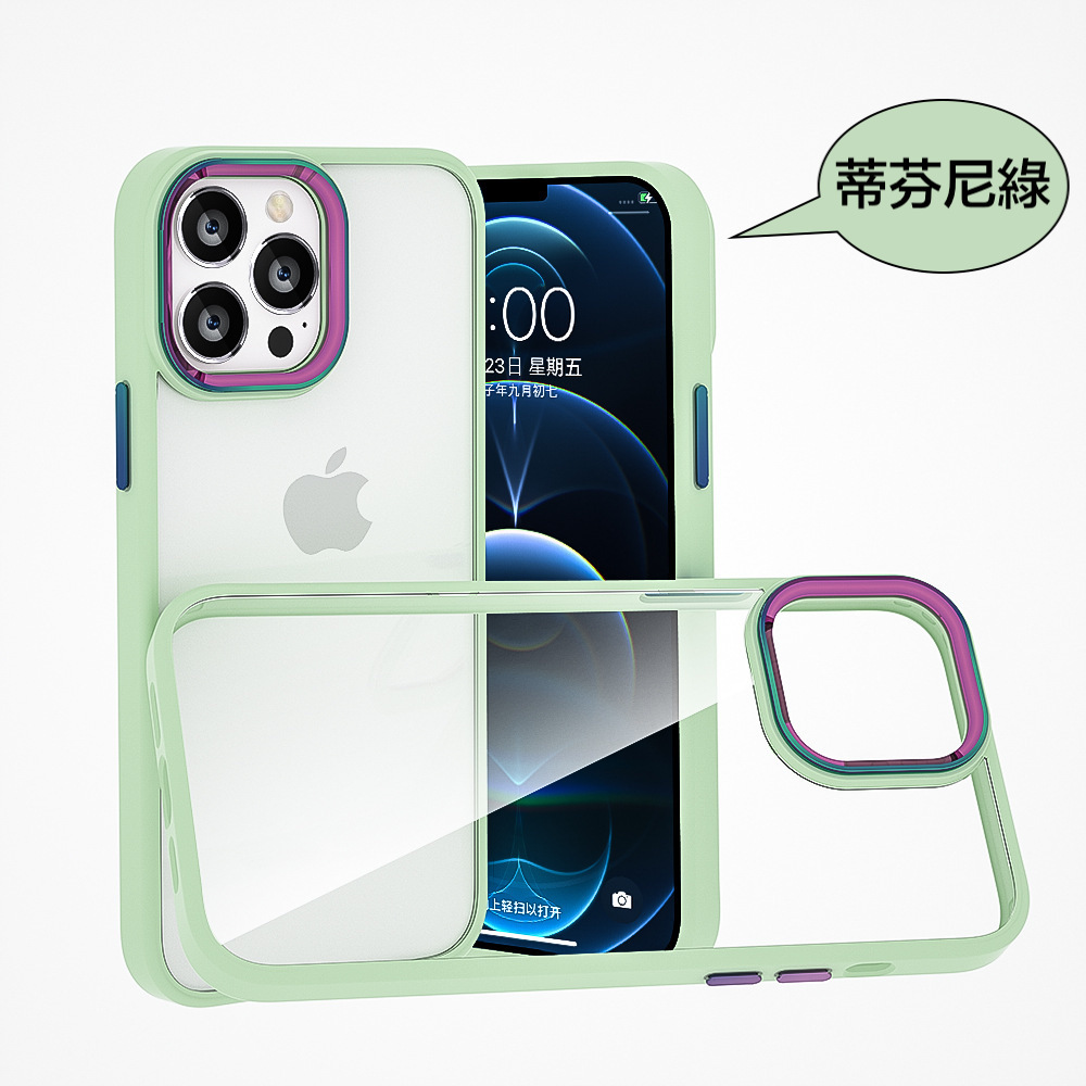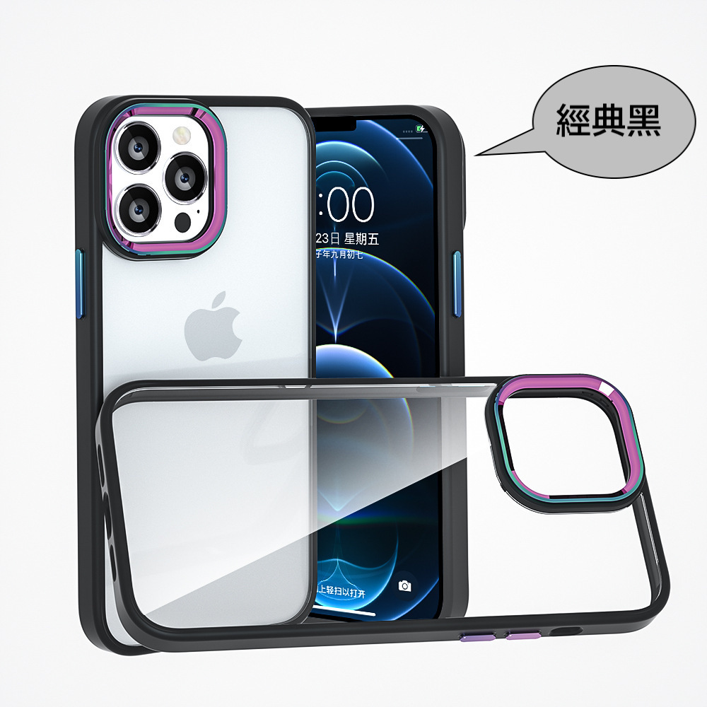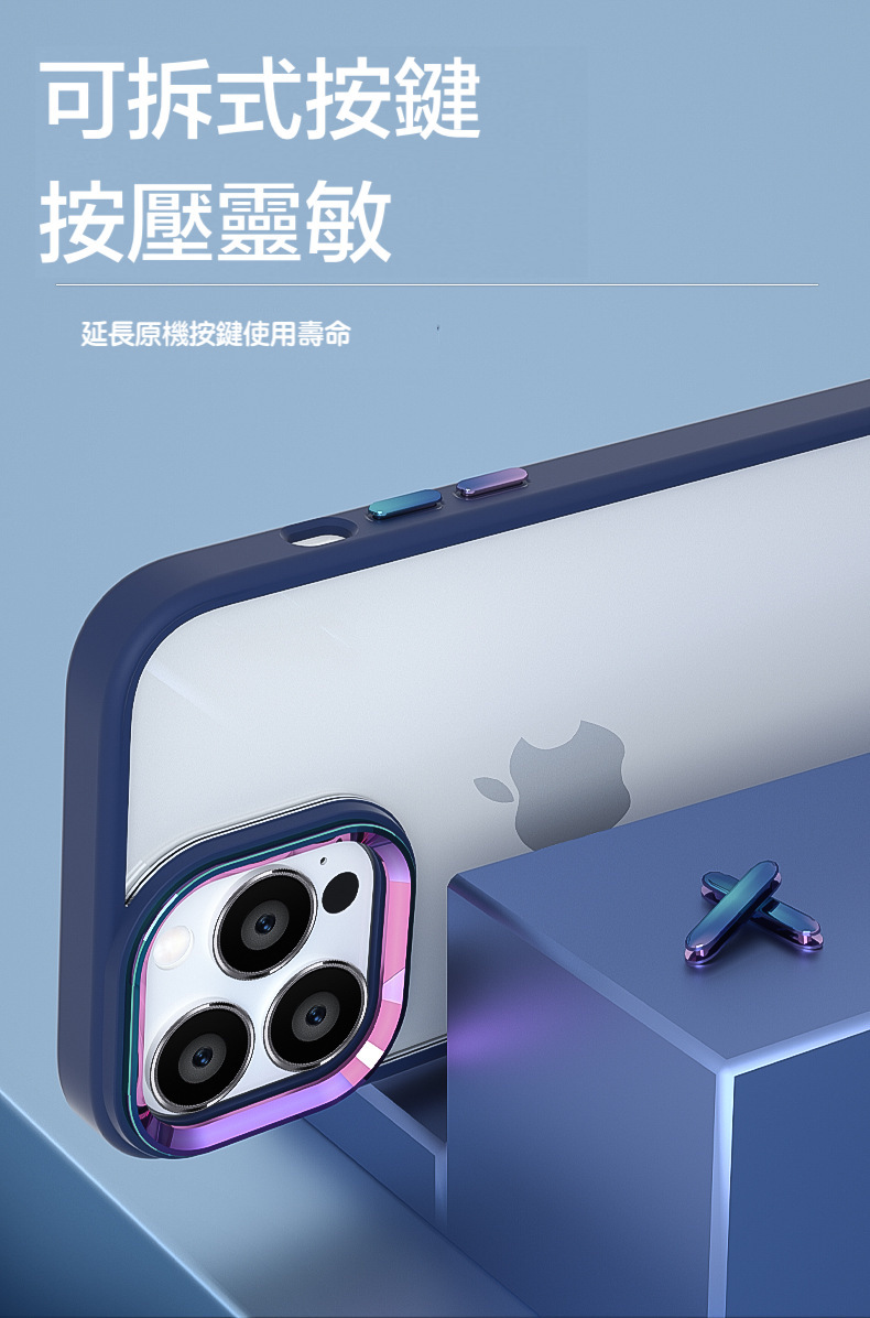 iPhone【鈦金金屬鏡頭防摔殼 】磨砂軟邊TPU+高透亮PC背板一體成型【科技鈦色鏡頭+可換式按鍵】