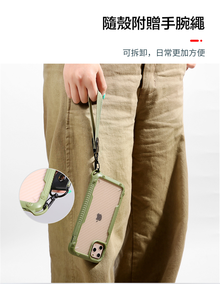超過3m摔落高度測試,符合軍規防摔等級的保護殼,右下方新增多功能掛鉤,可以使用在掛繩、手機吊飾、背帶、登山掛鉤、、、增加殼體使用性