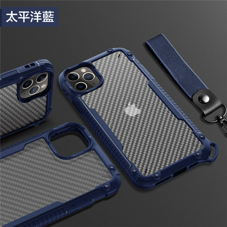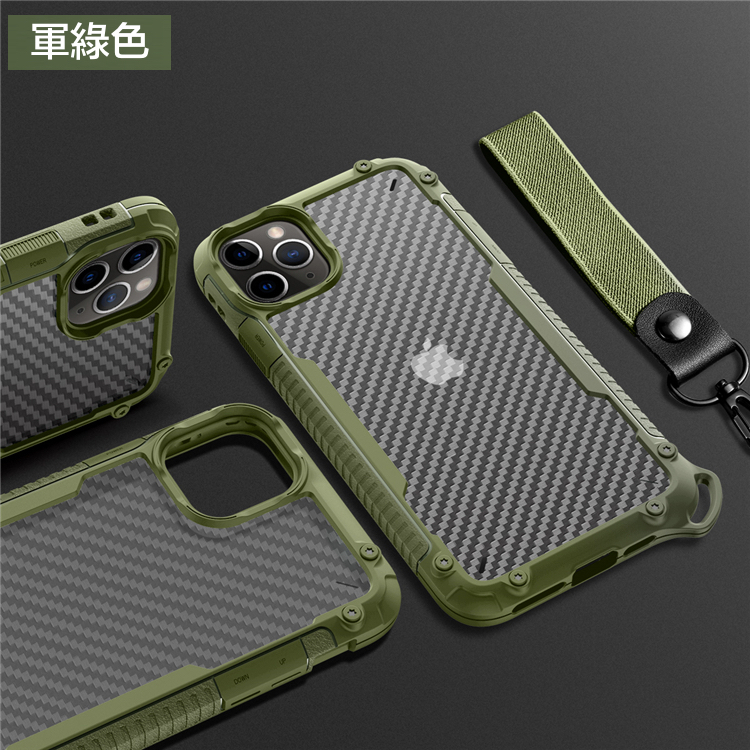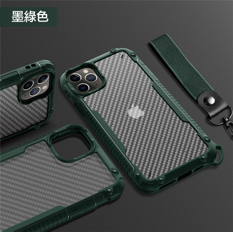 iPhone二合一碳纖紋掛繩防摔殼 【TPU+PC軍規防摔雙材質】附贈同色掛繩