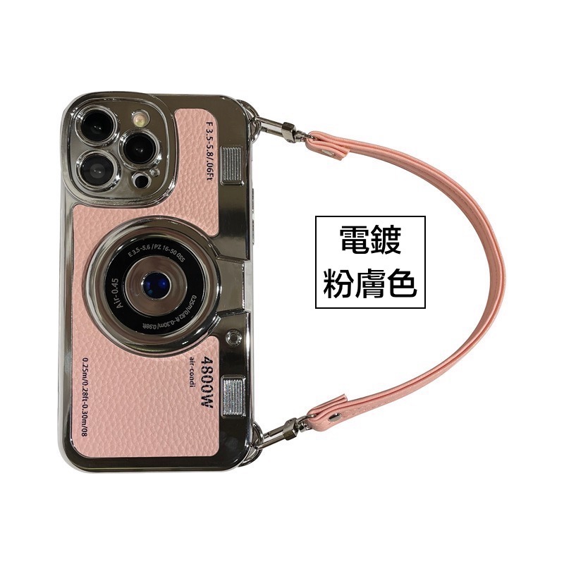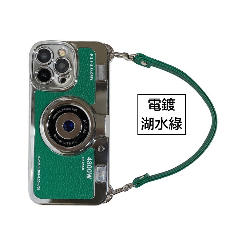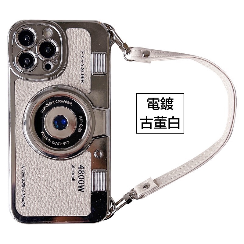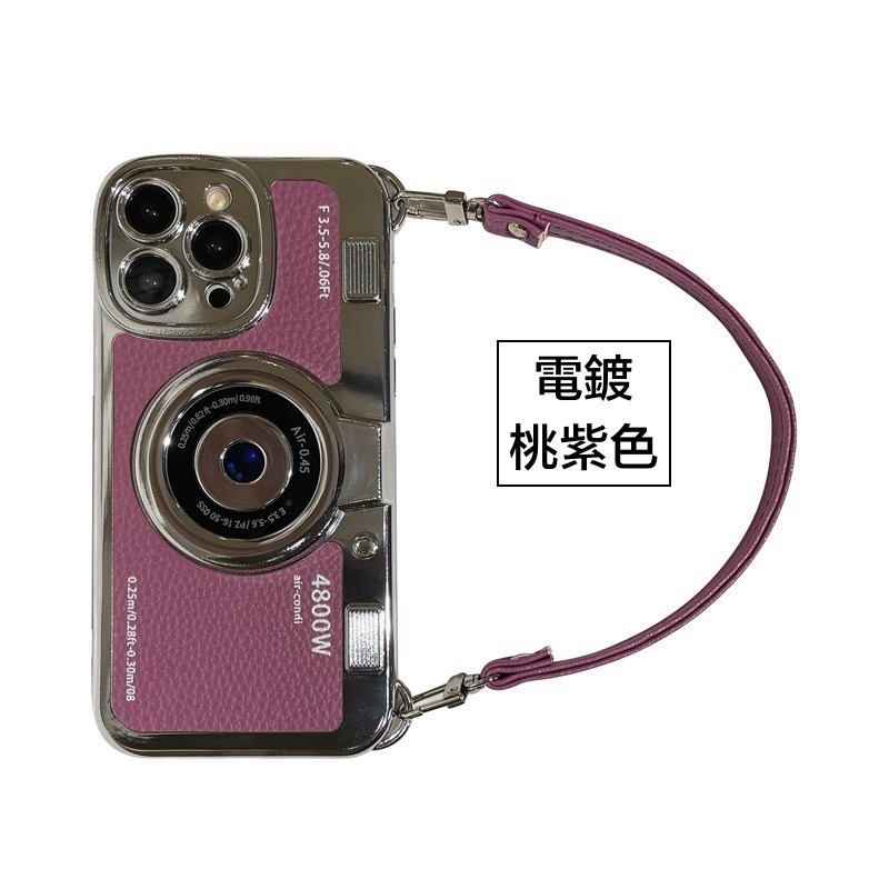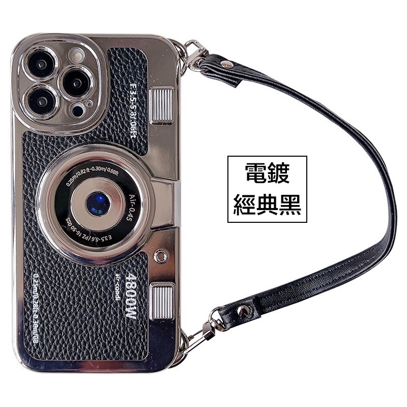 充滿創意的相機殼,TPU軟殼電鍍設計,搭配皮革底色,讓你的手機更有趣。附贈一條手掛繩