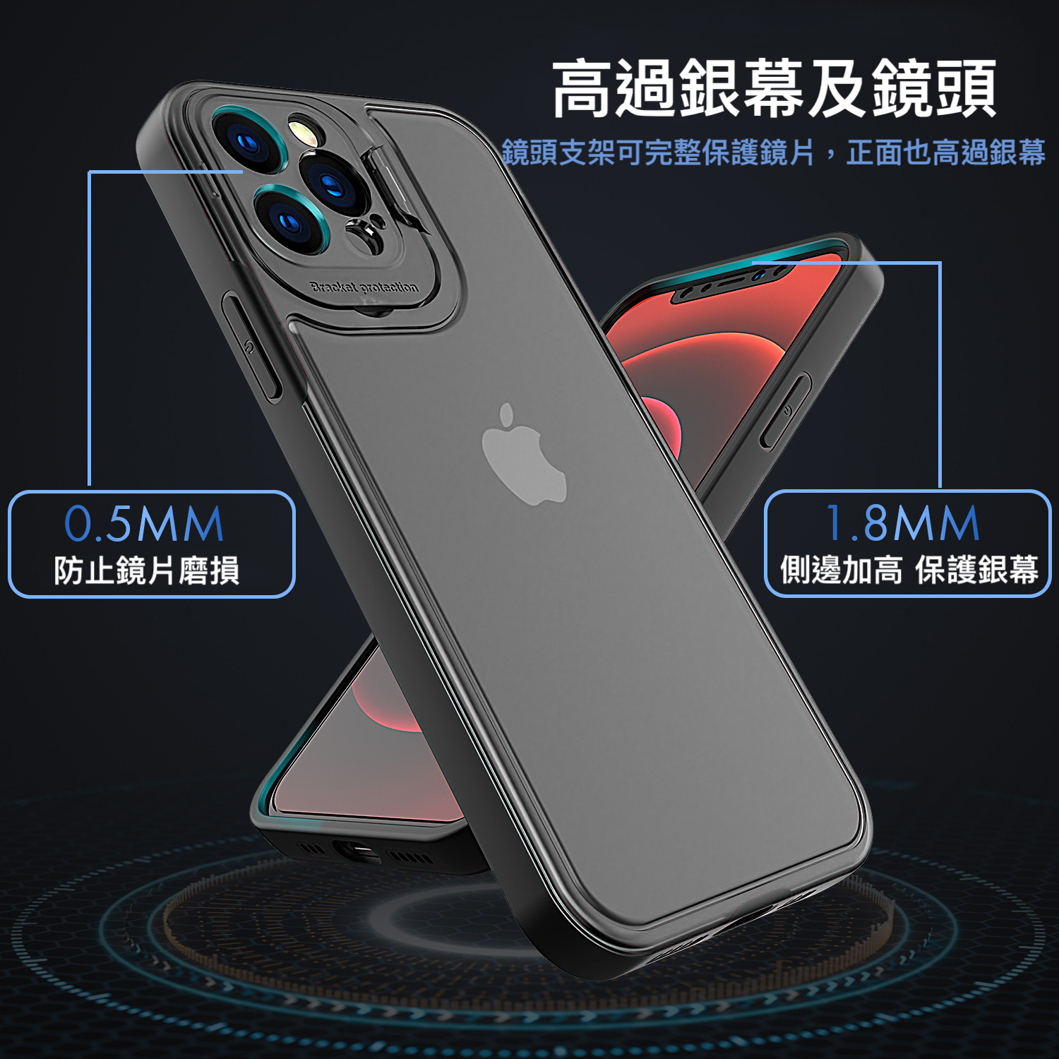 雙材質抗摔結構,正反側邊邊緣增高設計。