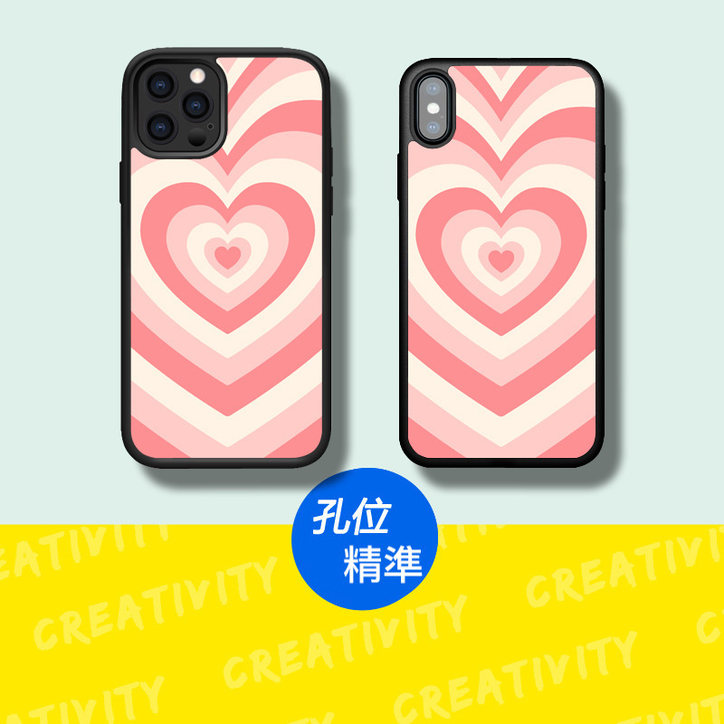 iPhone系列【粉紅愛心】塗鴉彩繪系列防摔殼,黑邊TPU+鋁片二合一殼體 防摔、防塵、防刮花