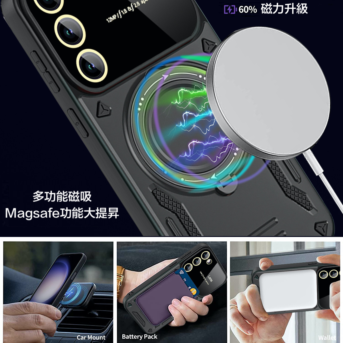 這款手機保護殼的最大特點就是360°旋轉磁吸支架,能夠根據使用者的需要隨意調整支架角度,讓您輕鬆享受影片、直播、視訊等多種娛樂體驗。而磁吸支架的固定方式不僅能夠有效避免手機滑落,還可以快速且穩固地固定在支架上,讓您不必擔心手機跌落而受損。