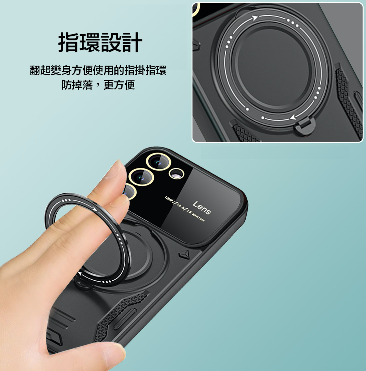 鏡頭圈增加0.5mm高度設計,防止刮傷鏡頭