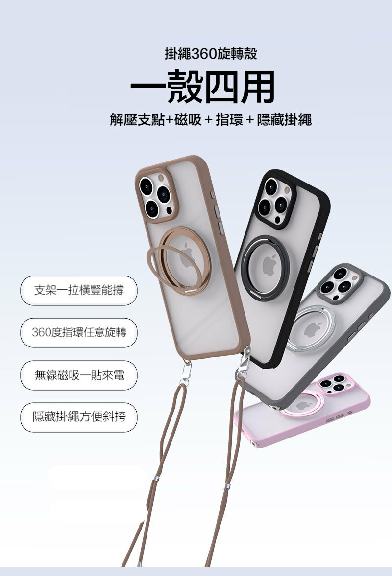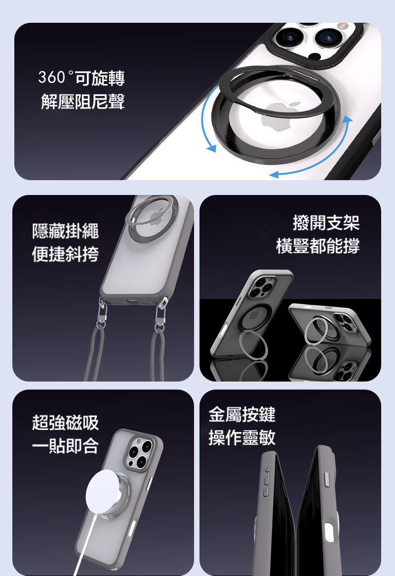 【VP吸血鬼】多功能四合一殼 隱形掛繩孔+360旋轉支架+強力磁吸+高阻尼支架 適用於 iPhone 16系列15系列14系列