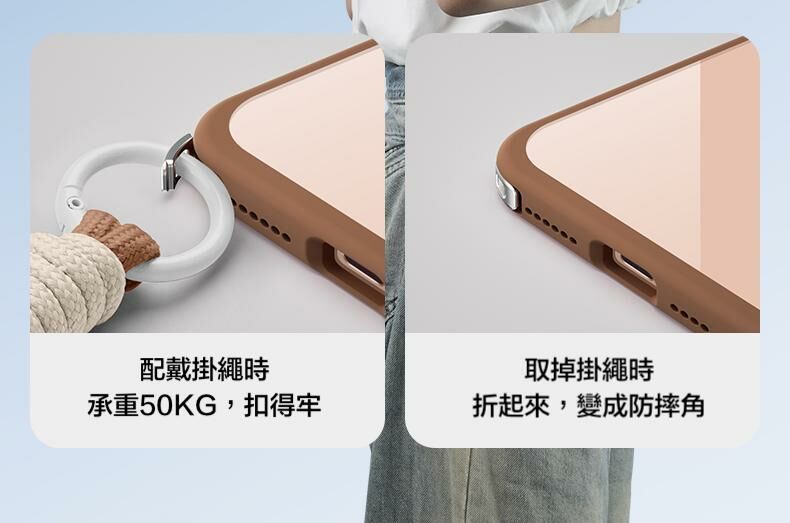 -四功能合一,鋁合金隱形邊角掛繩,翻開可掛,合上成為防摔邊角