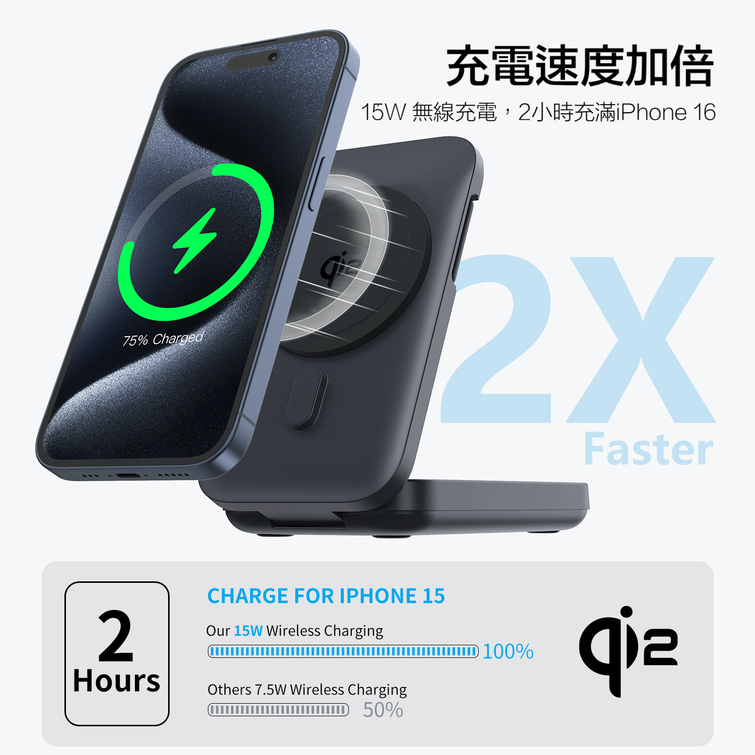 Qi2 是無線充電聯盟(WPC)最新推出的無線充電標準,基於「磁功率分佈圖(Magnetic Power Profile, MPP)」協議,並與 Apple 合作研發。這項技術融合了類似 MagSafe 的磁吸設計,內建磁鐵使充電設備與手機對位更加精準,支援最高 15W 的無線快充。 需要特別注意的是,若要啟用 Qi2 的 15W 快充功能,充電設備與手機都必須支援相應的協議。iPhone 需使用支援「磁功率分佈圖(MPP)」協議的充電設備,才能達到 15W 充電速率;而 Android 設備則需支援「延伸功率分佈圖(EPP)」協議。若充電設備或手機未支援對應的協議,將無法發揮 Qi2 的最佳效能,建議選購時務必確認設備規格。 |