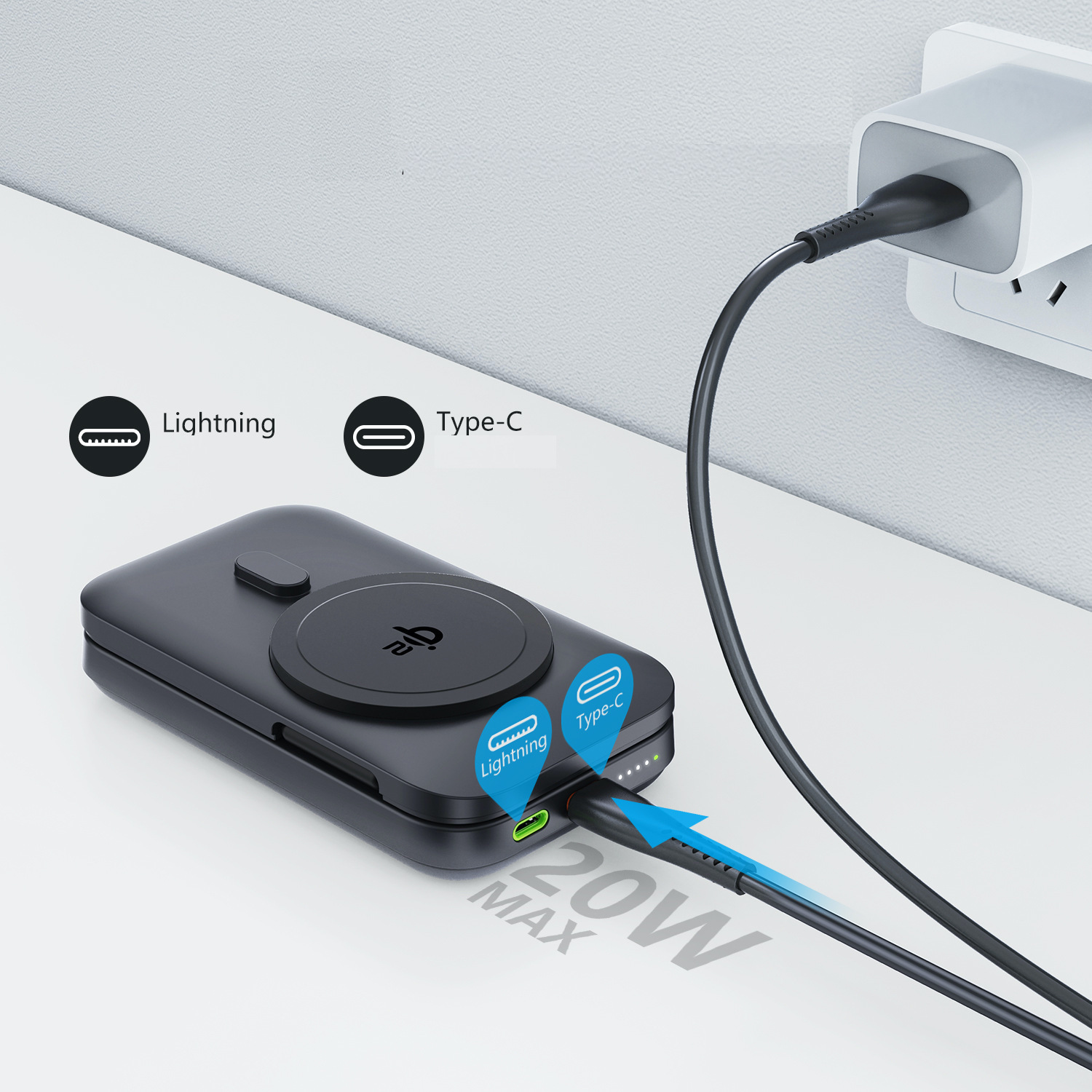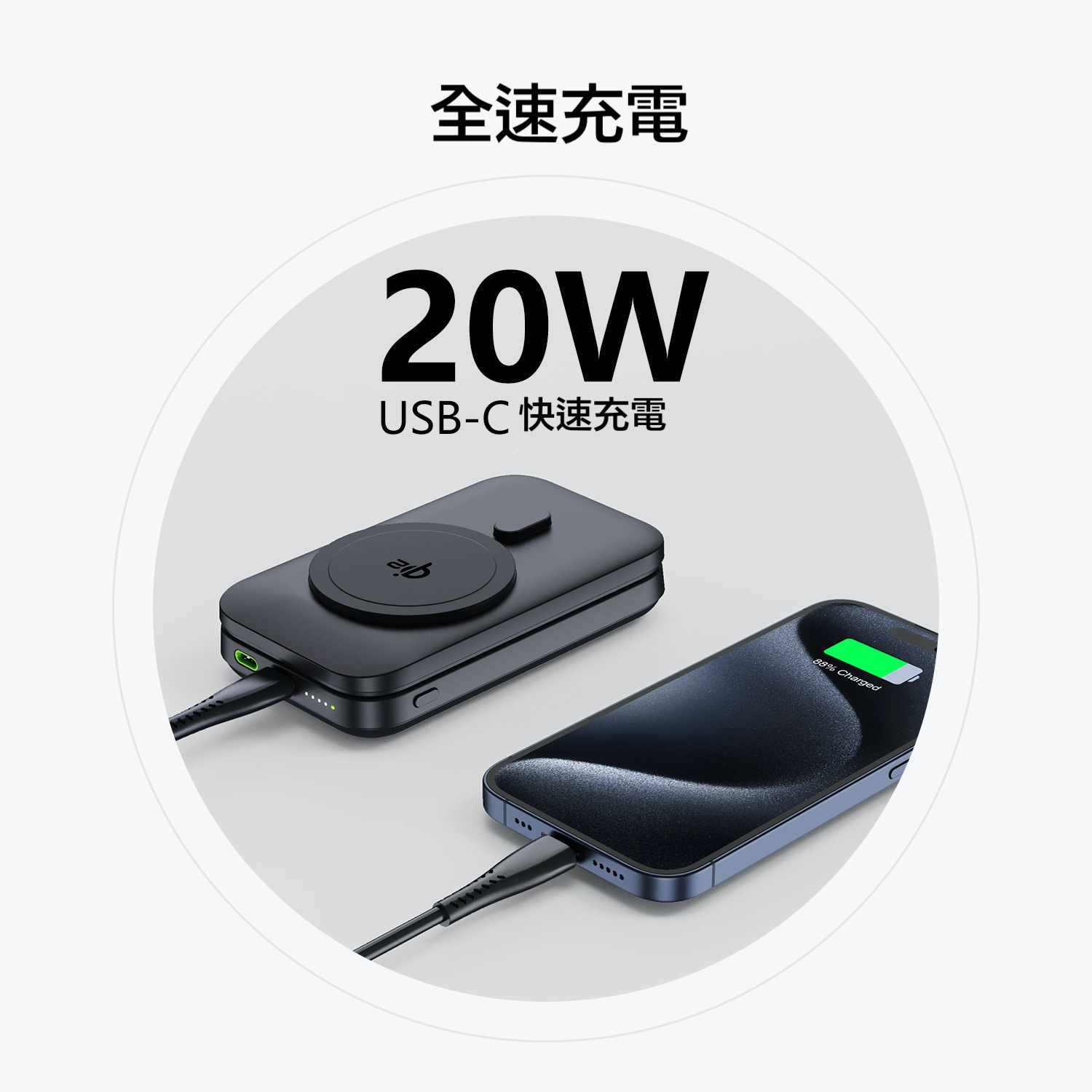 🛑 有線輸入和輸出20W。