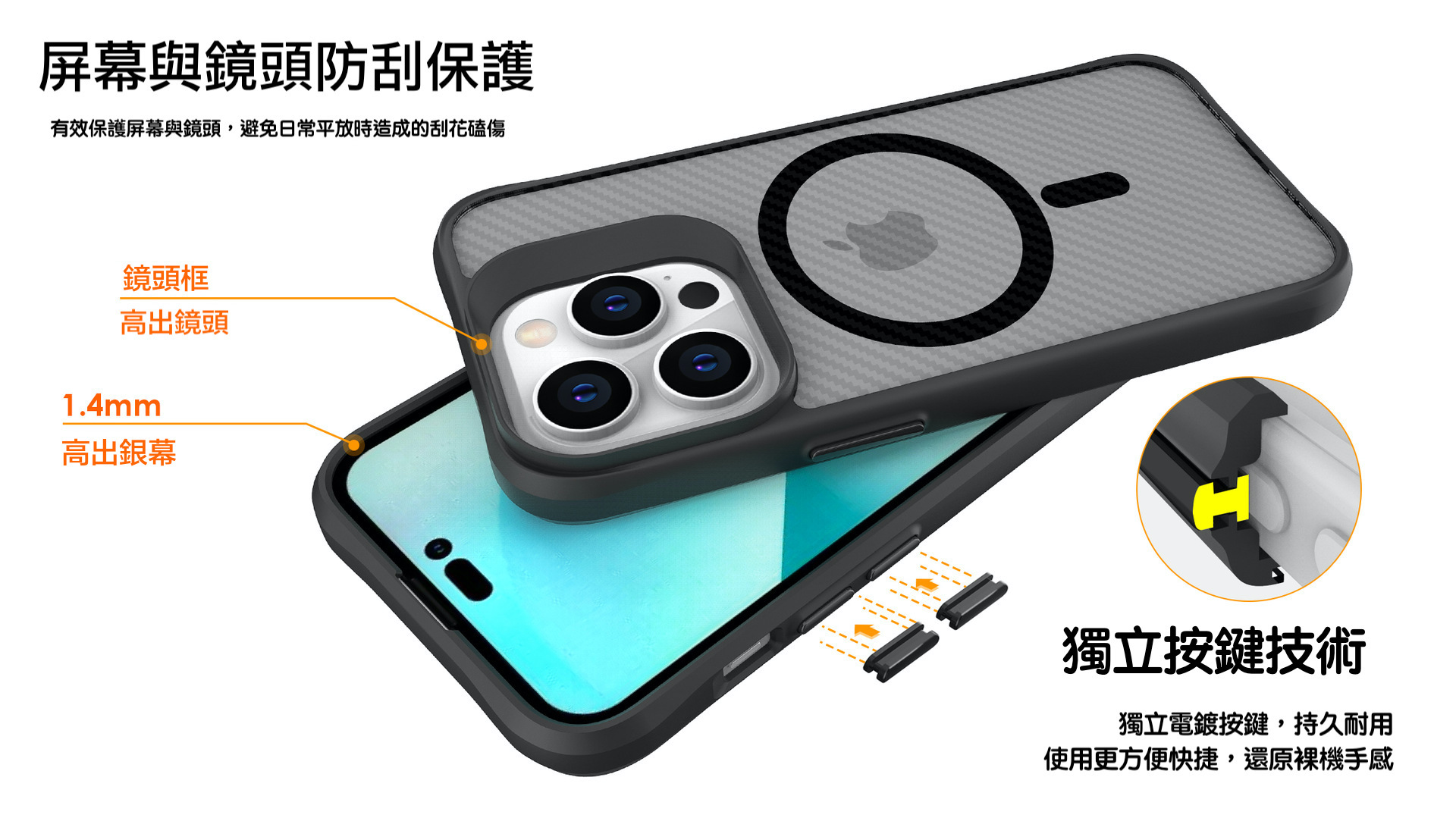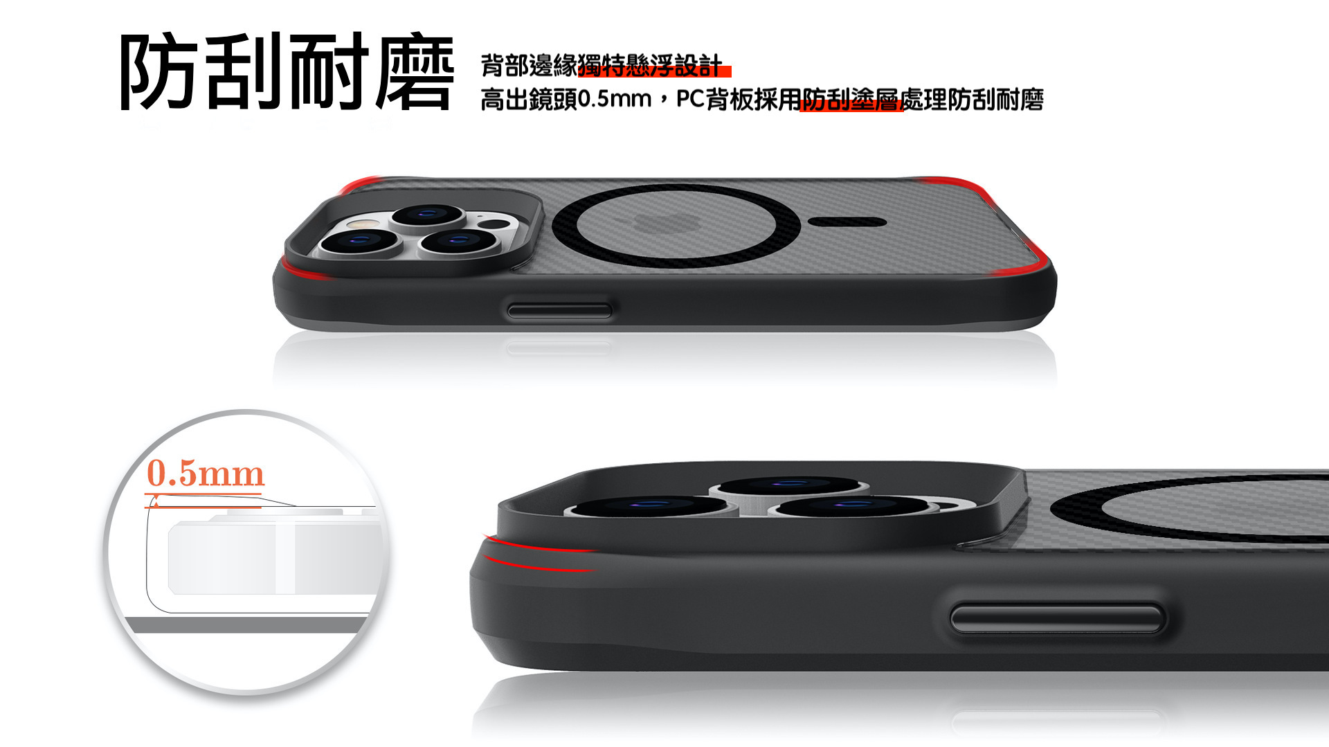 PC+PC雙料保護,正反側邊邊緣增高設計。