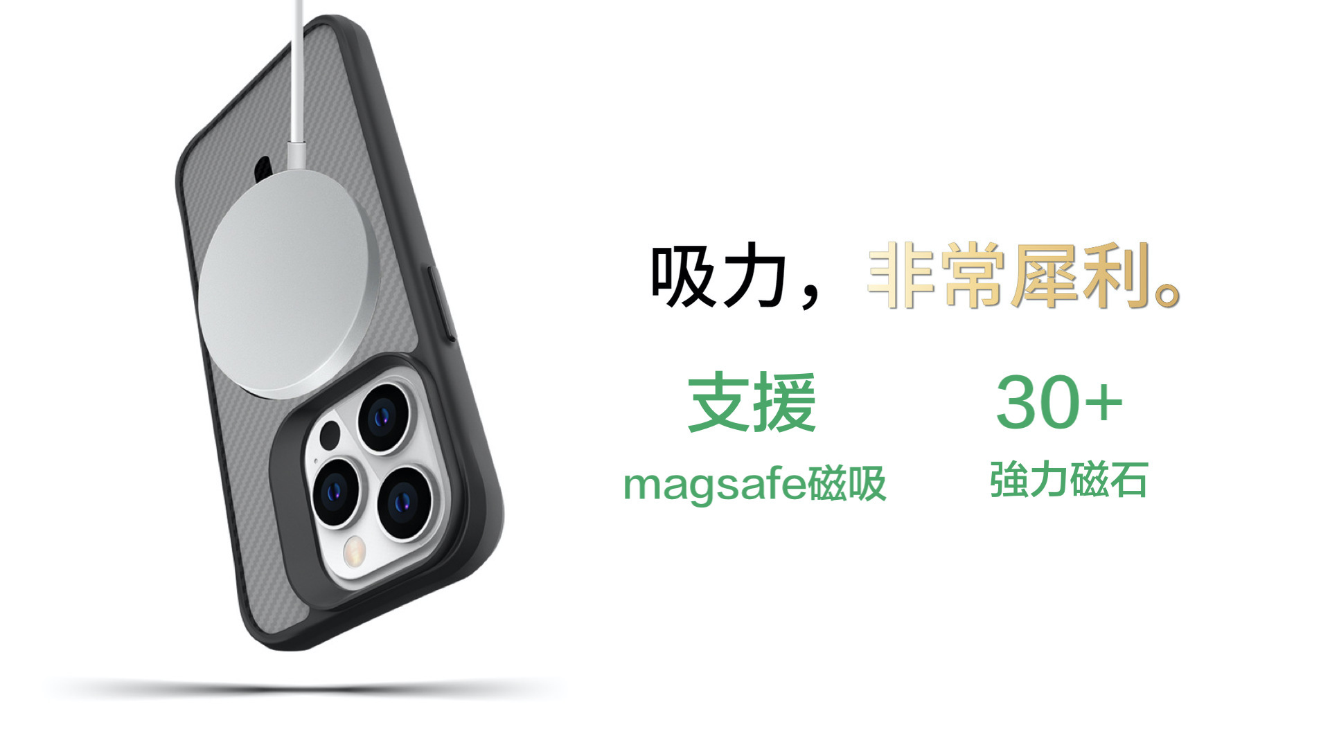 內建30顆強力磁石,Magsafe磁吸圈吸附力超強