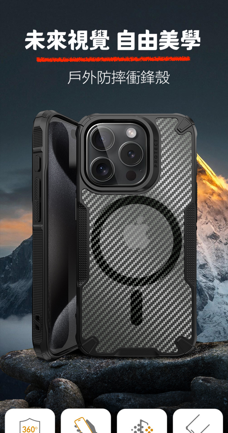 【碳纖衝鋒防摔殼】iPhone 15/14/13/12系列/三星S23系列 極致保護,潮流防摔手機殼!碳纖美感、四角防摔、掛繩方便