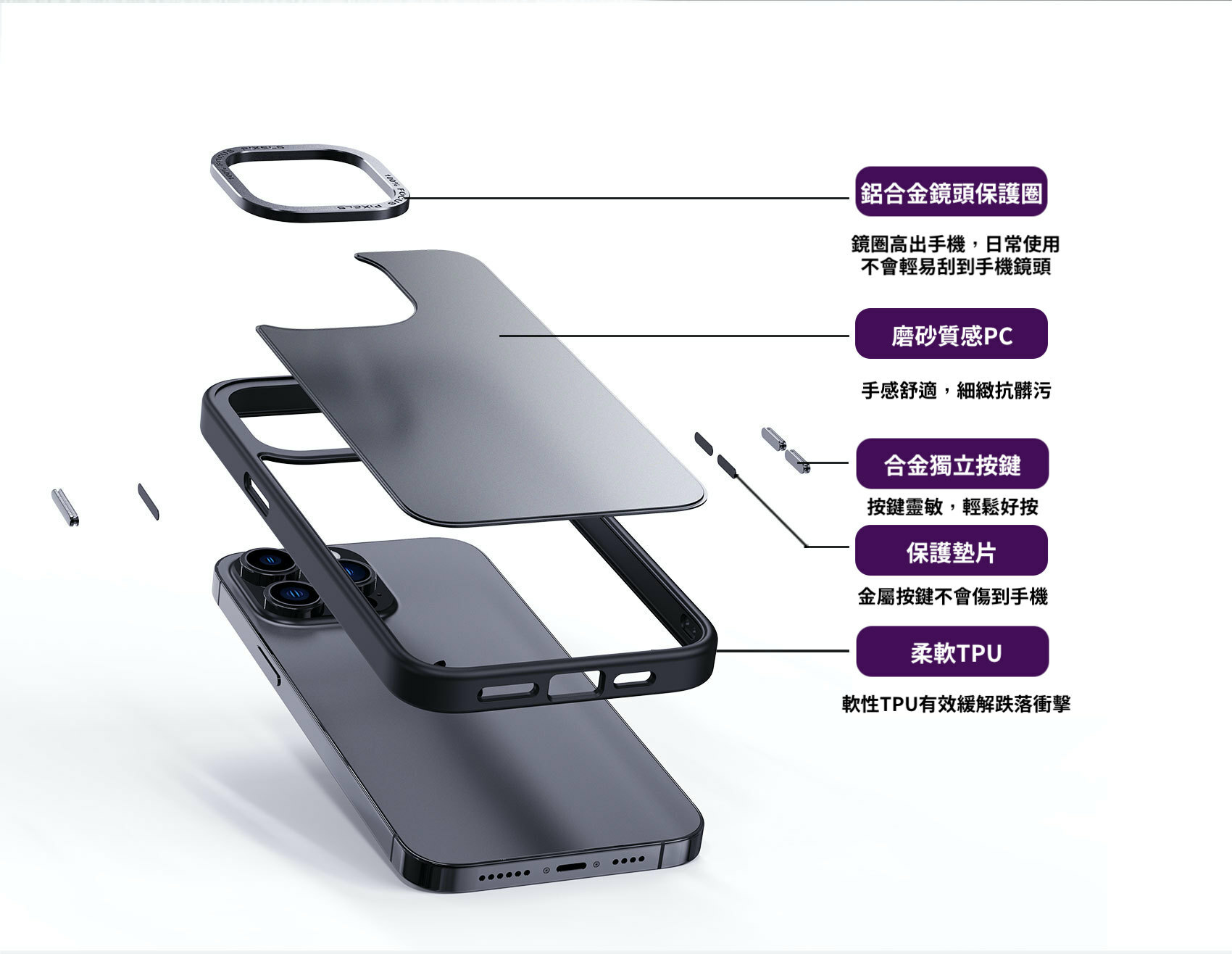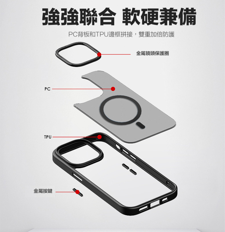 護殼材料 : 金屬+透明PC背板+磨砂TPU軟邊