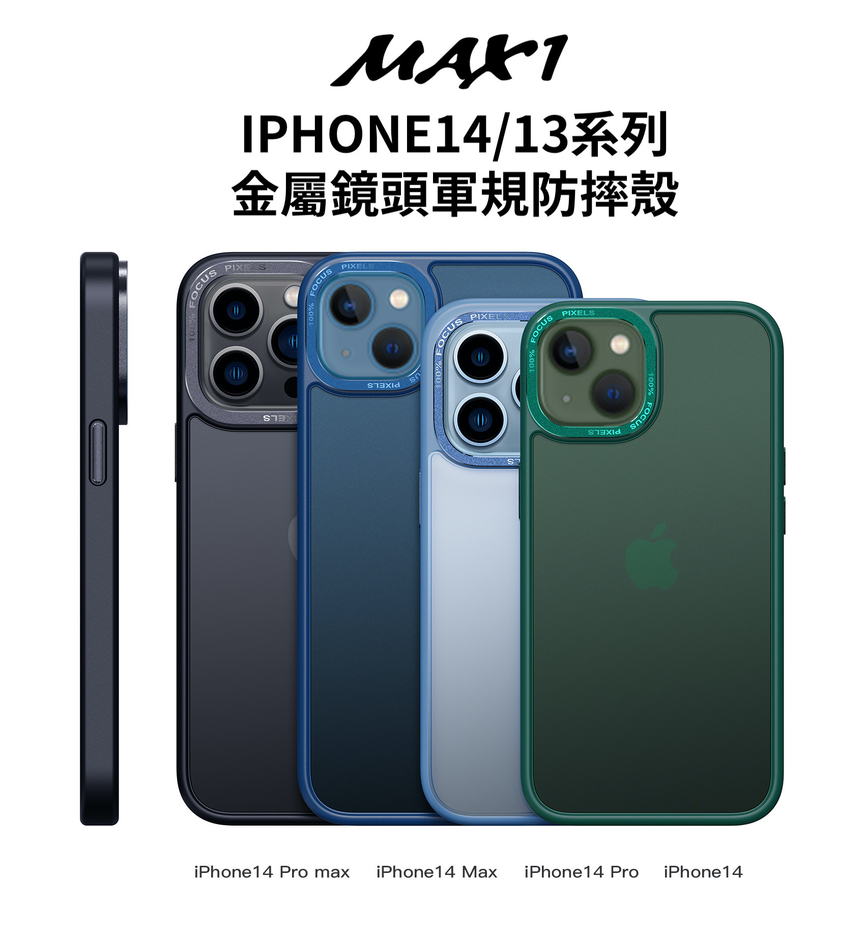 VP吸血鬼MAX1防摔殼 iPhone 14系列/13系列【金屬鏡框軍規防摔殼 】磨砂軟邊TPU+磨砂背板