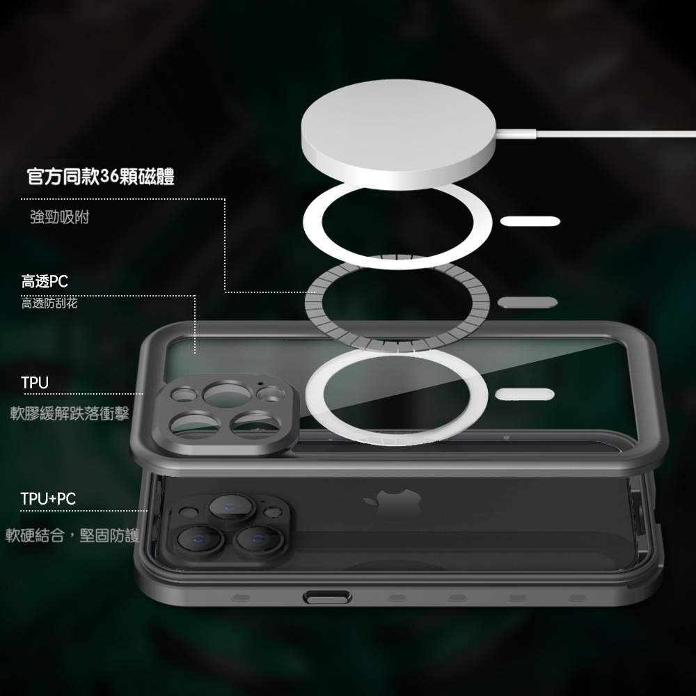 Vp吸血鬼【 magsafe磁吸防水盾】iPhone 13/13pro/13pro max/13mini 全新磁吸防水殼IP68 軍規防摔+深度3公尺潛水1小時