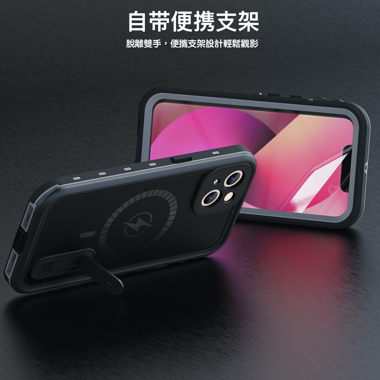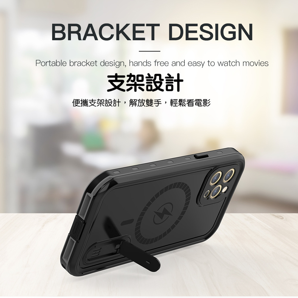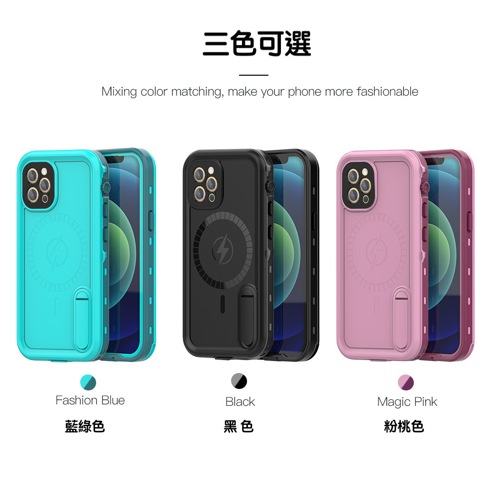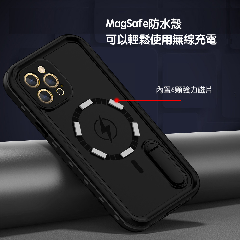 Vp吸血鬼【 X9 magsafe磁吸支架防水盾】iPhone 13系列/12系列 全新磁吸防水殼IP68 軍規防摔+深度3公尺潛水1小時