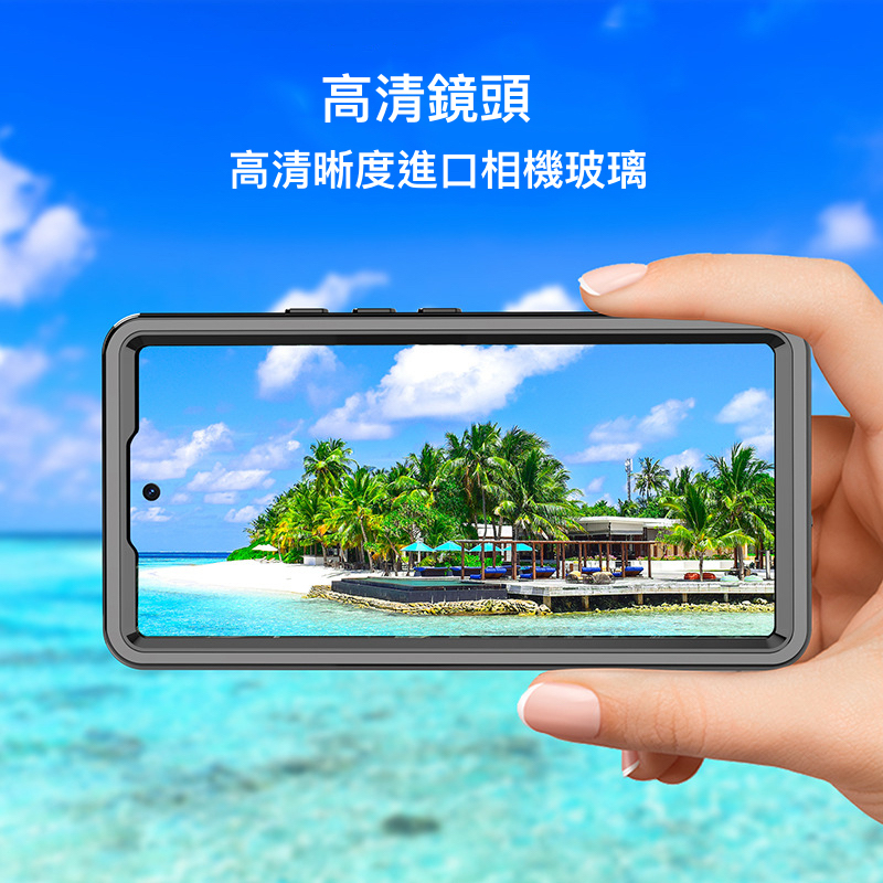夏天必備,極度防水 。此款商品屬於極度防水的全密合保護殼,結構緊密通過IP68測試實驗,不論是雨天,海邊玩水浮淺游泳,登山等等重量級的活動,通過密合式全包覆的手機殼可讓您的愛機通暢無阻。