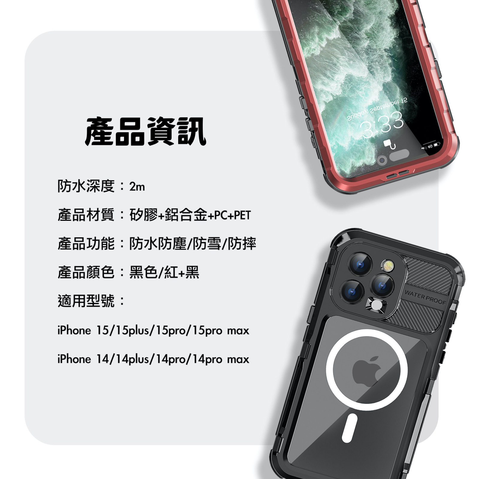 Vp吸血鬼【magsafe磁吸防水盾】iPhone 15系列14系列全新磁吸防水殼IP68 軍規防摔+深度3公尺潛水1小時
