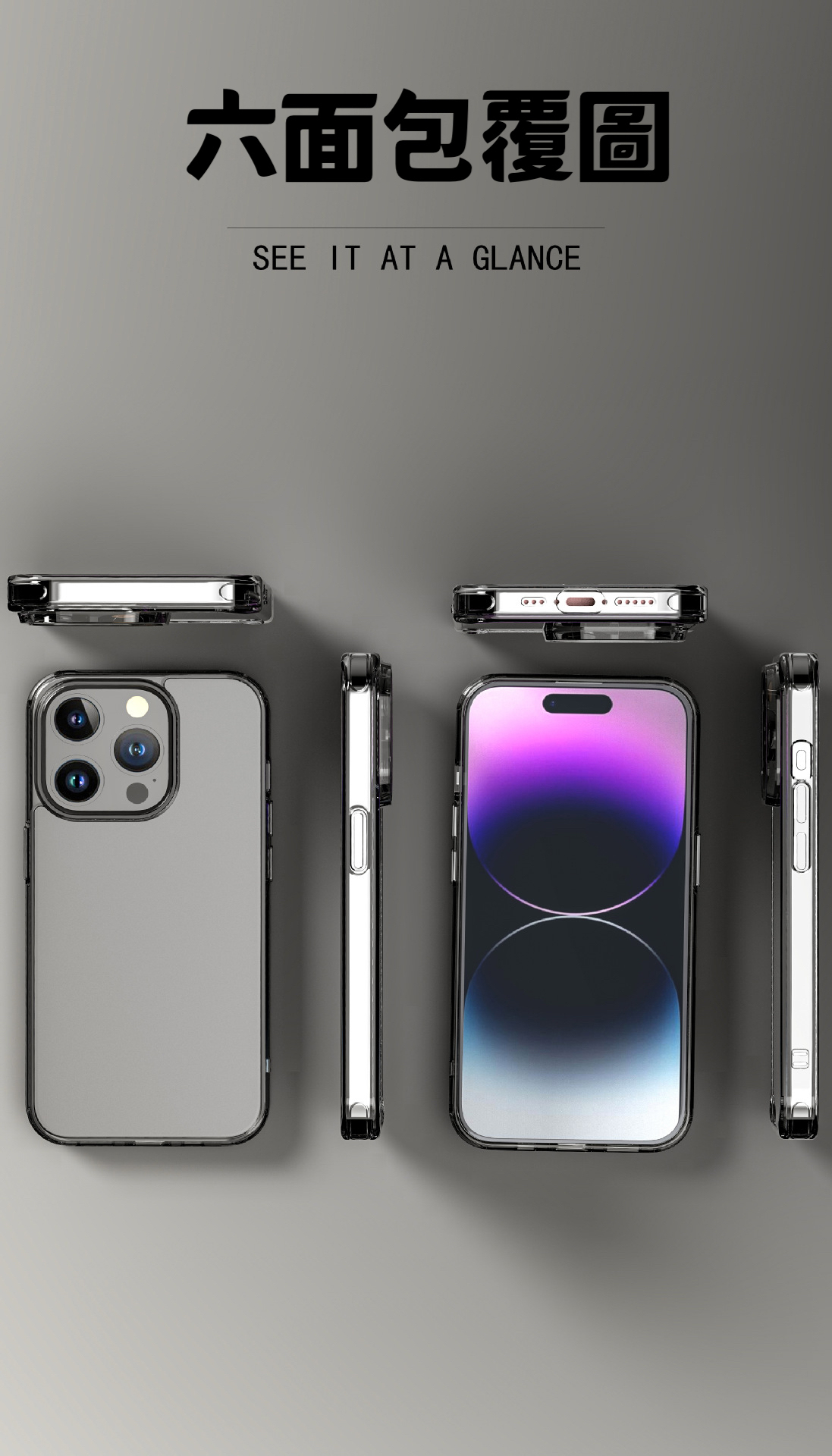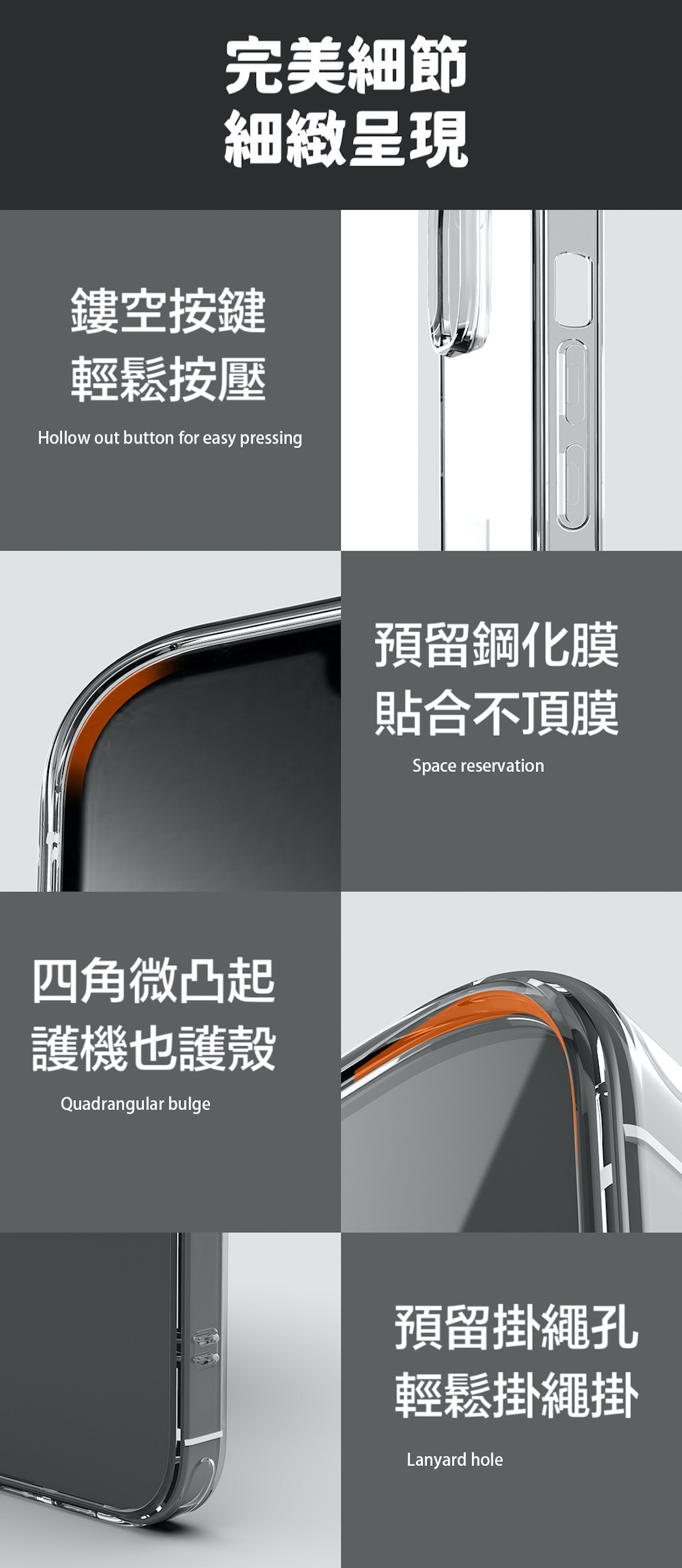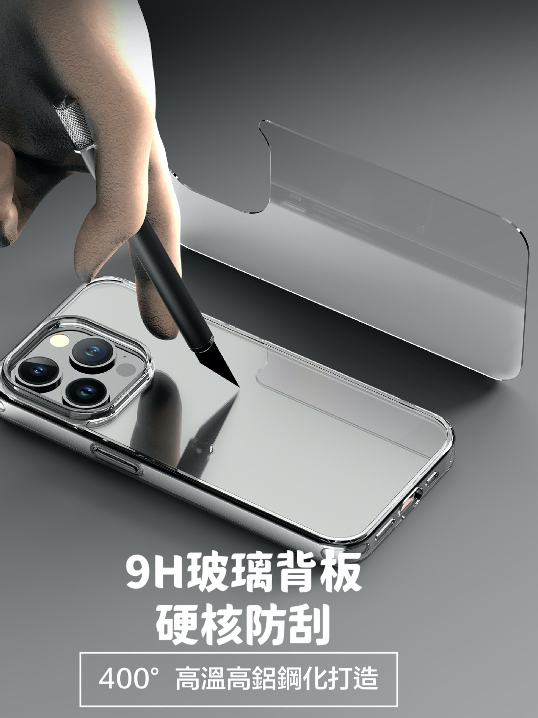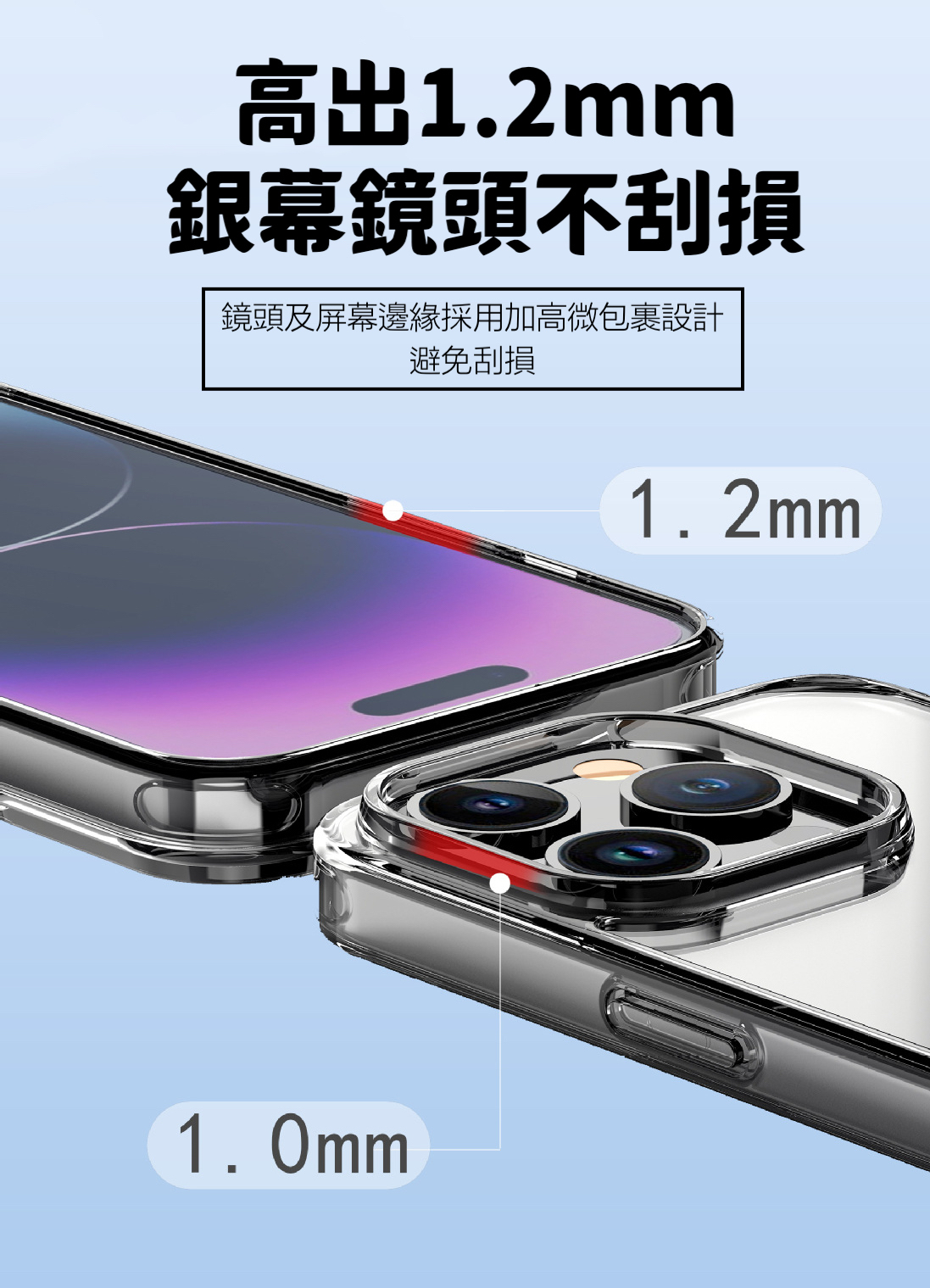 三材質抗摔結構,正反側邊邊緣增高設計。加強銀幕正面的保護效果。