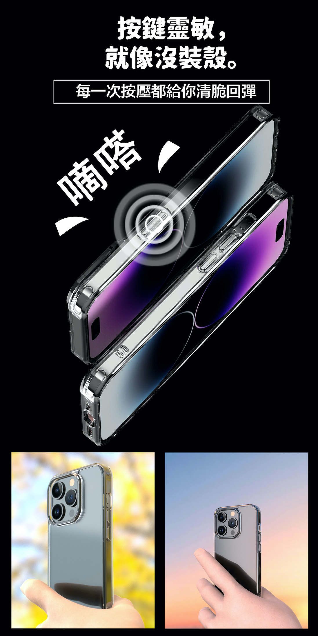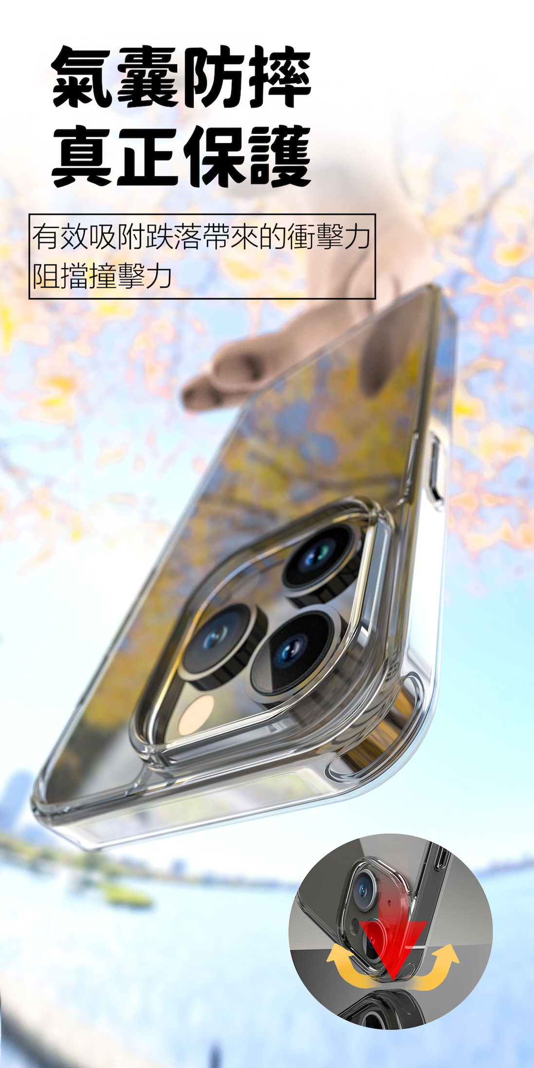 側邊彈性TPU,外加隱藏式氣囊設計,增加殼體抗衝擊吸震效果