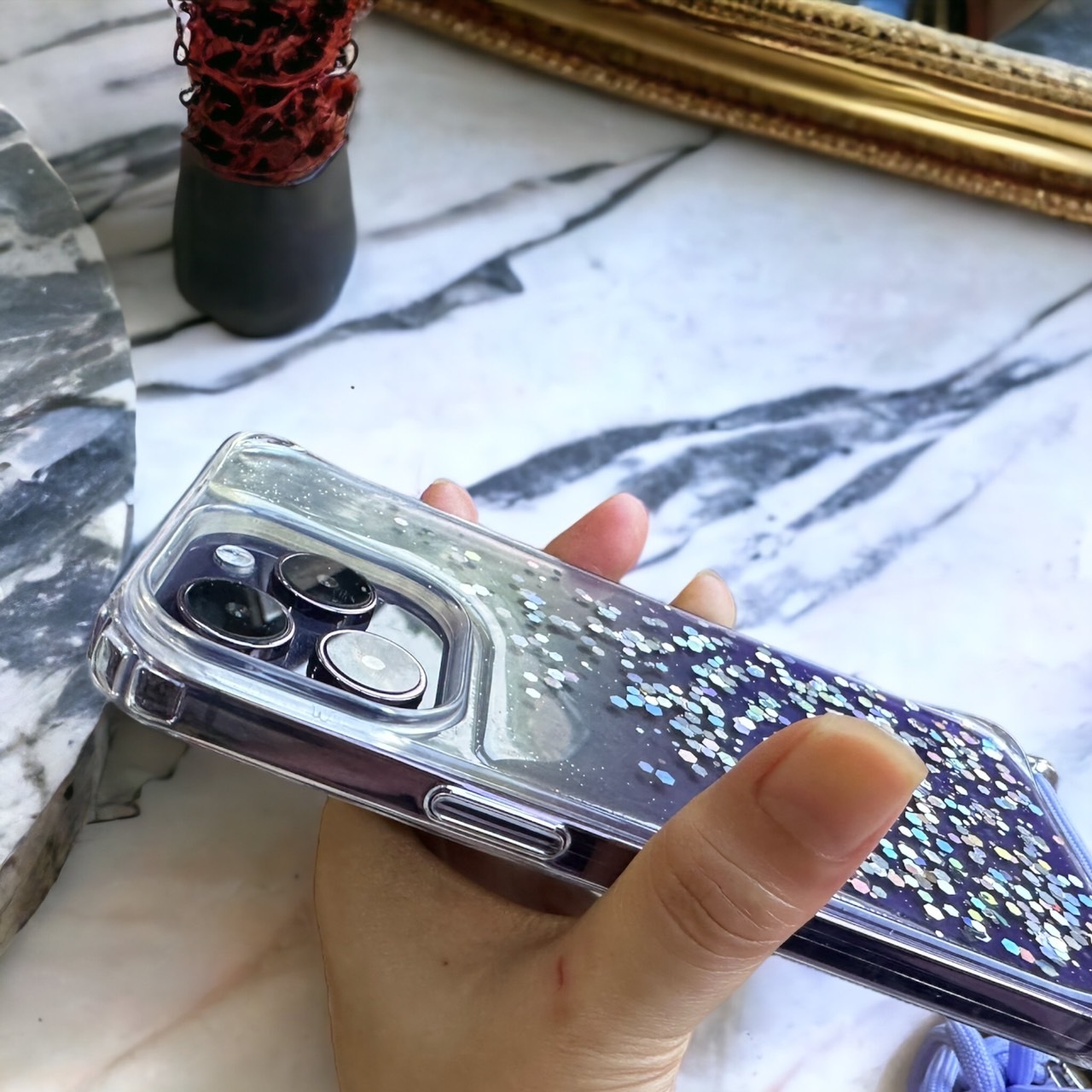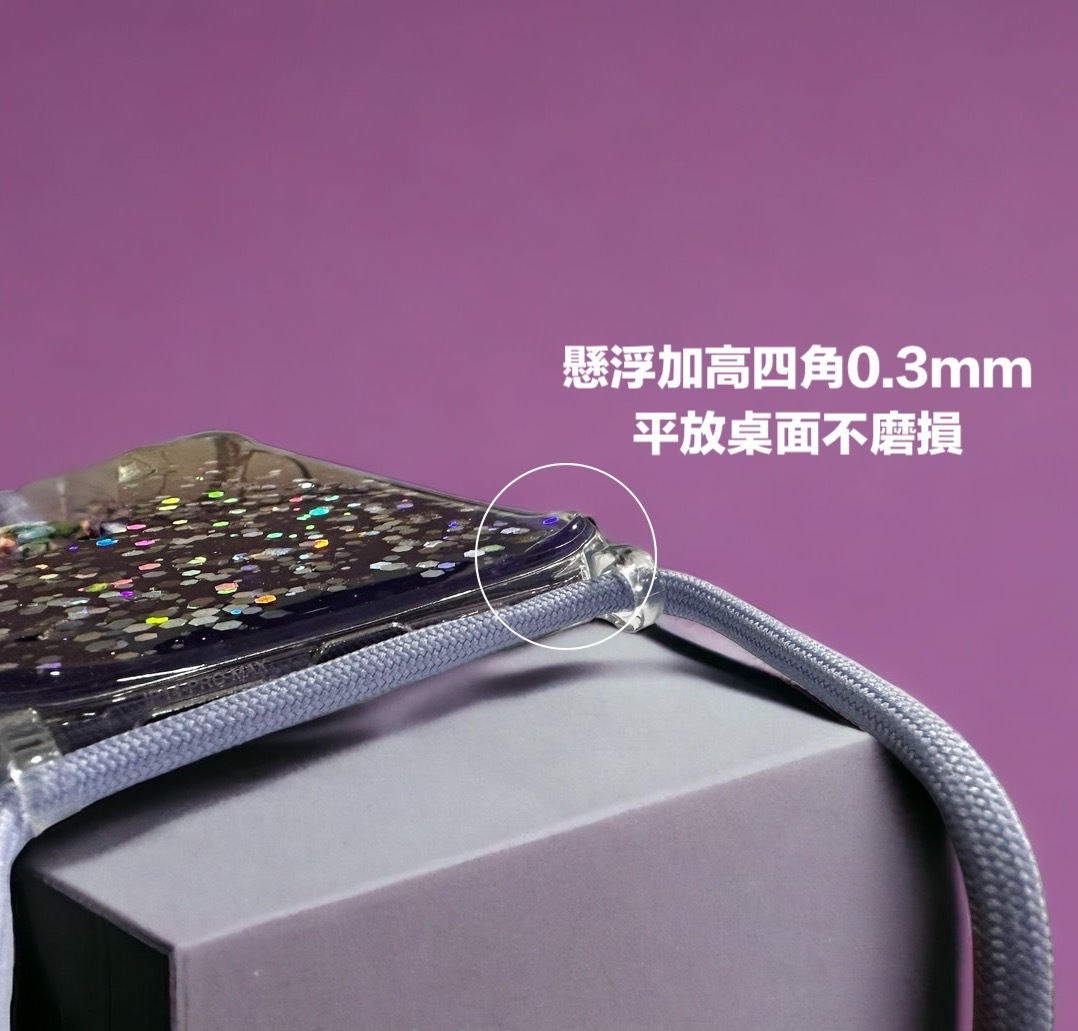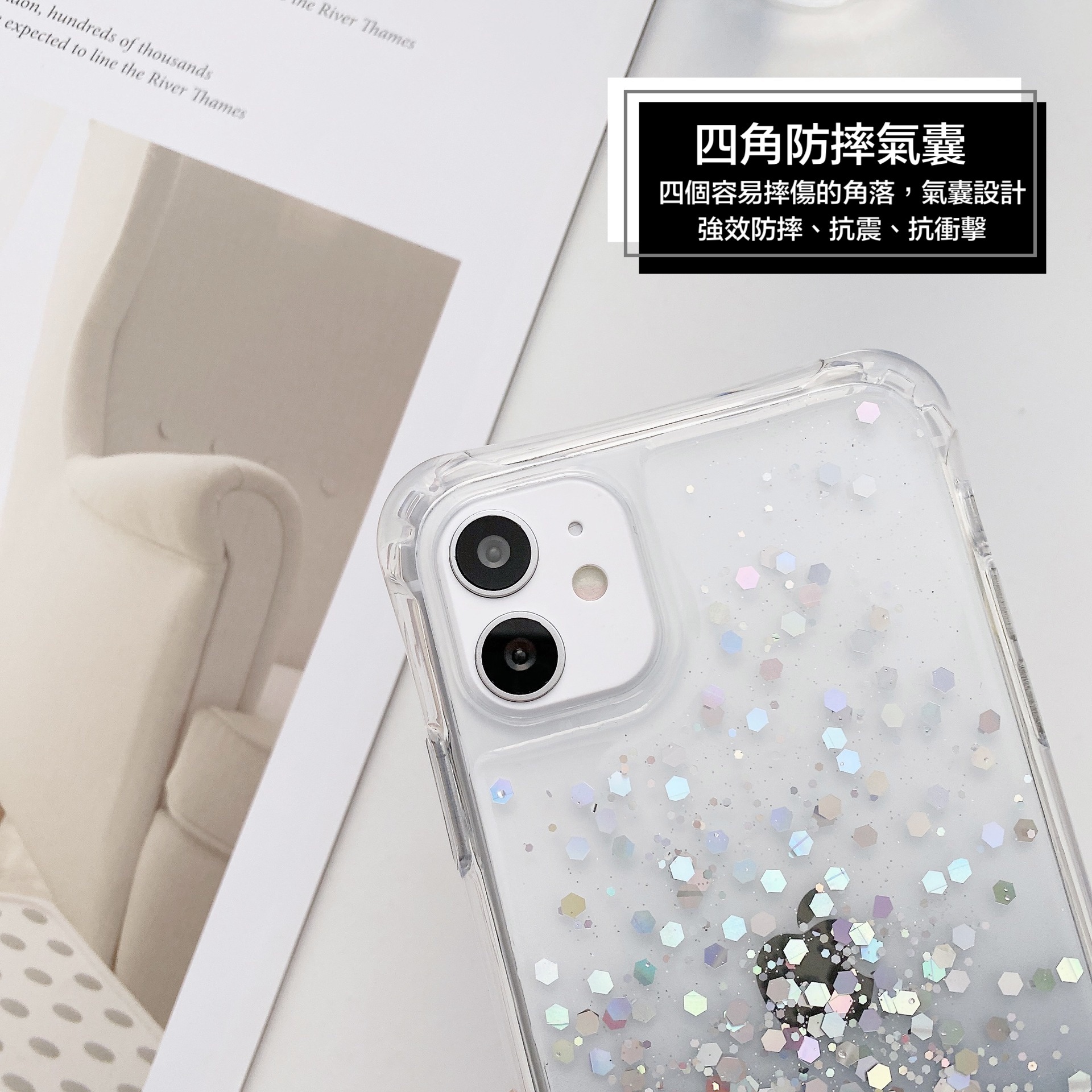 漸層透明殼體,背板增加閃亮亮片在覆蓋上滴膠,美感100分,更增加整體防摔性