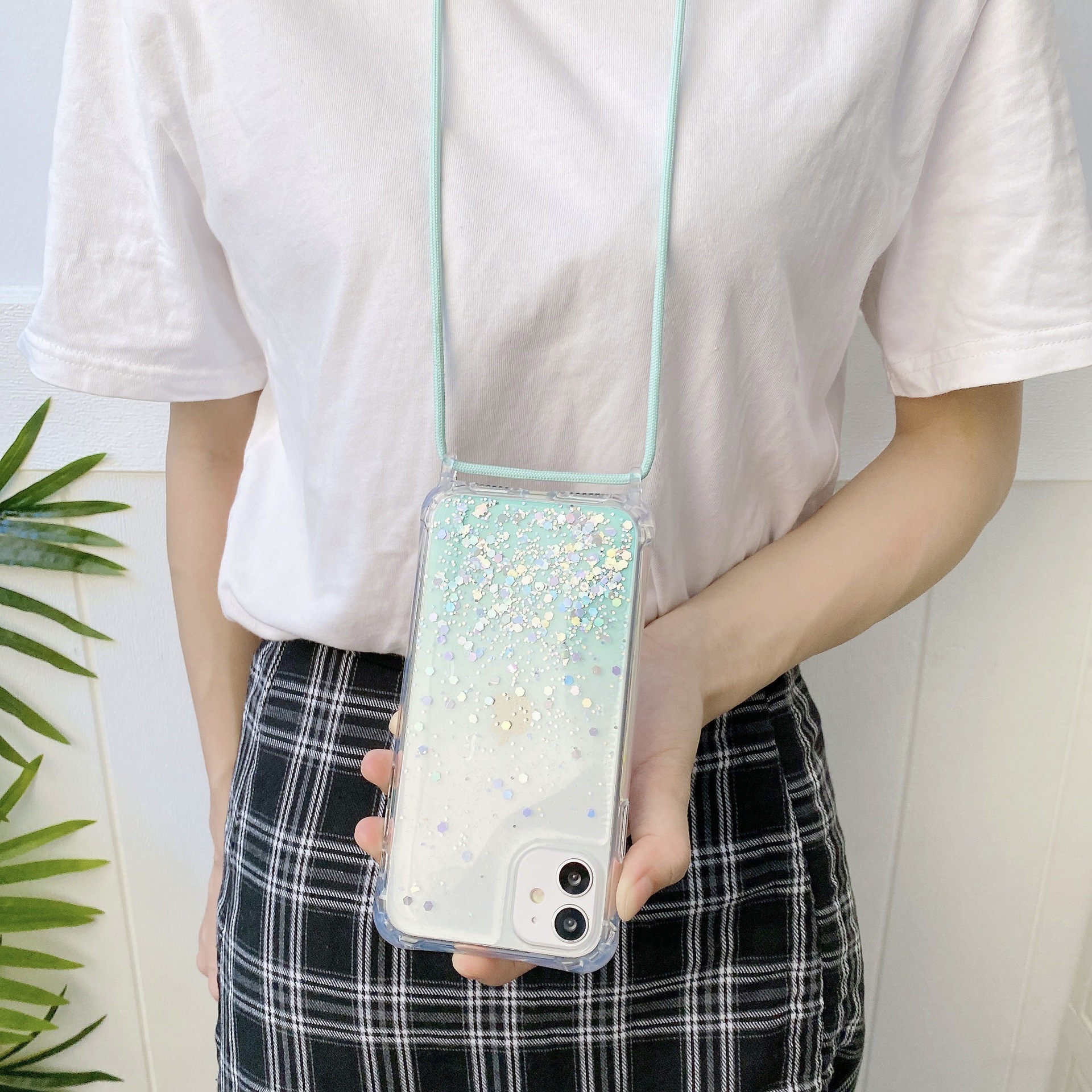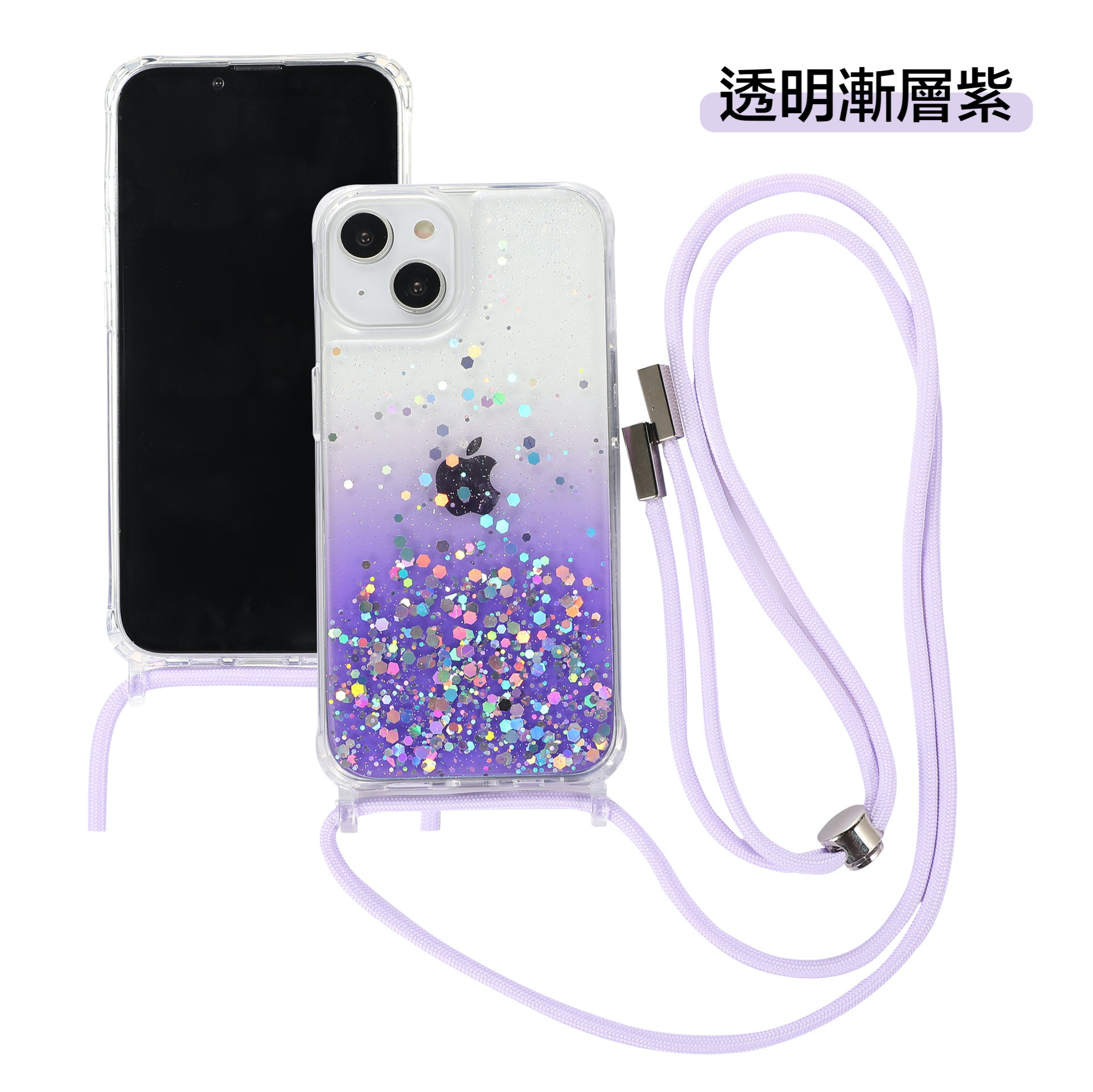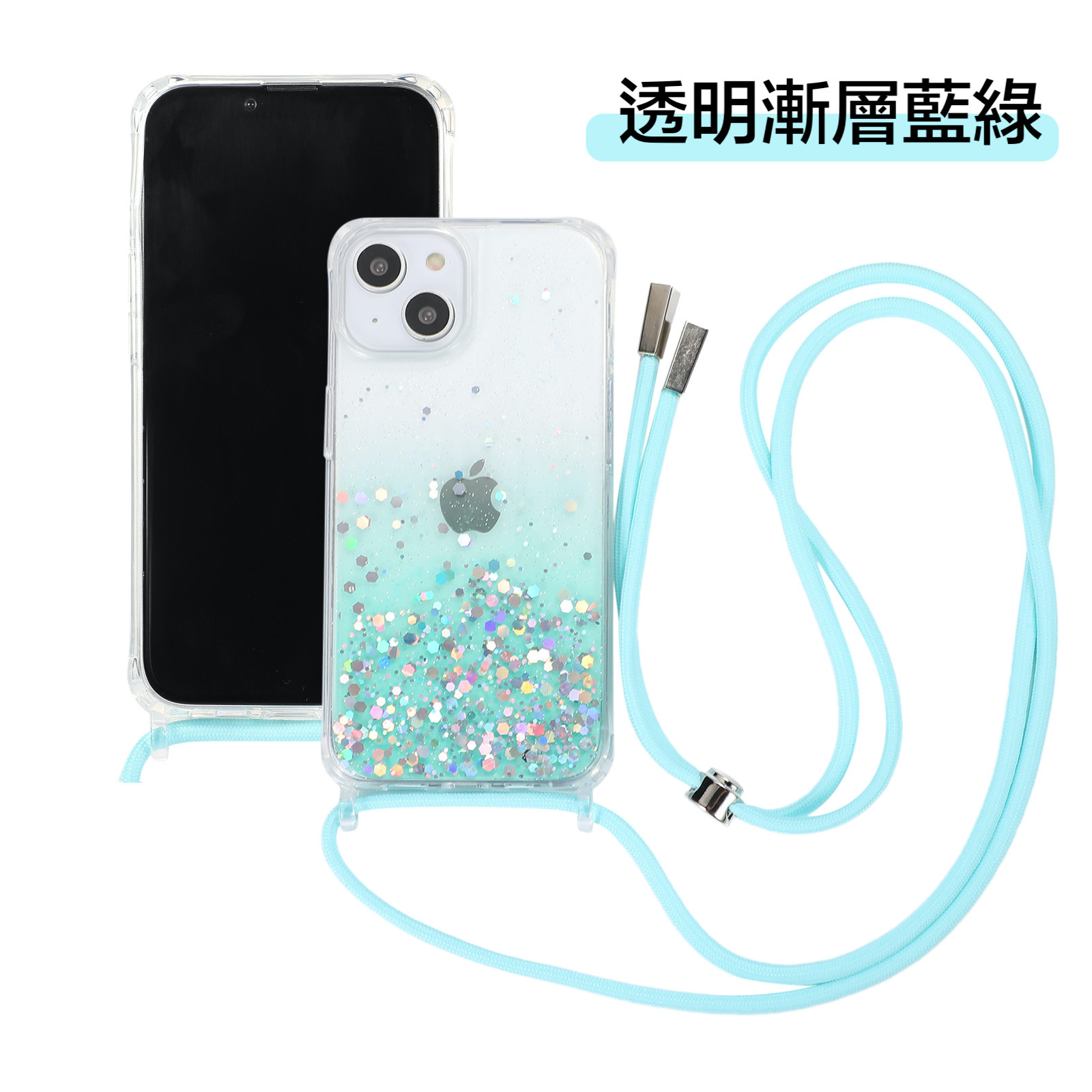 『超美推薦』掛繩漸層亮片手機殼 iPhone 14系列/13系列 / 12系列 / 11系列