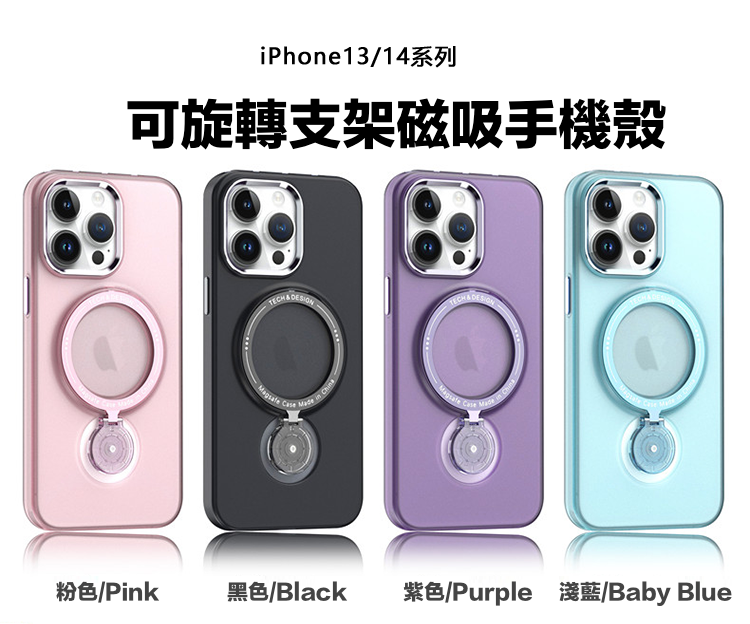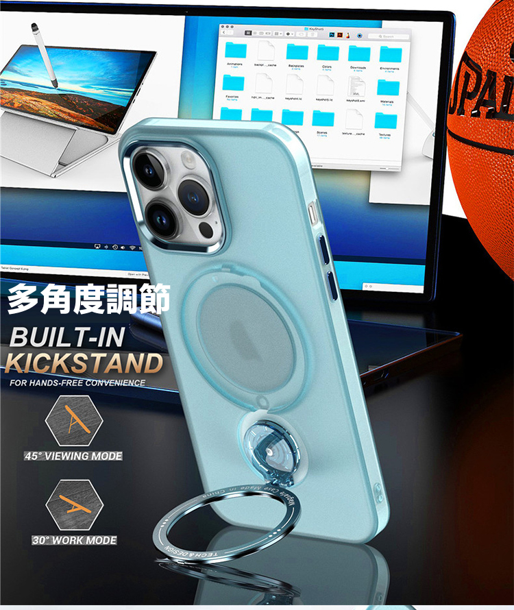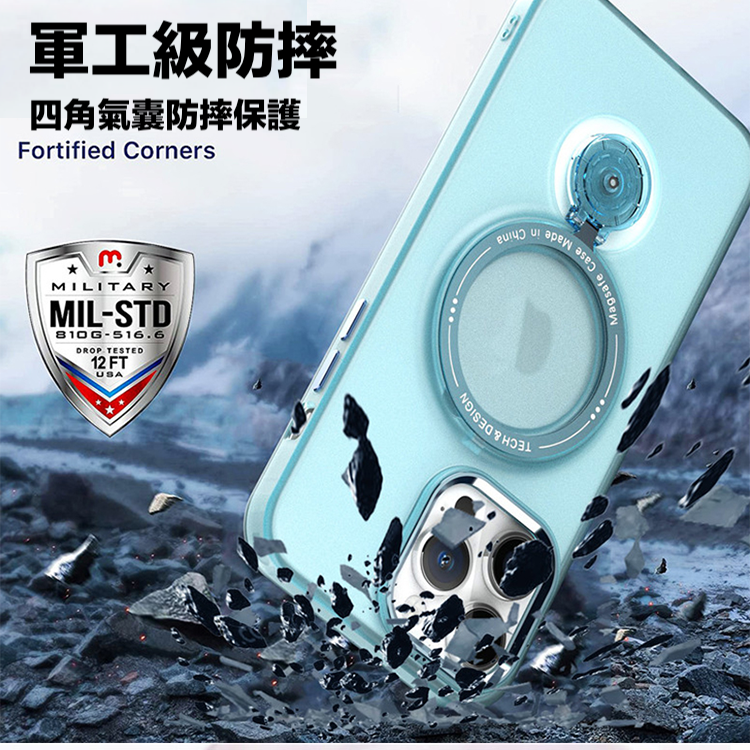 【360°旋轉磁吸支架防摔殼】看片神器~多角度調節支架,磨砂半透magsafe磁吸保護殼 四色可選