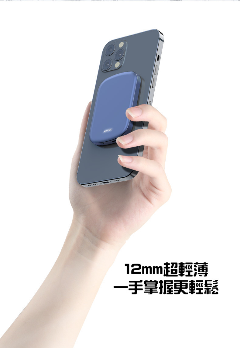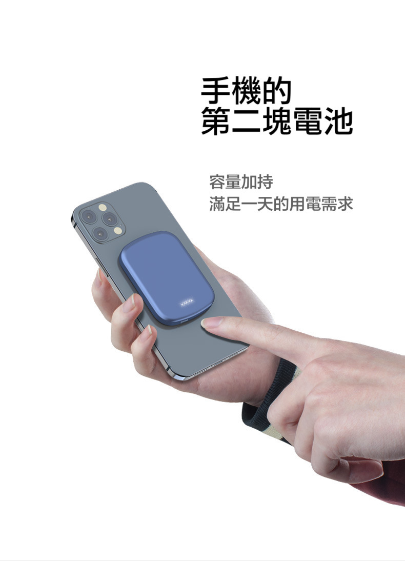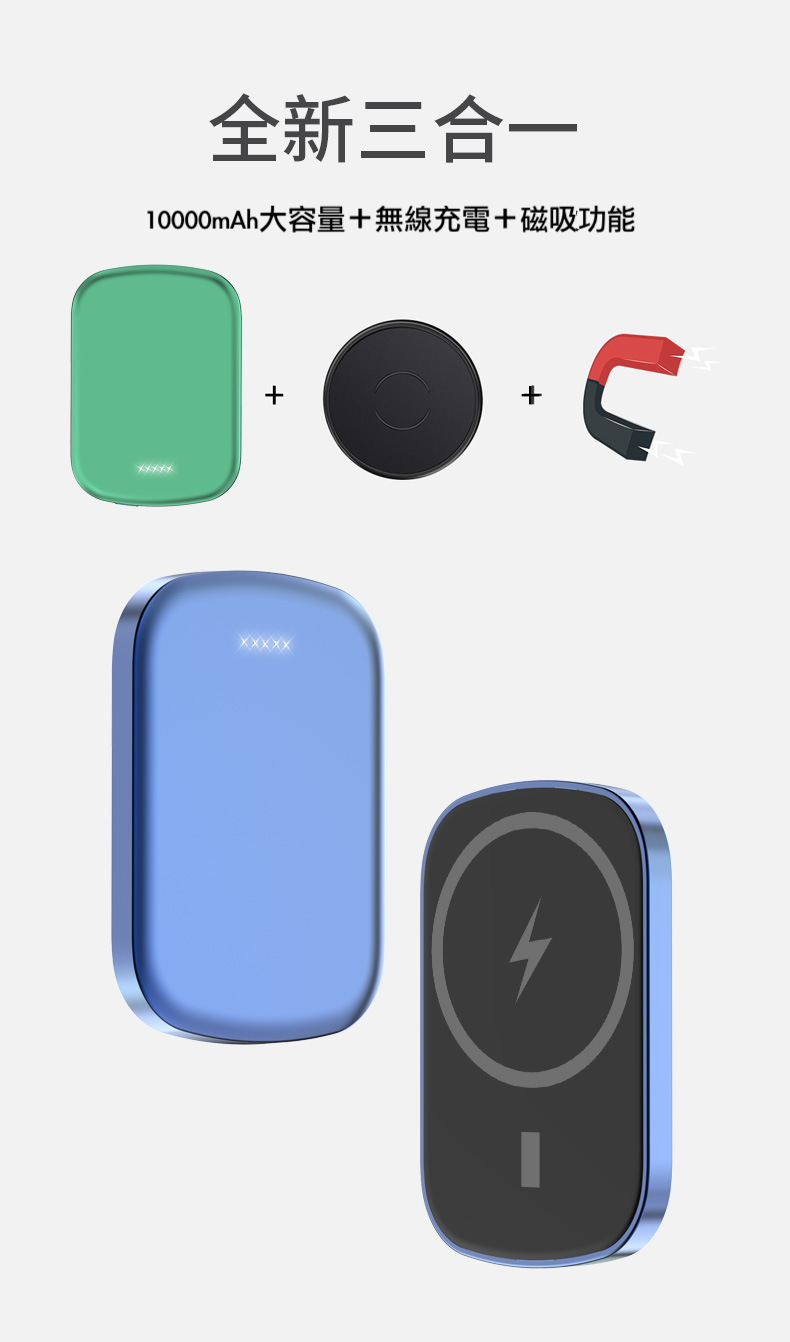 超方便的磁吸式行動電源,本身具備10000mAh大電量,吸附手機上,手機可以一邊充電同時也不影響使用