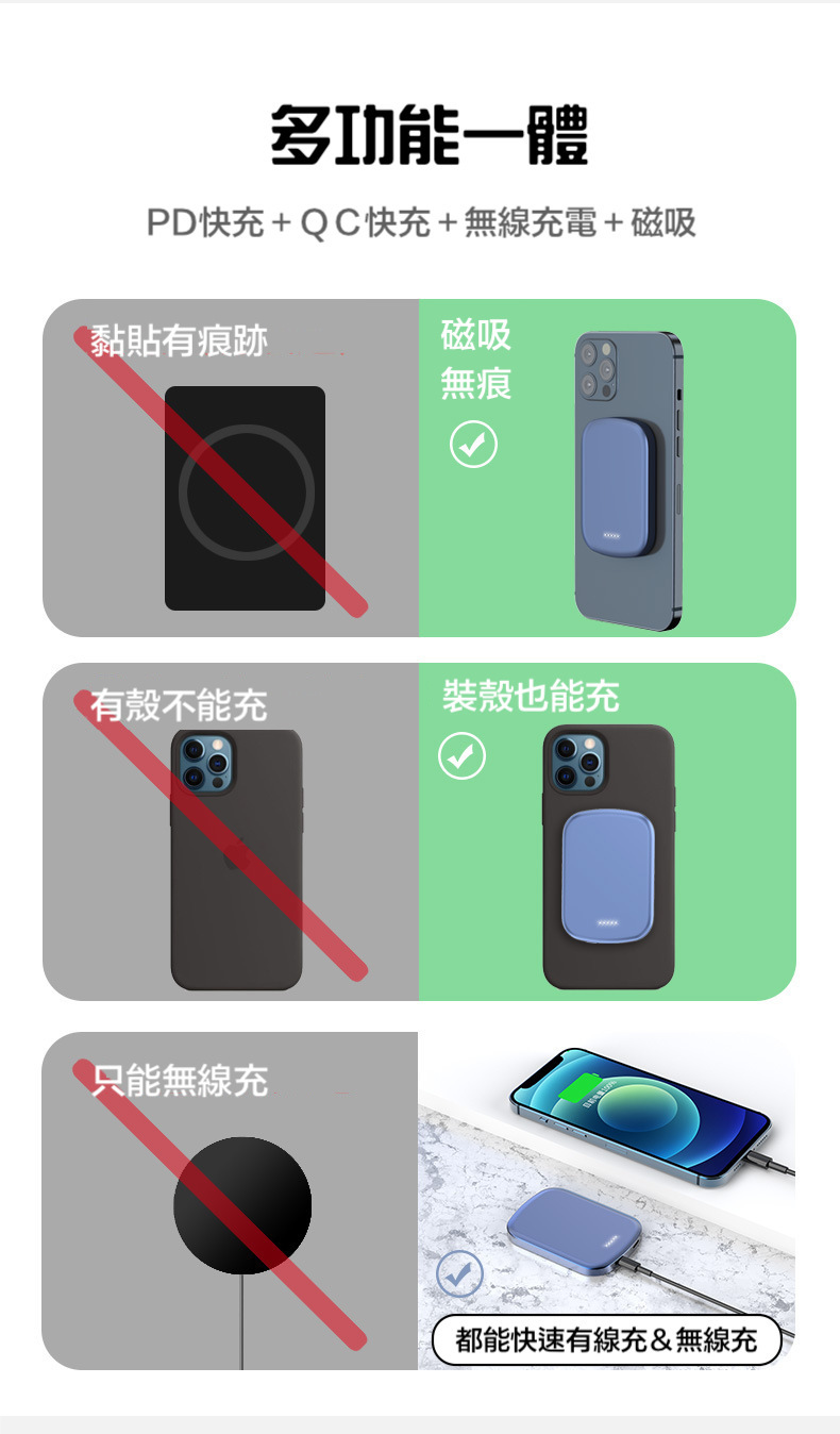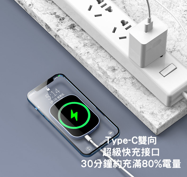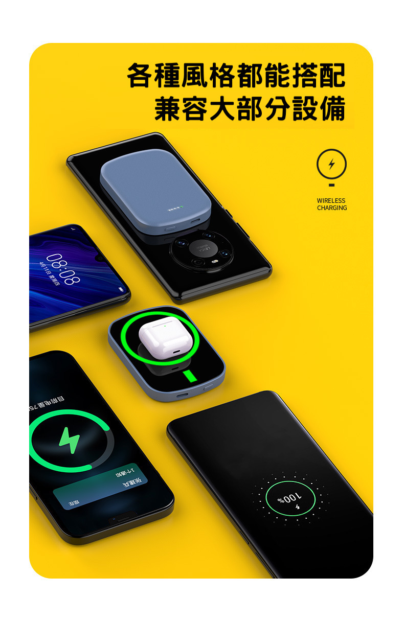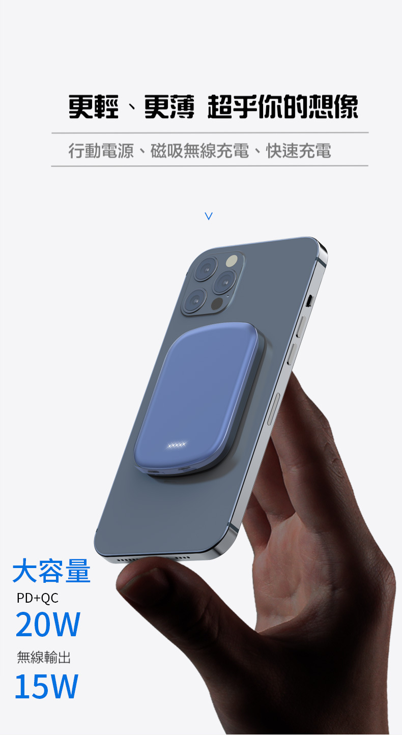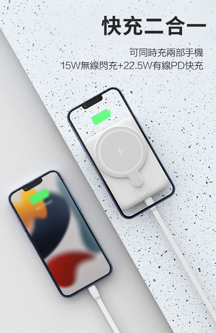 【磁吸無線行動電源】PD20W快充行動電源+15W無線充電(支援iPhone Magsafe)-支援QI無線、PD、QC等多種快充協議