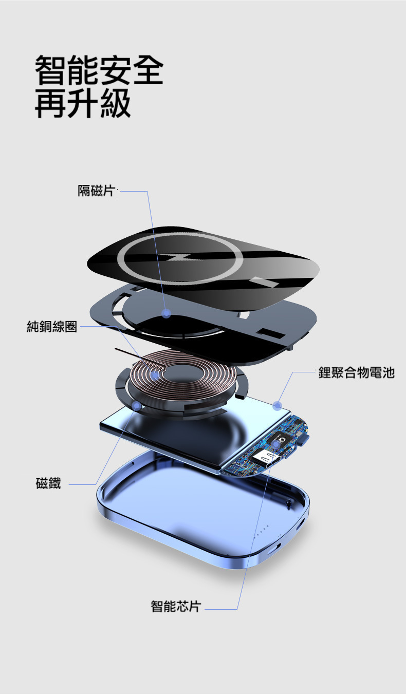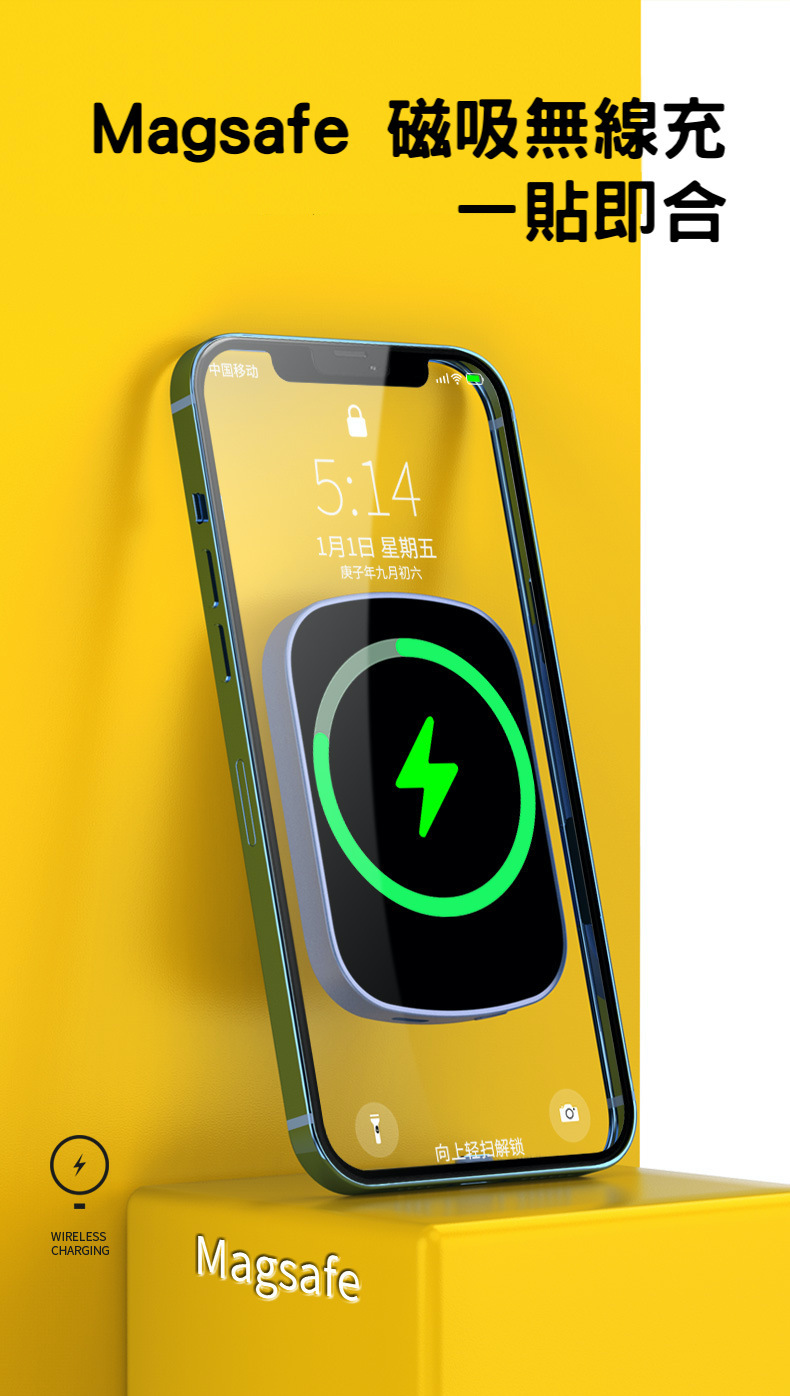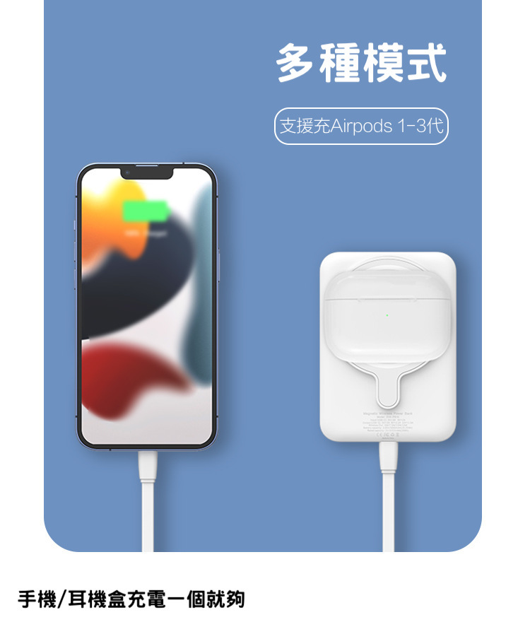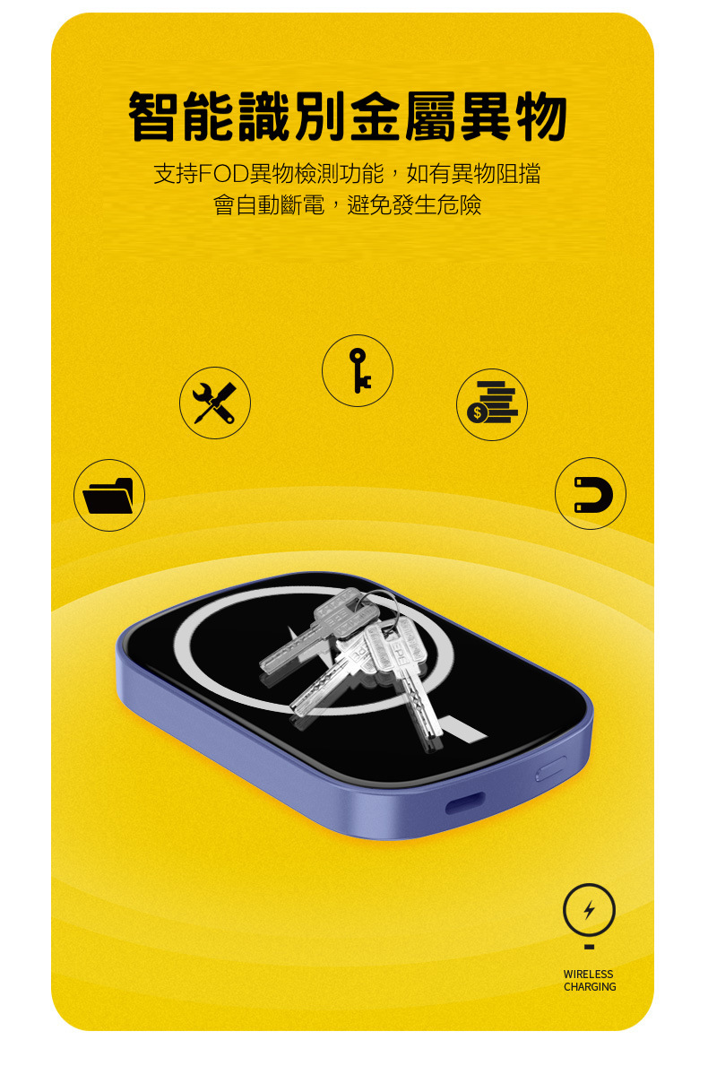 【磁吸無線行動電源】PD20W快充行動電源+15W無線充電(支援iPhone Magsafe)-支援QI無線、PD、QC等多種快充協議