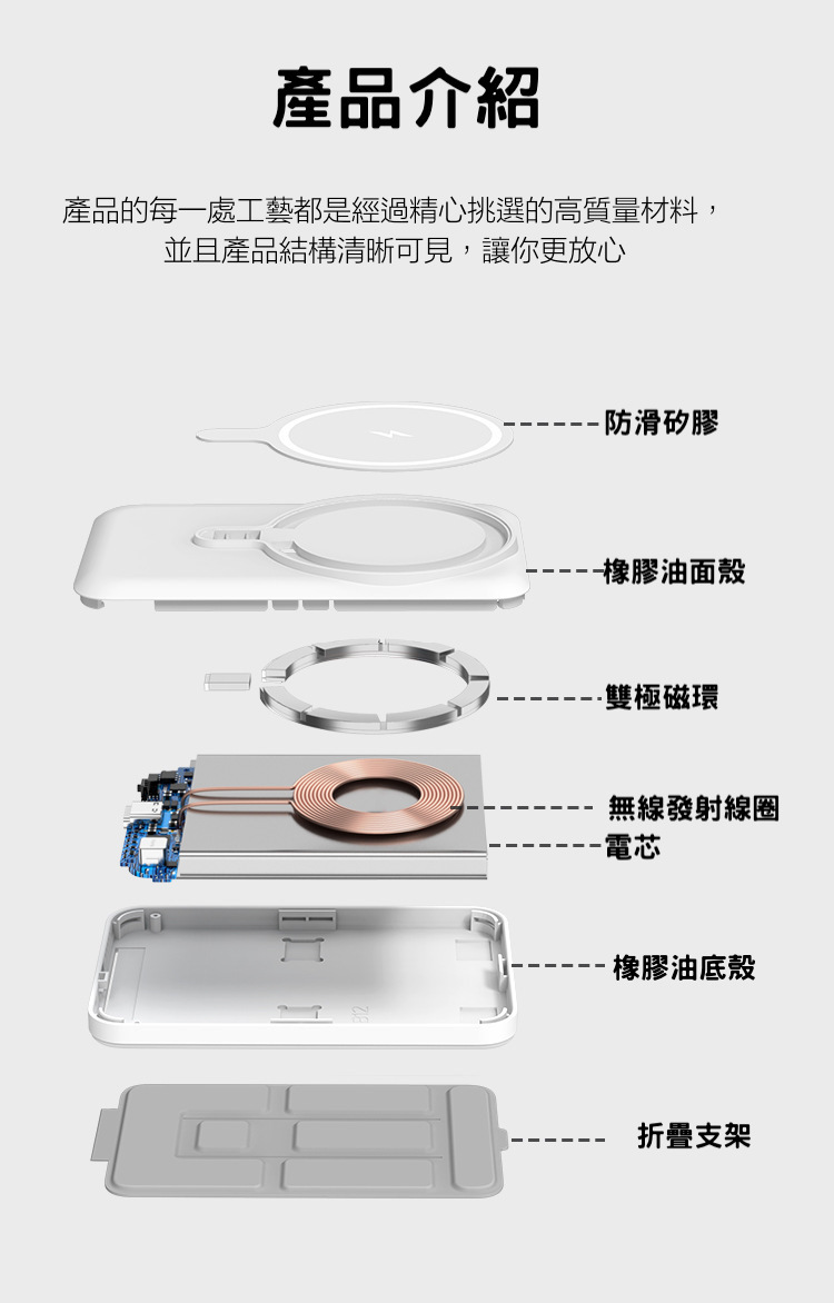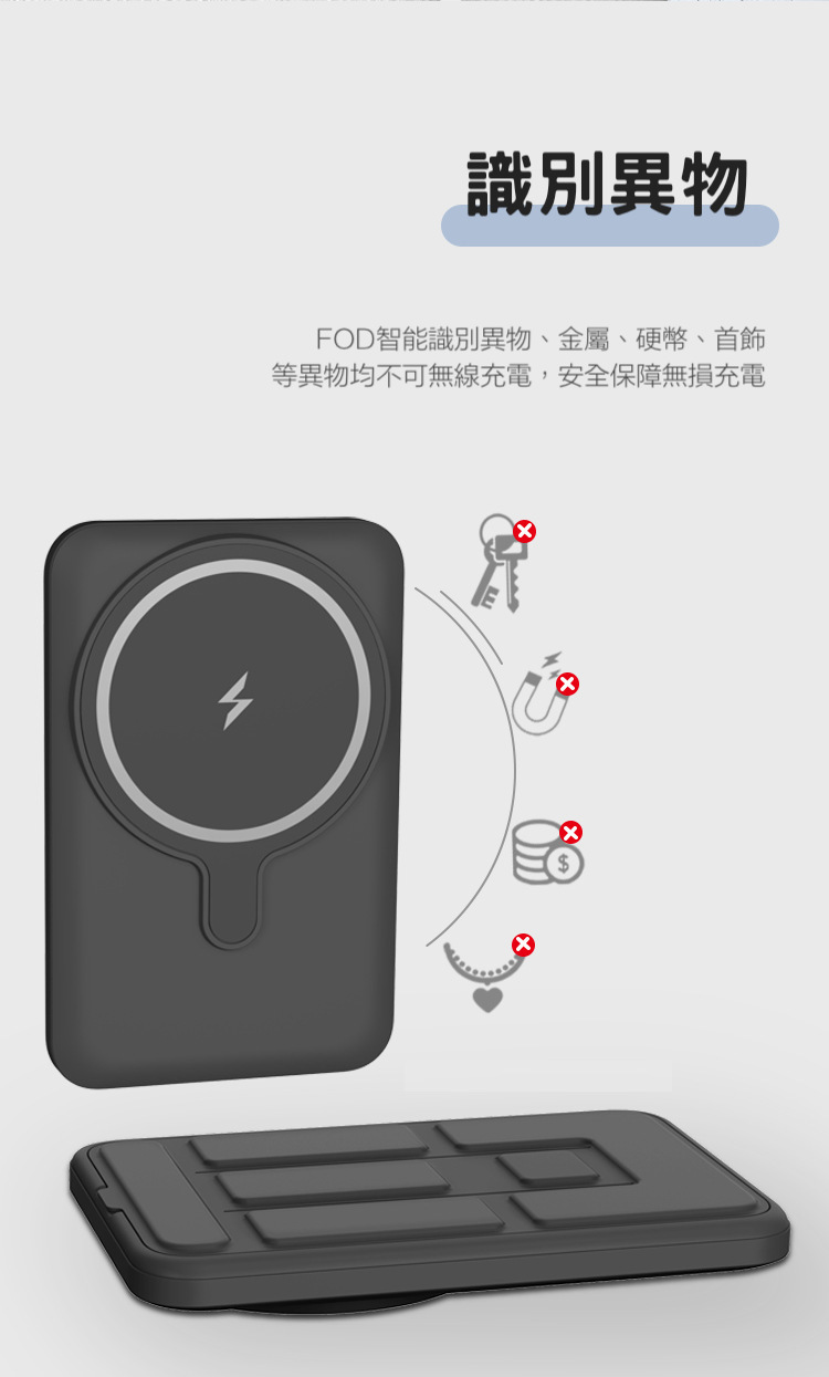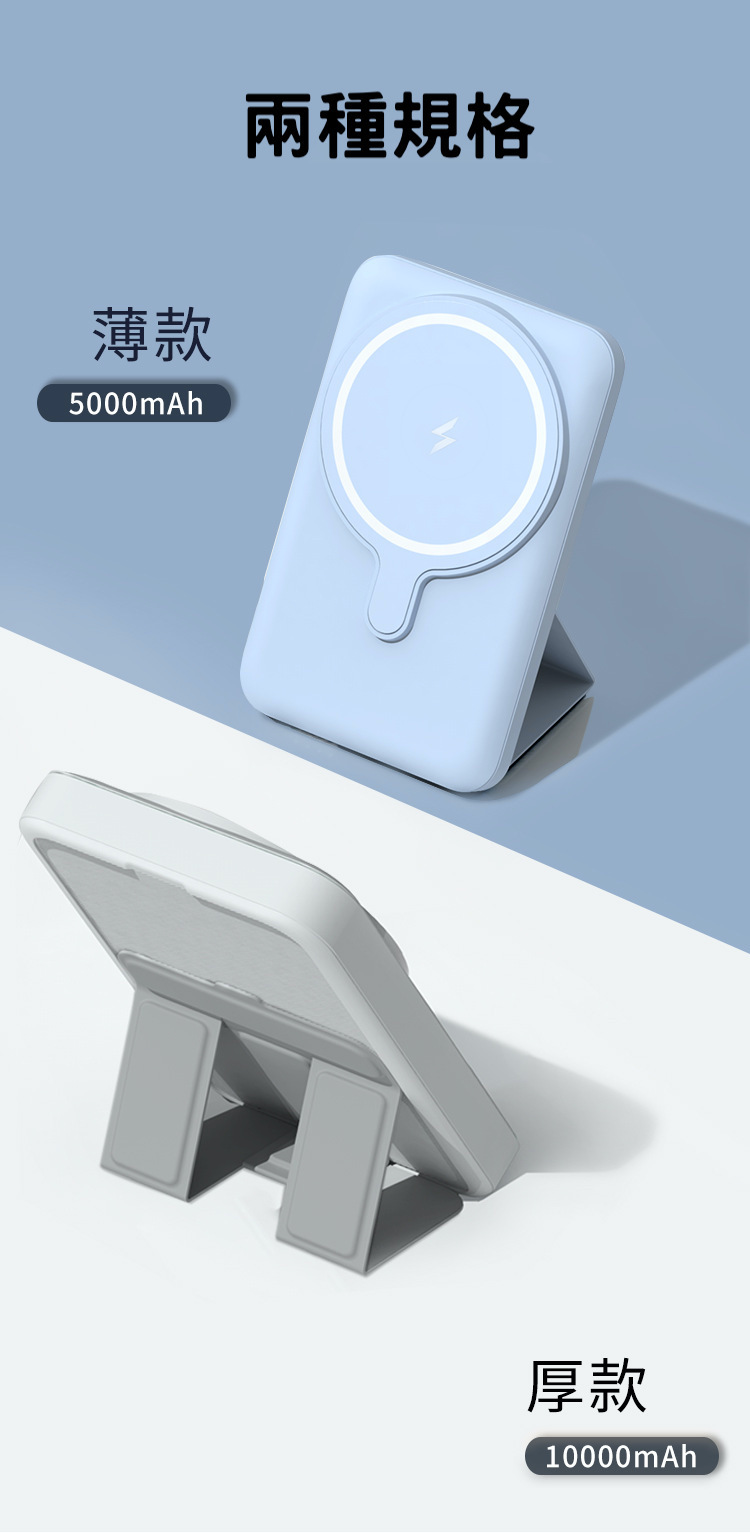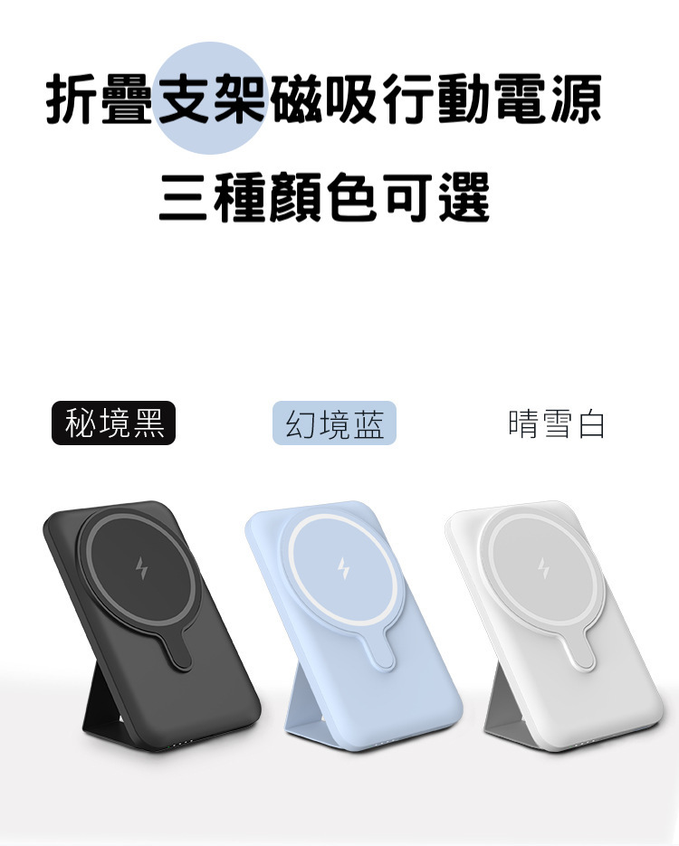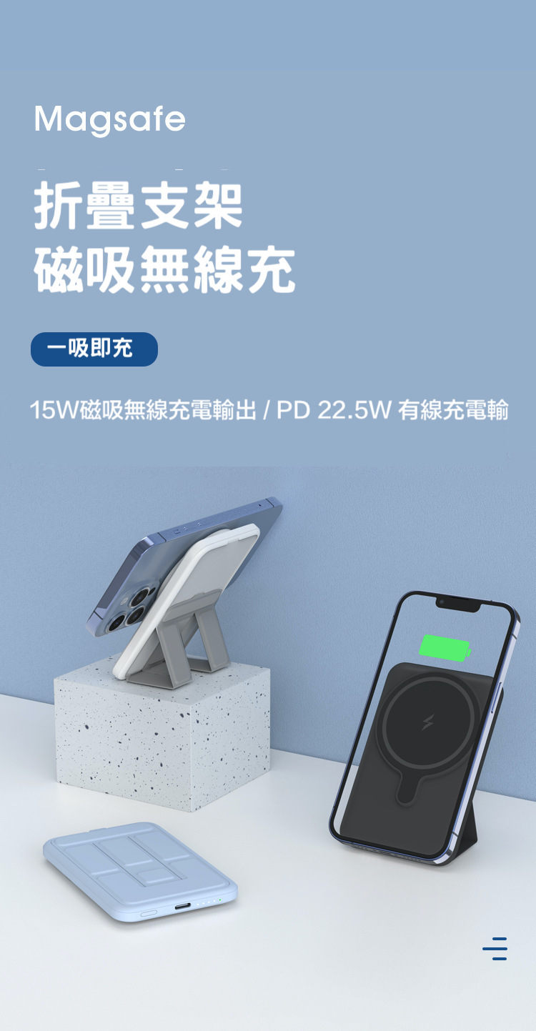 折疊支架【磁吸無線行動電源】PD20W快充行動電源+15W無線充電(支援iPhone Magsafe)-支援QI無線、PD、QC等多種快充協議