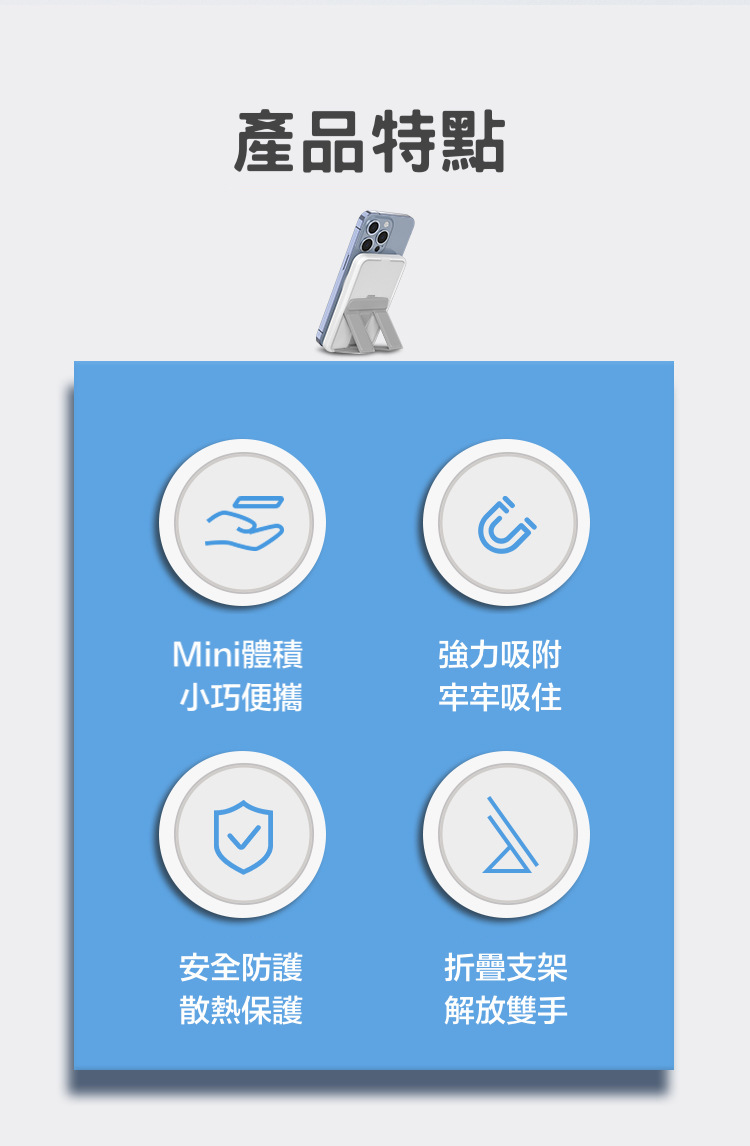 現在還有新款:折疊支架磁吸行動電源,多了支架功能大提昇喔~