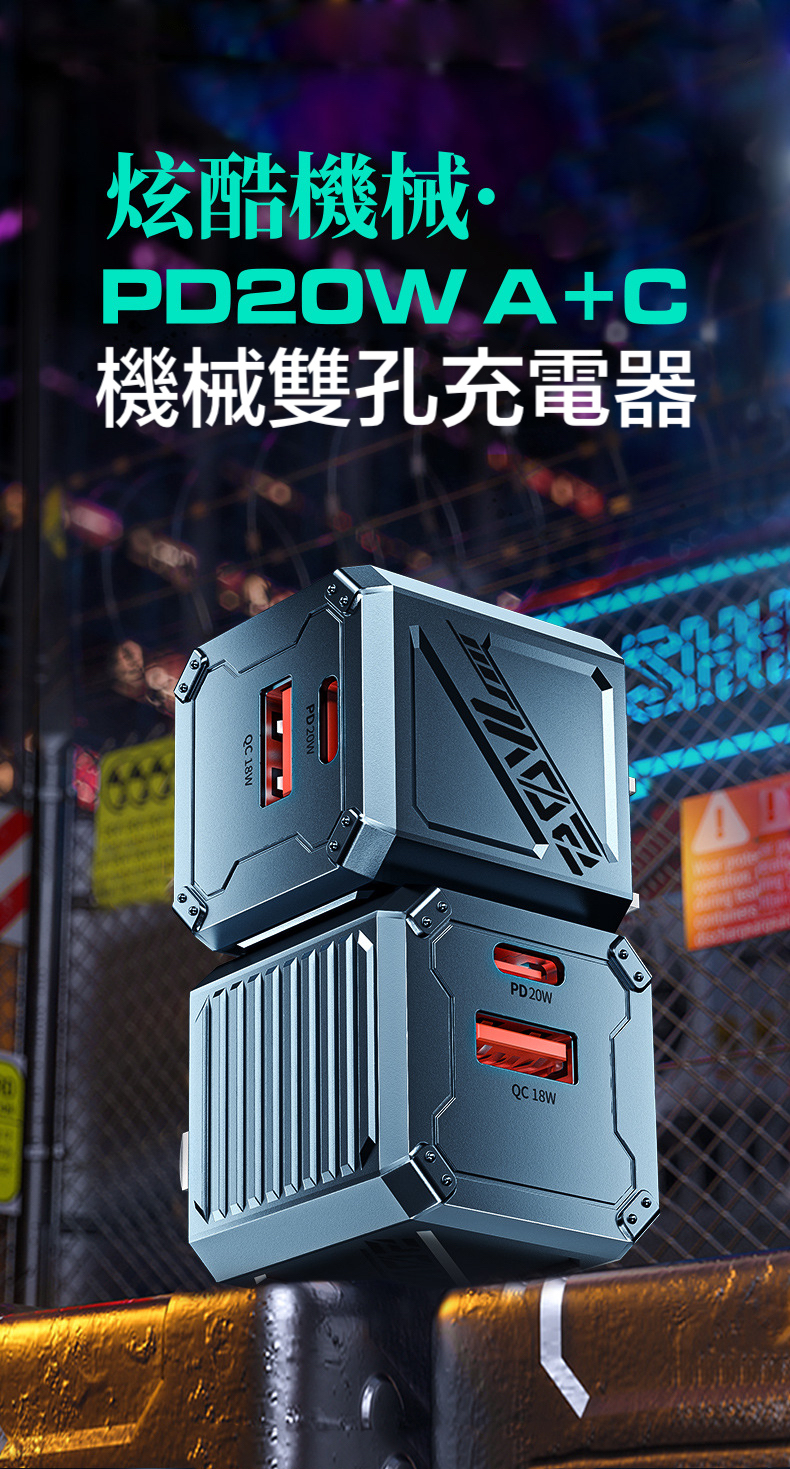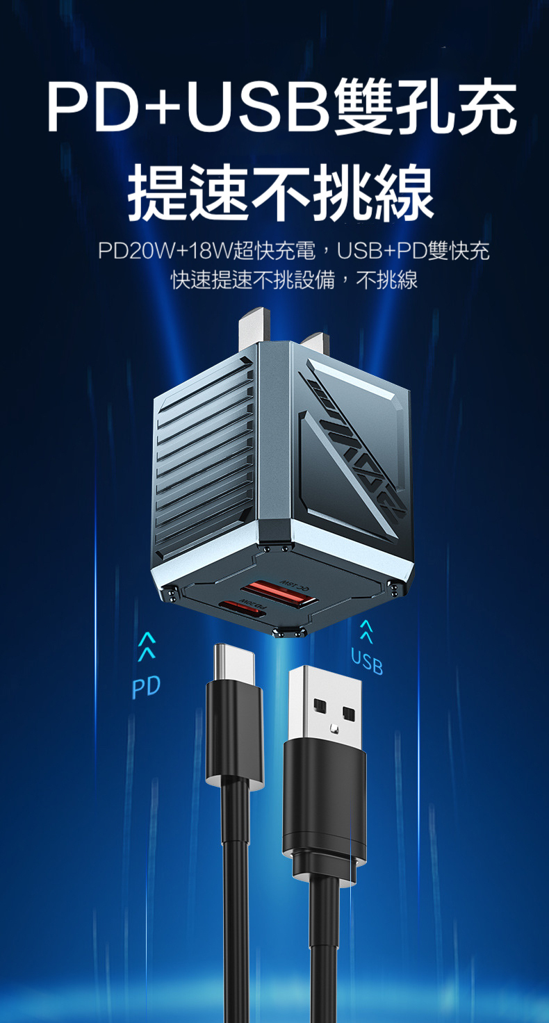 機械雙孔充電器【PD20W+QC18W雙孔快充】A+C20W