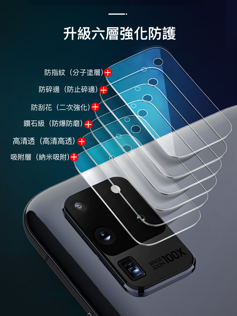 【VP吸血鬼】 三星系列 透明鏡頭玻璃保護貼(0.2mm軟性玻璃)一組2張